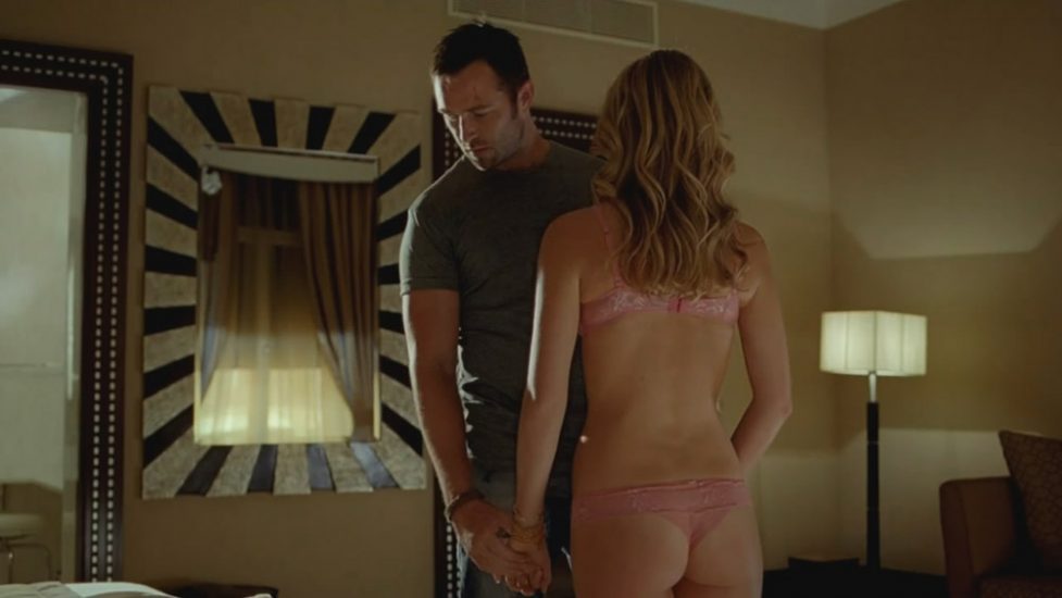 In the last hot scene, Annabelle Wallis is looking sexy in a bra and panties as she talks to a guy in a bathroom. Then she walks into another room where she finds the guy preparing to have sex with someone else. Annabelle then pushes the guy down on a bed and we see more of her bra and panties. She straddles him before another guy bursts into the room and a gunfight breaks out and Annabelle gets caught in the crossfire.