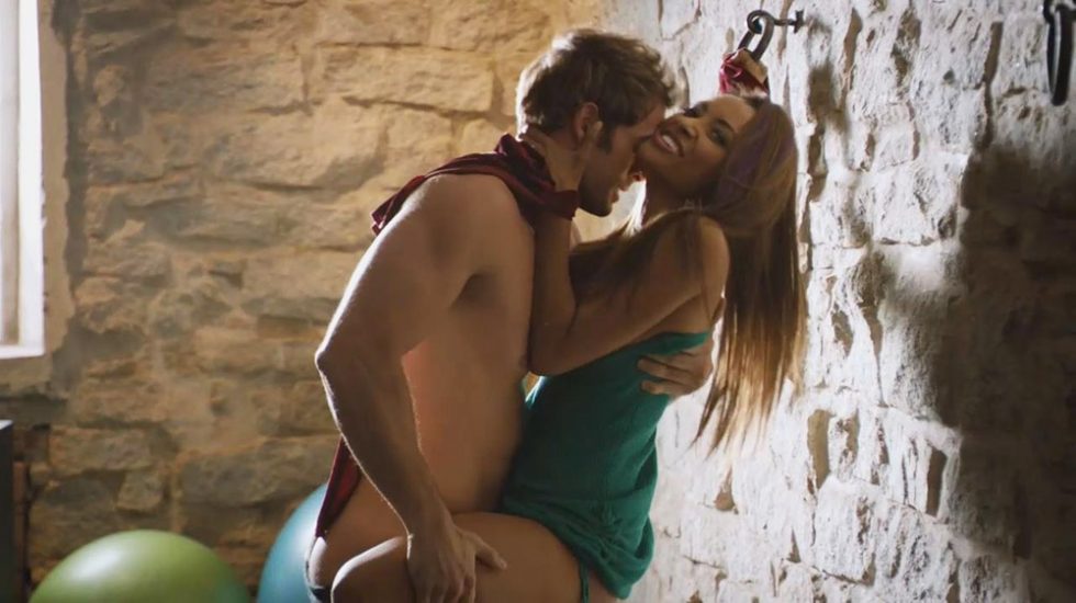 Here is the first Kat Graham naked ass in the sex scene from ‘Addicted’. She is bouncing up and down in a guy’s lap, as he stands by a wall and she holds on to a ring behind her head. Kat is wearing a green dress hiked up and we see a bit of her naked ass. She and the guy have sex and are quickly interrupted. The guy then lets Kat down and we see her standing in the dress with no bra, showing some pokies nipples.