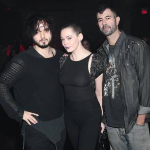 The star of the Charmed TV show is on a role these days, firs her sex tape leaked out and now Rose McGowan in see through dress display her tits at “Charliewood Exhibition Opening” in New York!