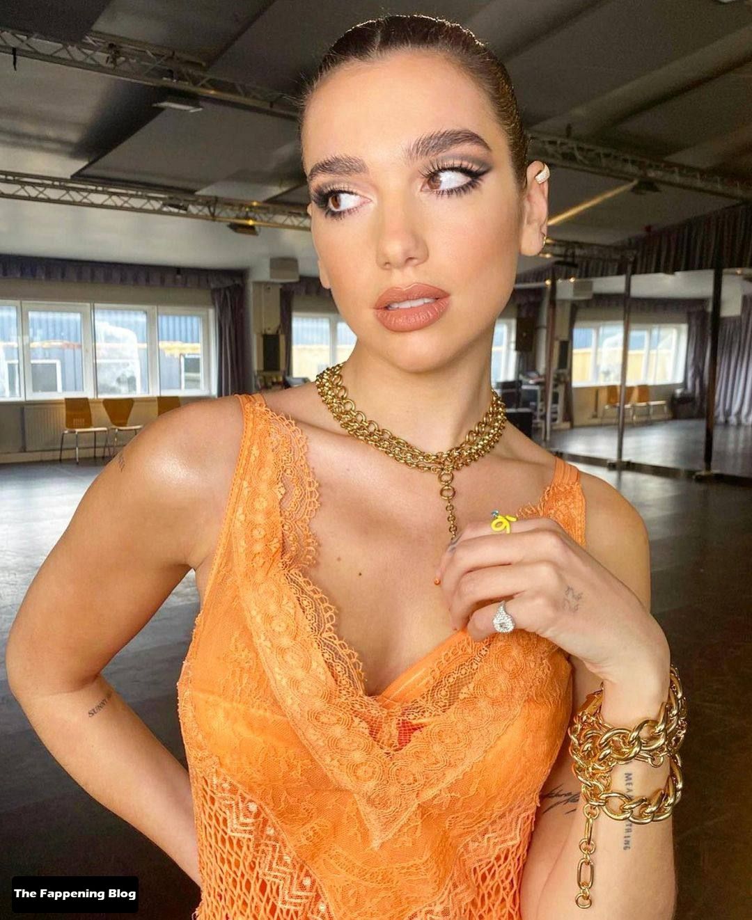 Look at Dua Lipa’s hot, semi-naked photos from Instagram and sexy collages showing her slender figure, small tits and slender legs.