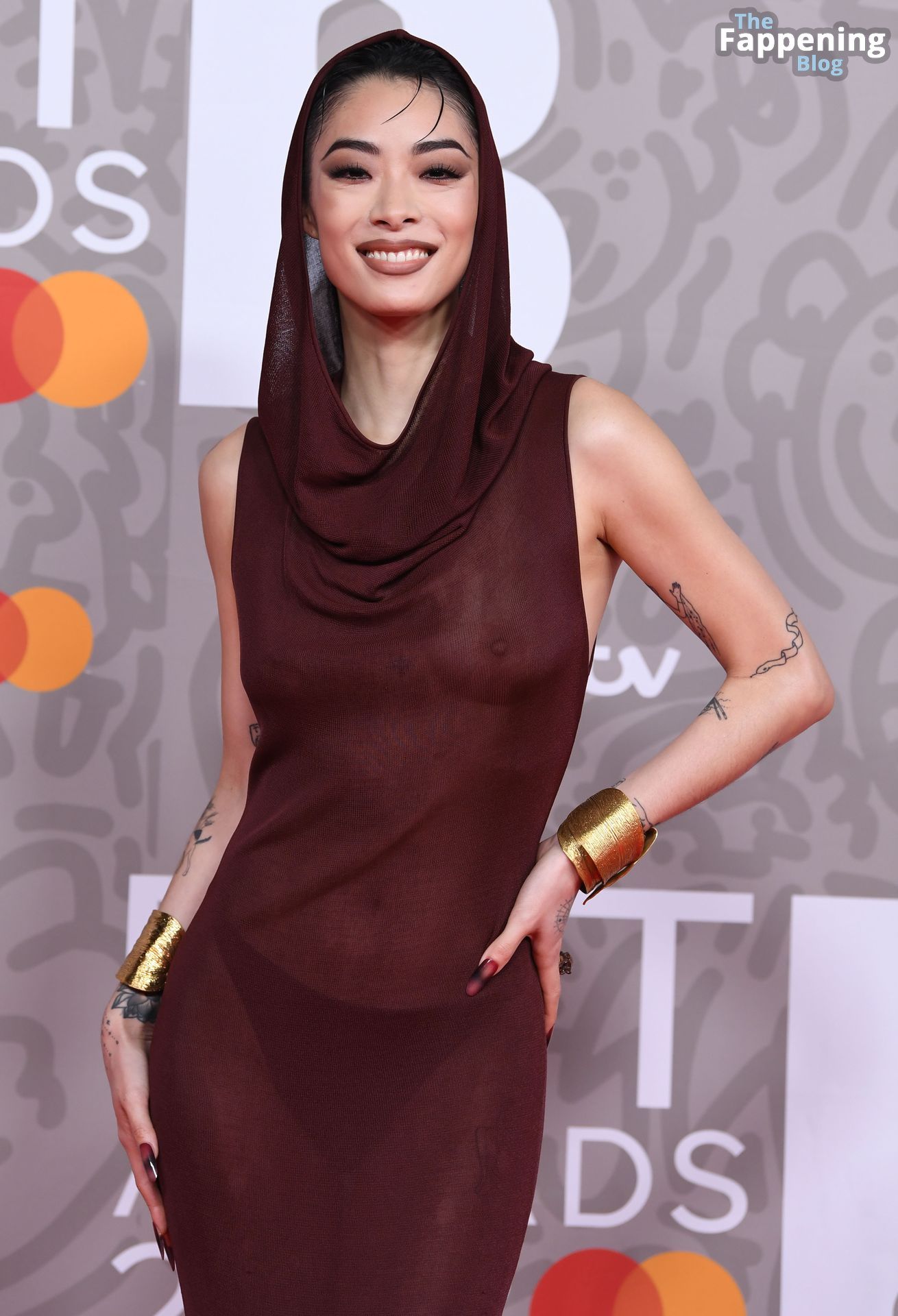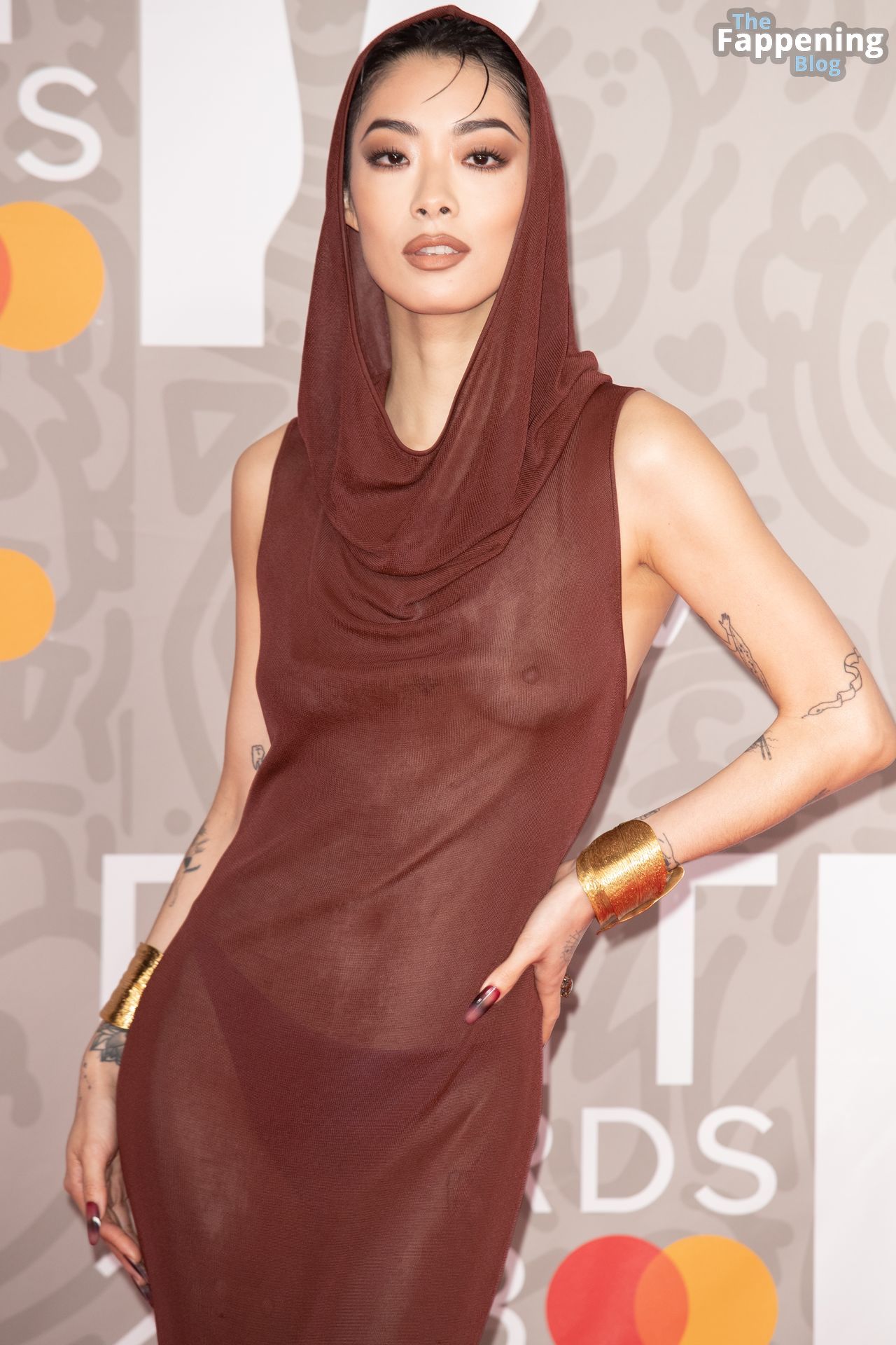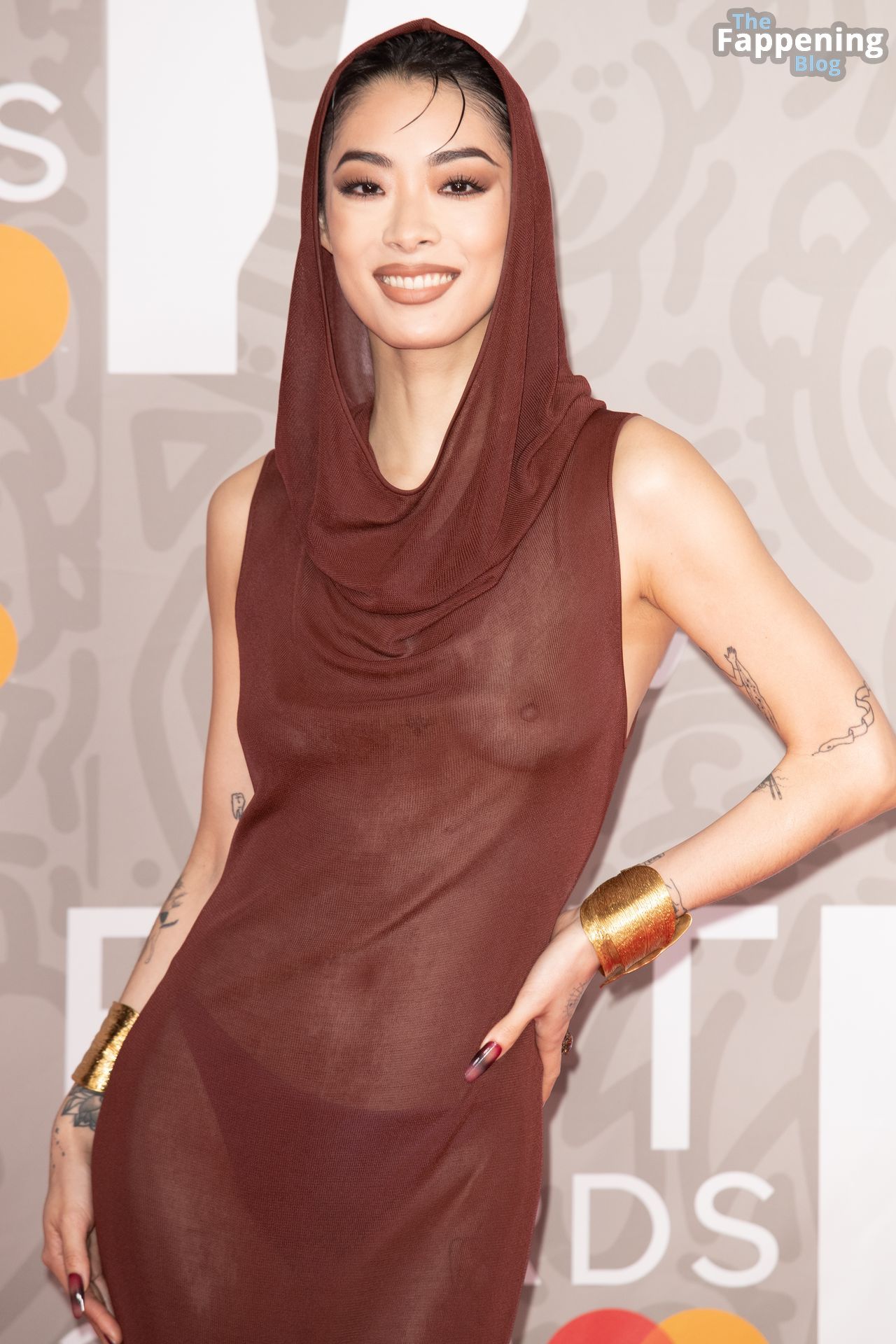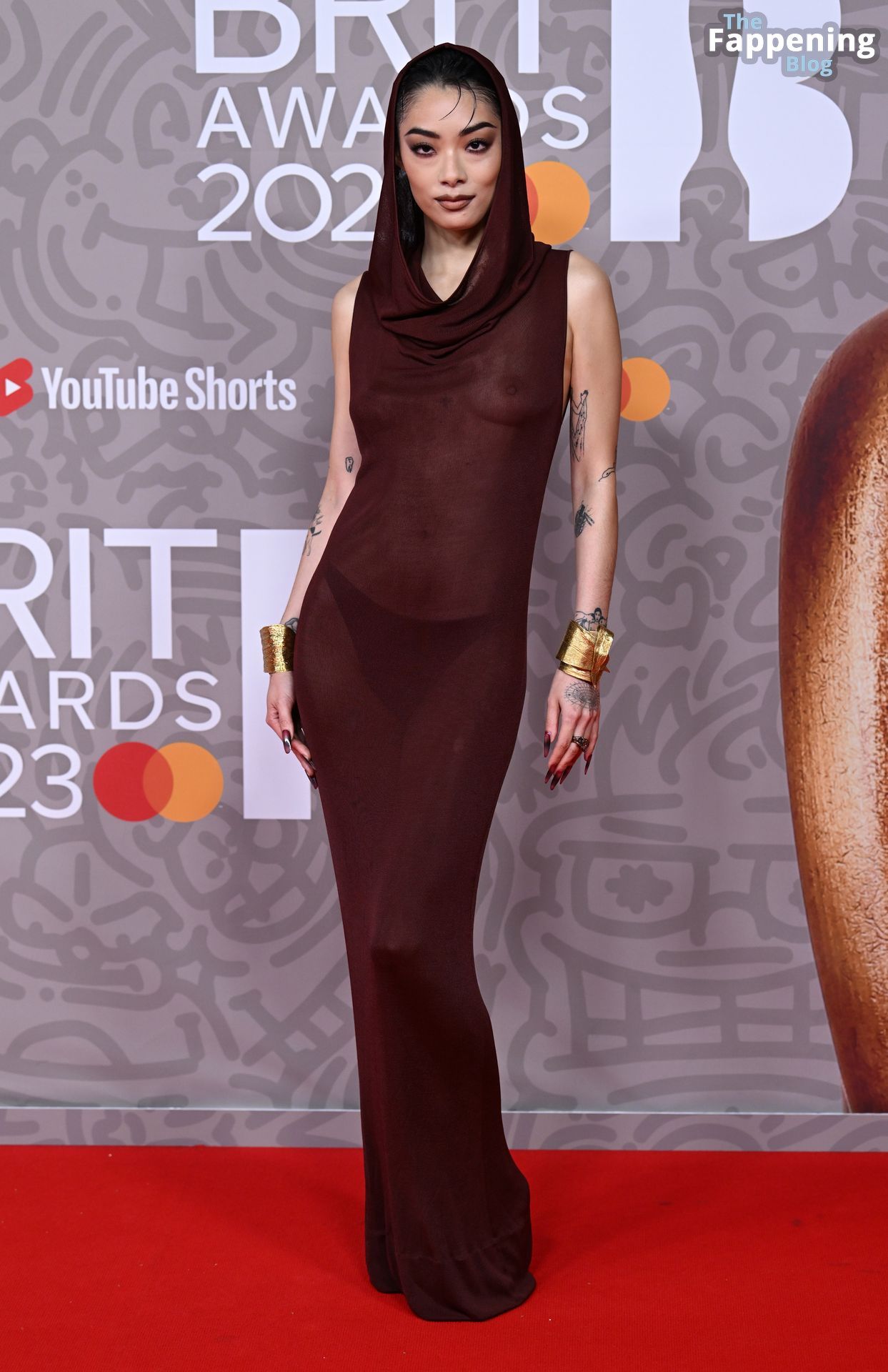 British/Japanese singer Rina Sawayama poses on the red carpet upon arrival for the BRIT Awards 2023 in London, 02/11/2023.