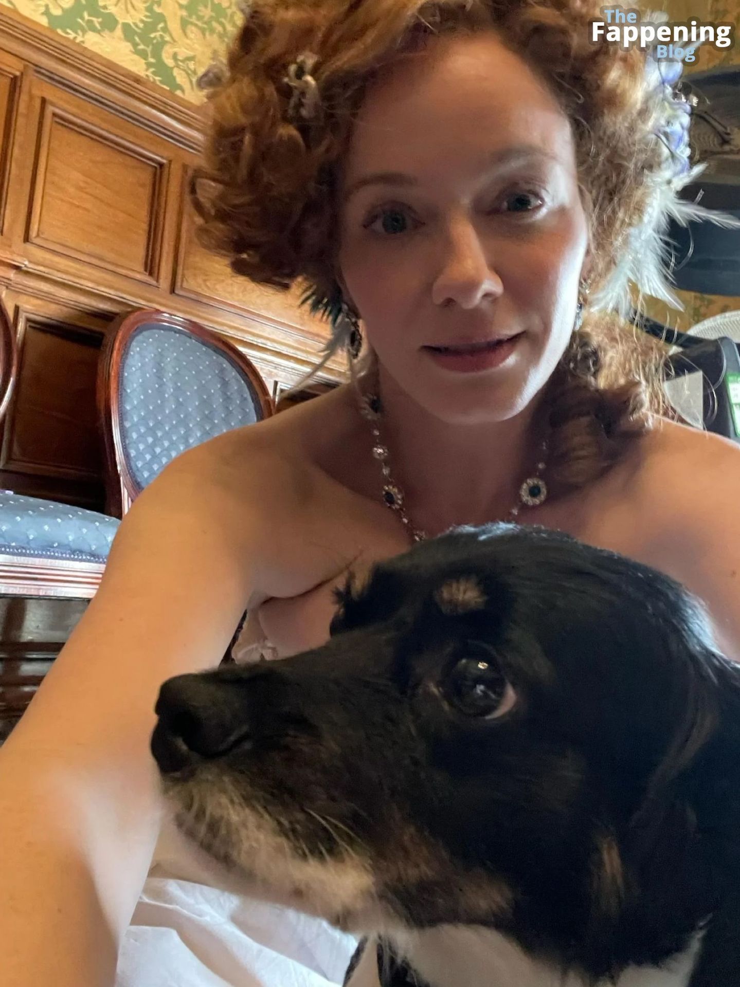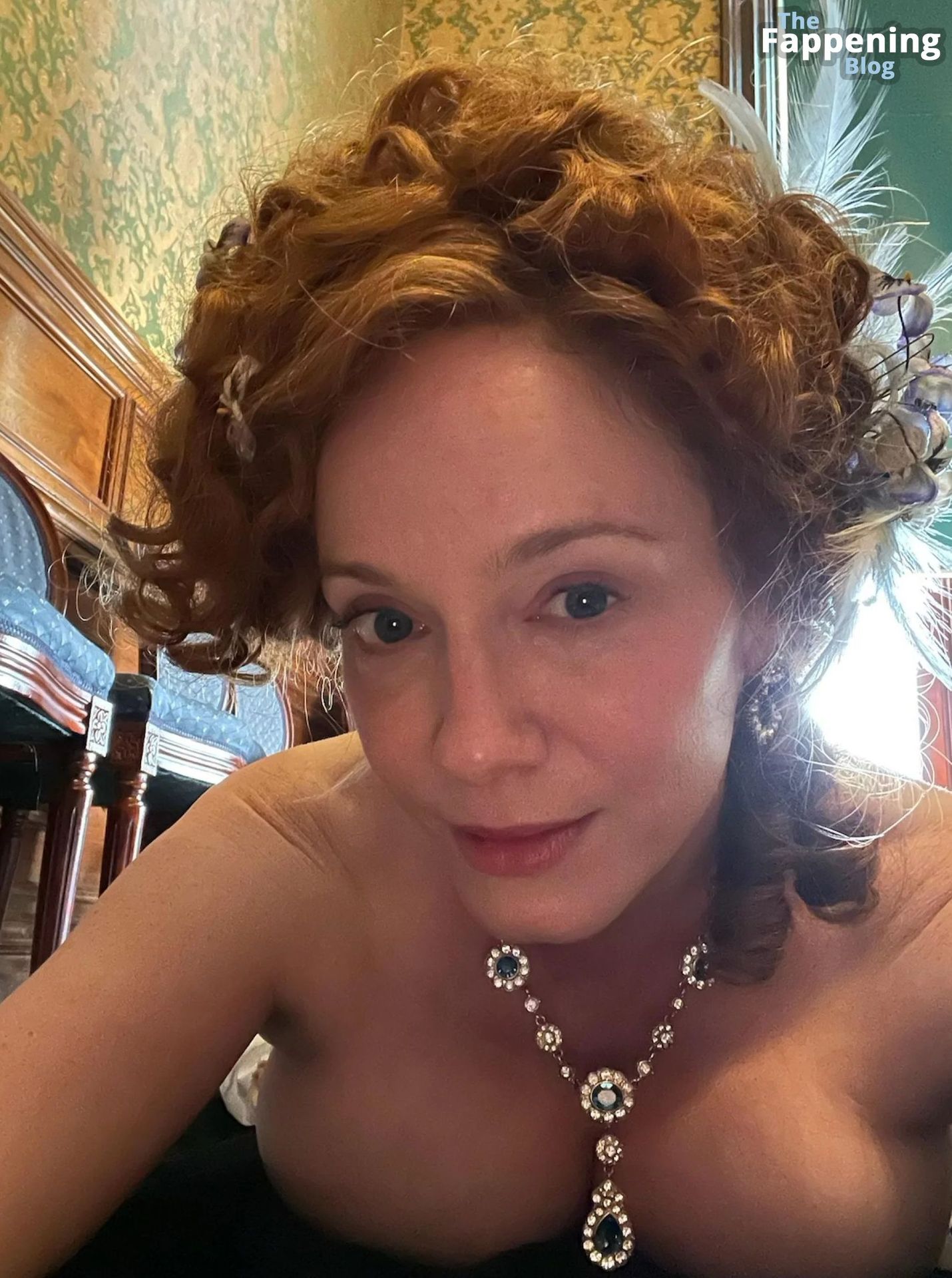 Christina Hendricks flaunts her famous cleavage and her big ol’ knockers on the set of “The Buccaneers”.