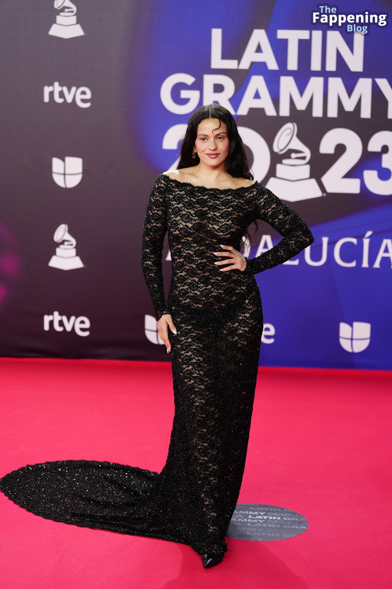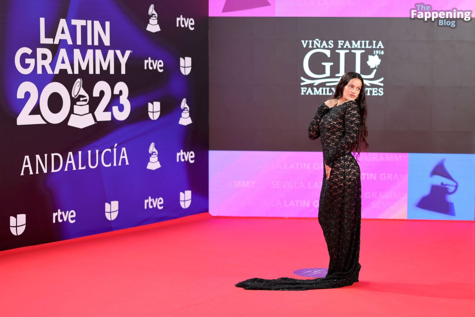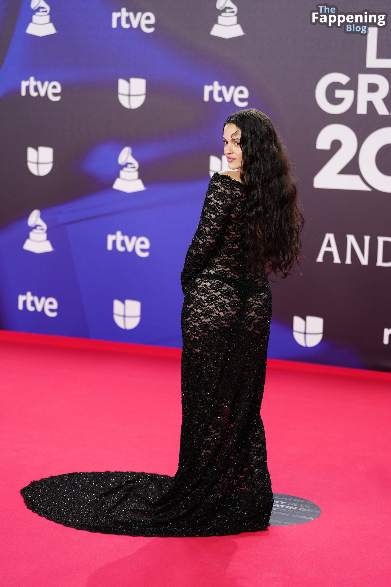 Get ready to be blown away by Rosalia’s killer style at the Latin GRAMMY Awards in Seville. She’s rockin’ a see-through black dress that’s showin’ off a sexy black thong and an absolutely fire ass. The entrance photocall at the event was poppin’ with tons of celebs making their presence known.