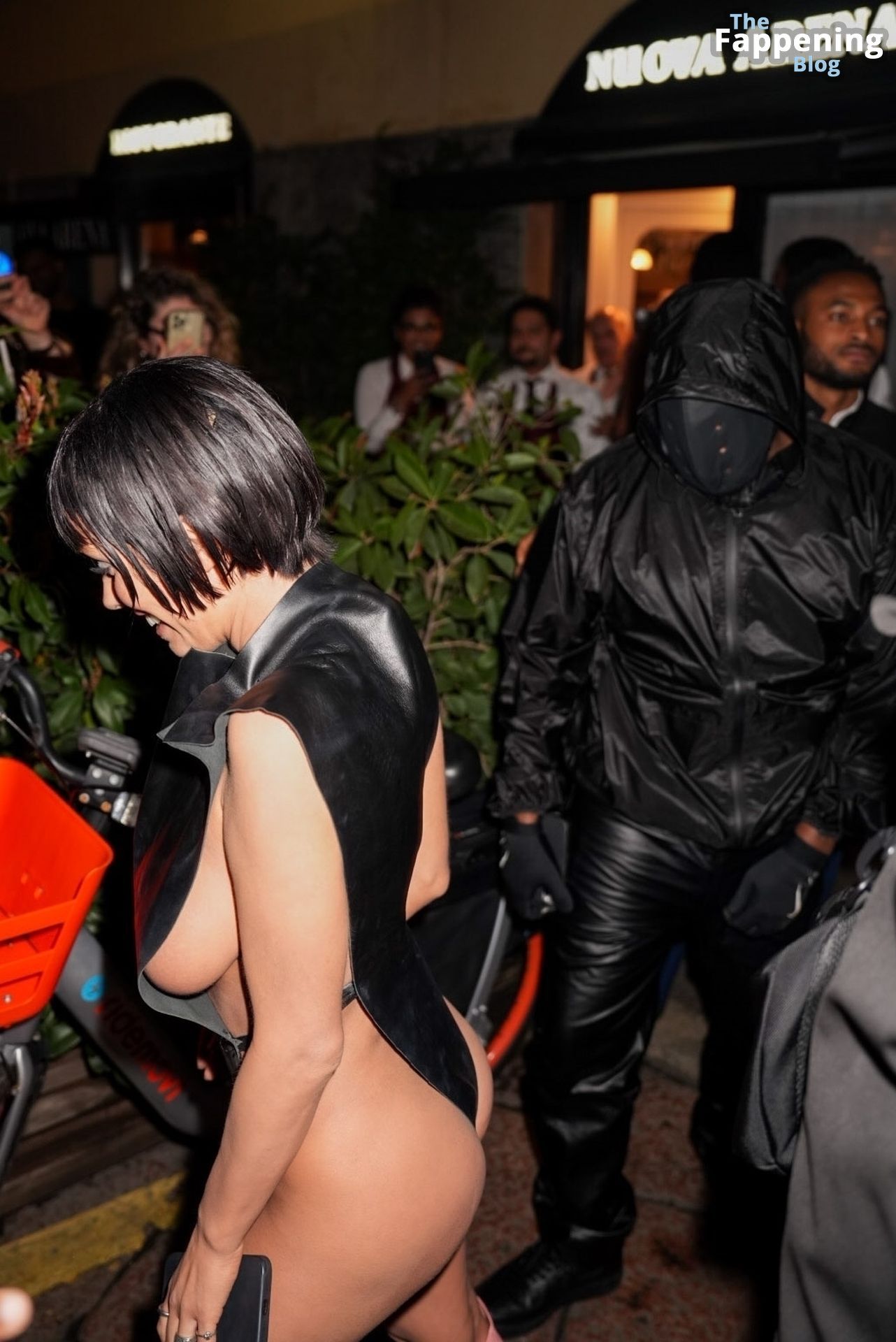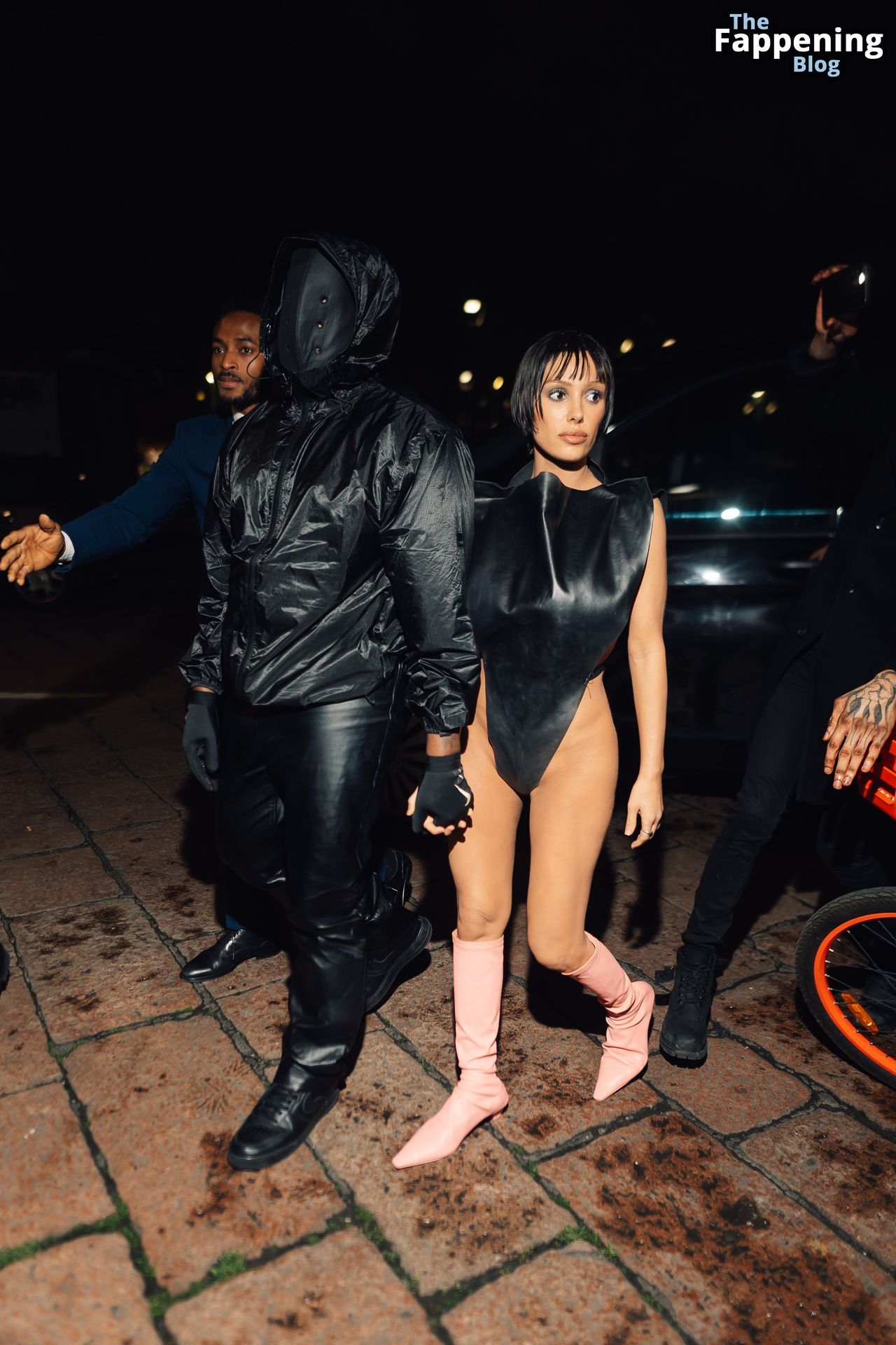 American rapper Kanye West and Bianca Censori arrives at back entrance at Cracco restaurant in Milan.