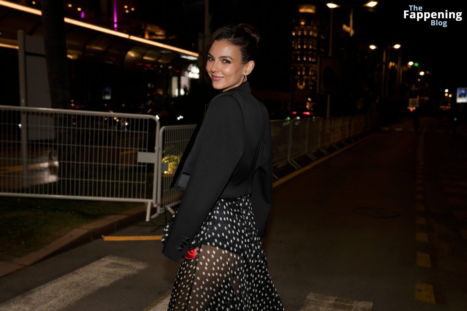 Victoria Justice is bringin’ the heat to Cannes, lookin’ like a total bombshell in a sheer outfit that’s got everyone talkin’. She’s servin’ up some serious sass, rockin’ a black bra and panties combo that’s showin’ off her fit bod.