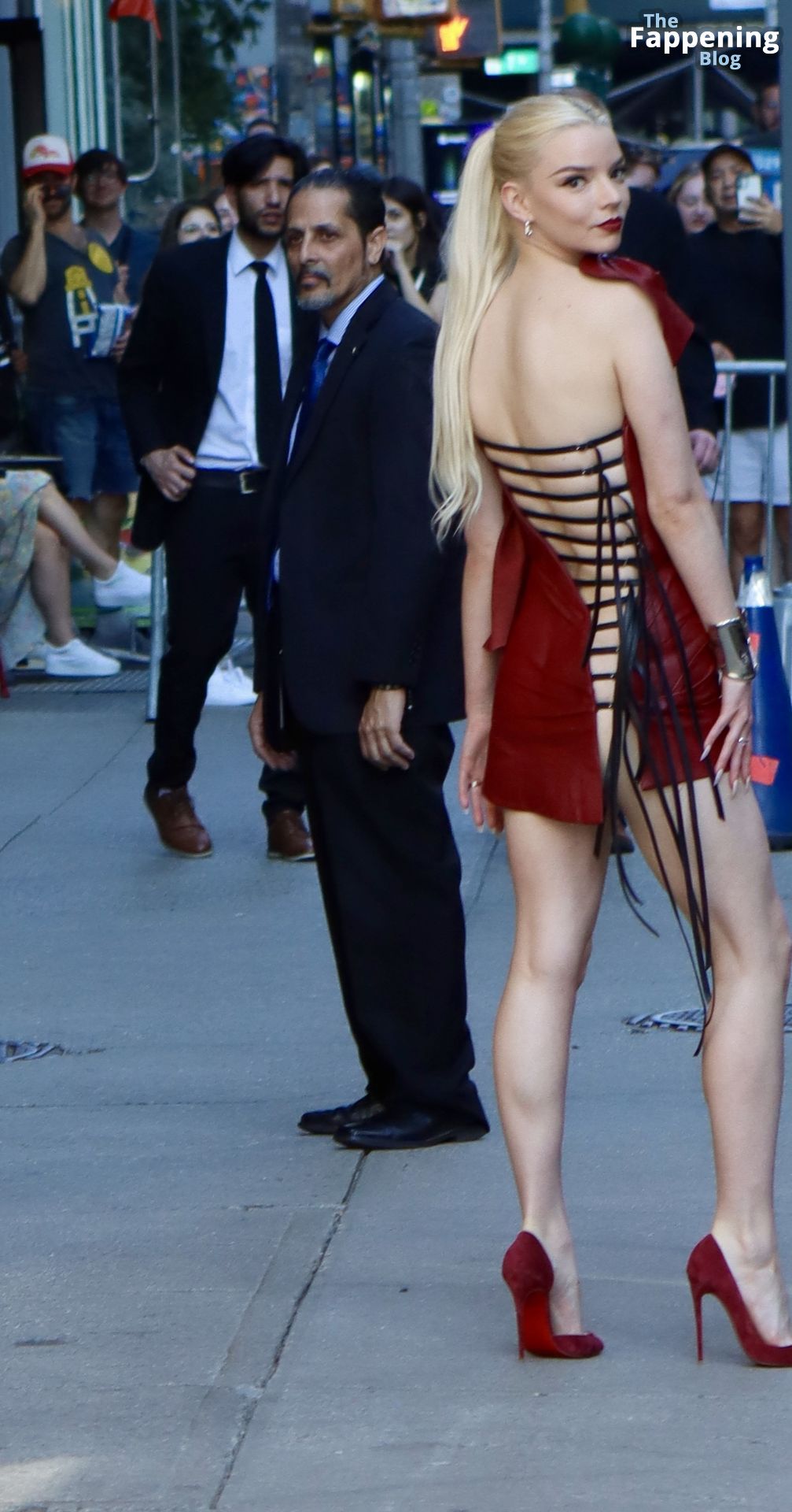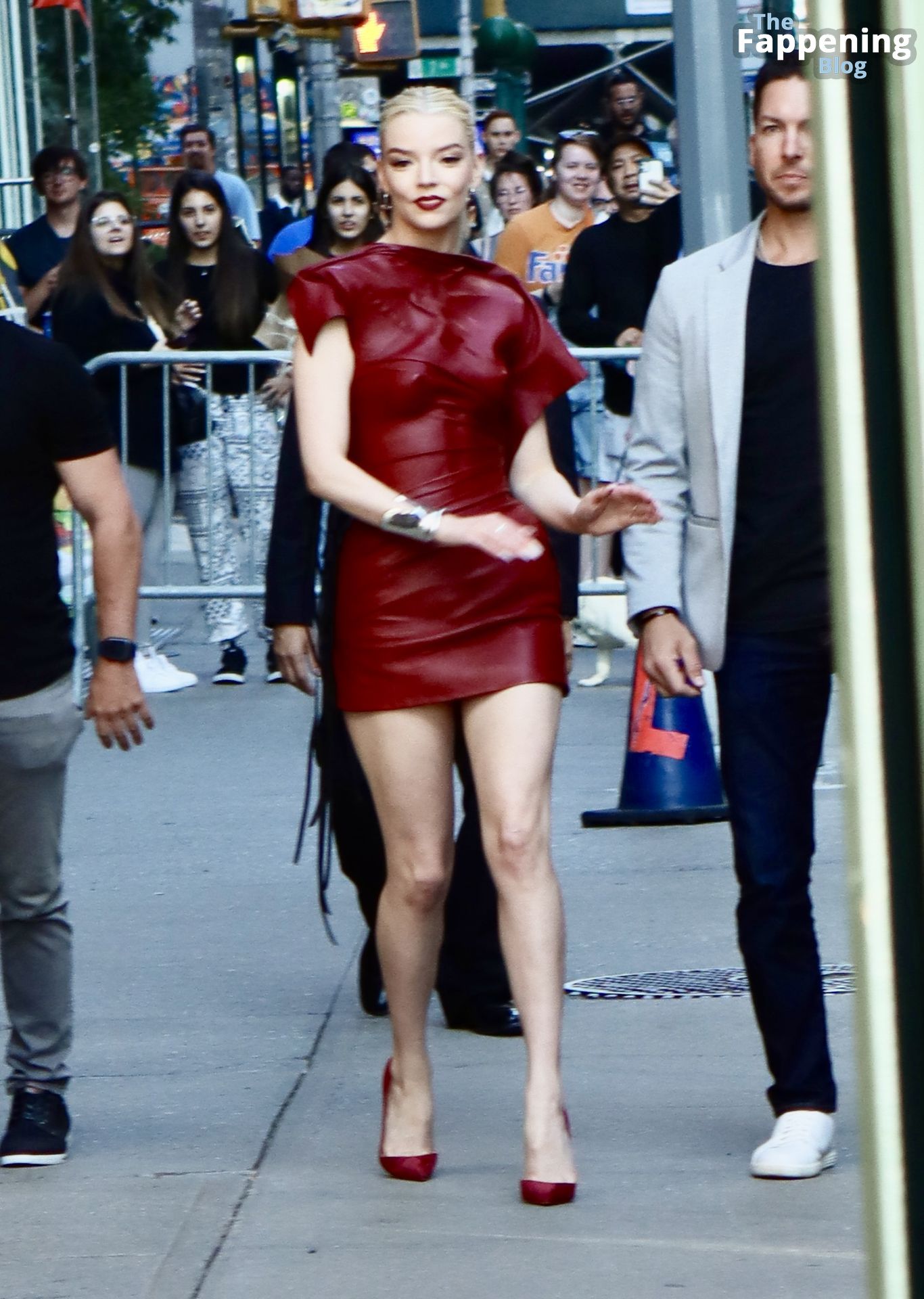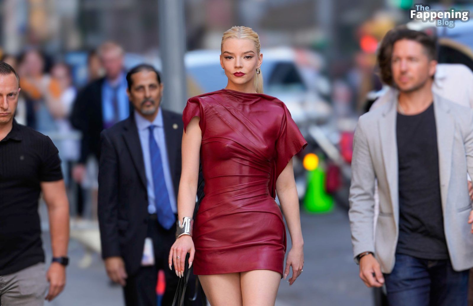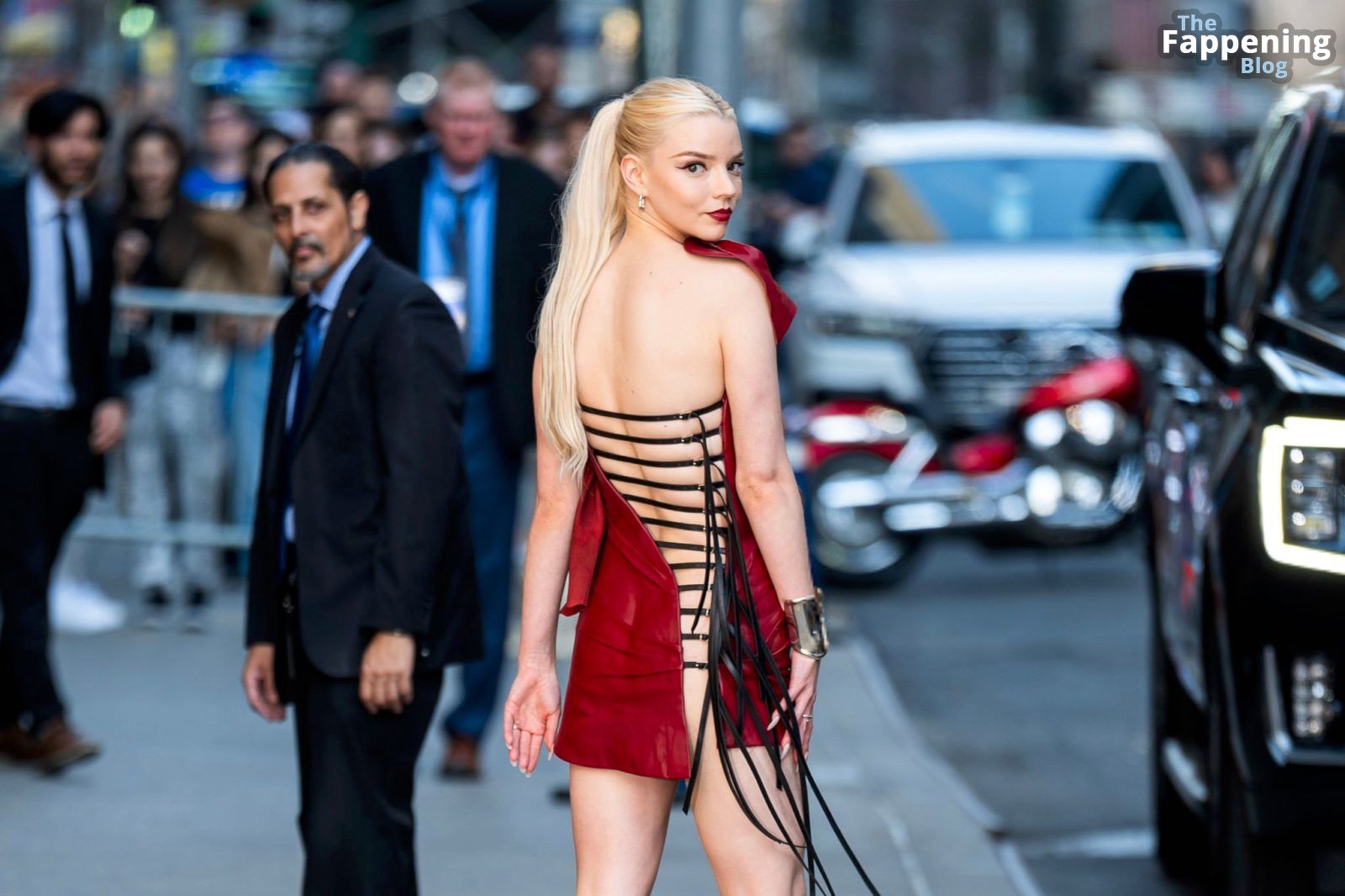 Anya Taylor-Joy is seen rockin’ that daring outfit as she struts her stuff to The Late Show with Stephen Colbert in the Big Apple. Spotted in NYC, Anya is lookin’ like a total flame in that fire-engine red mini dress.