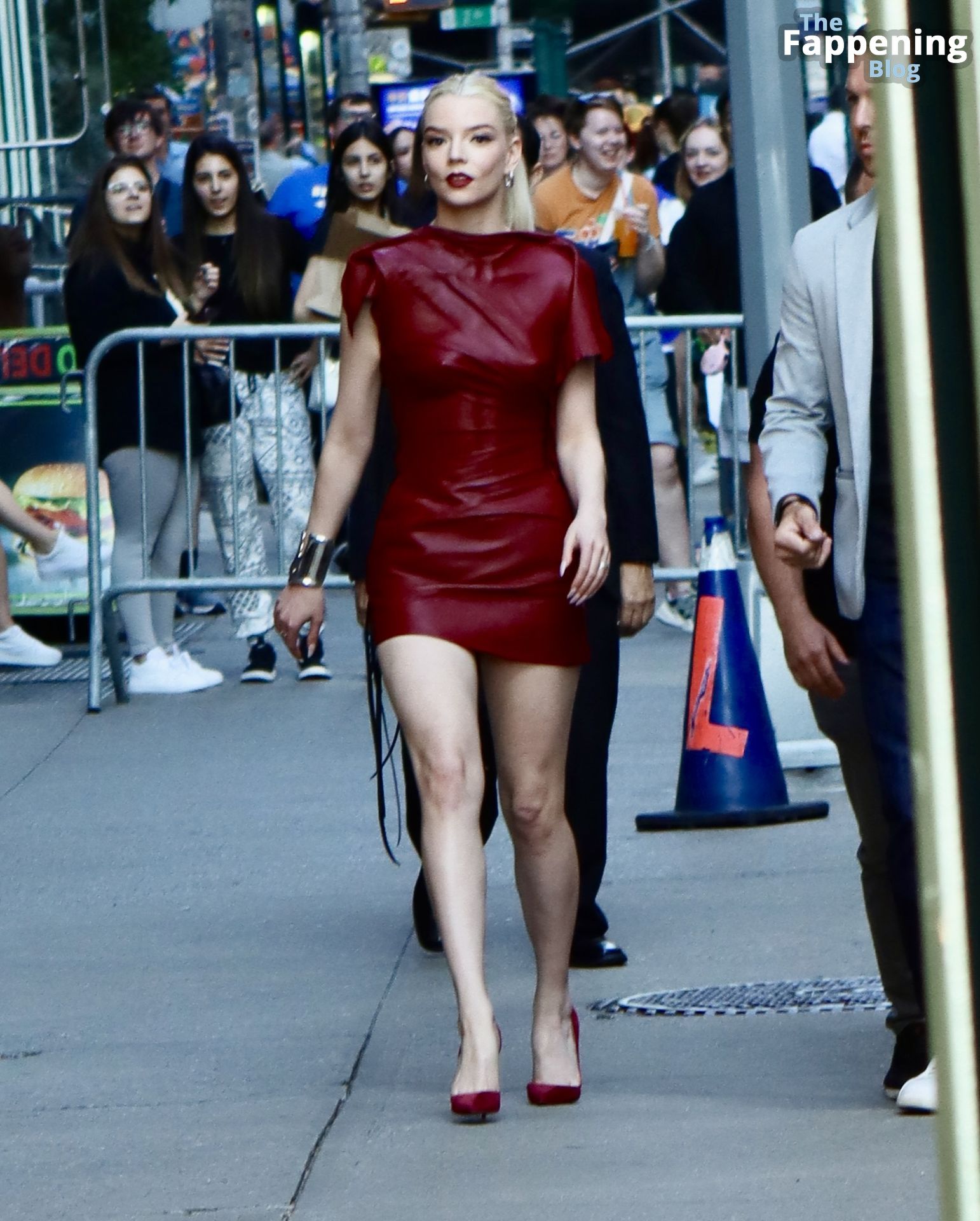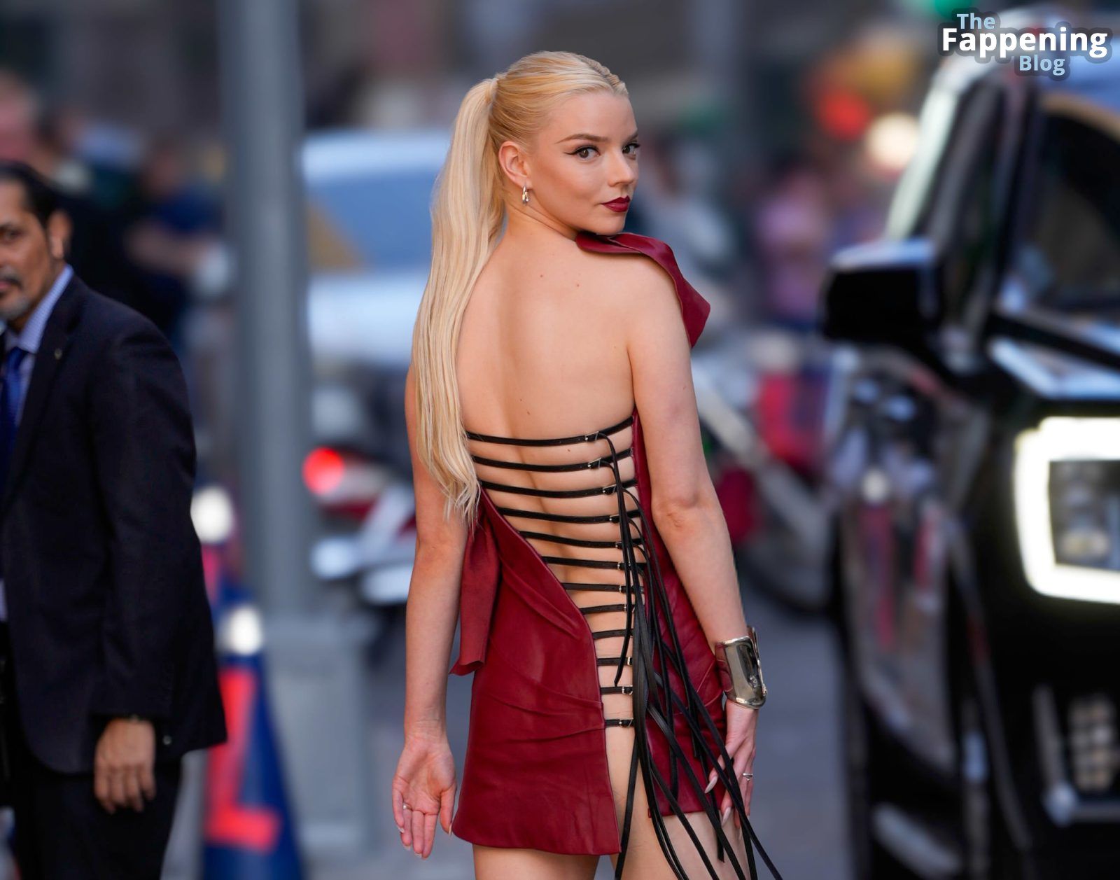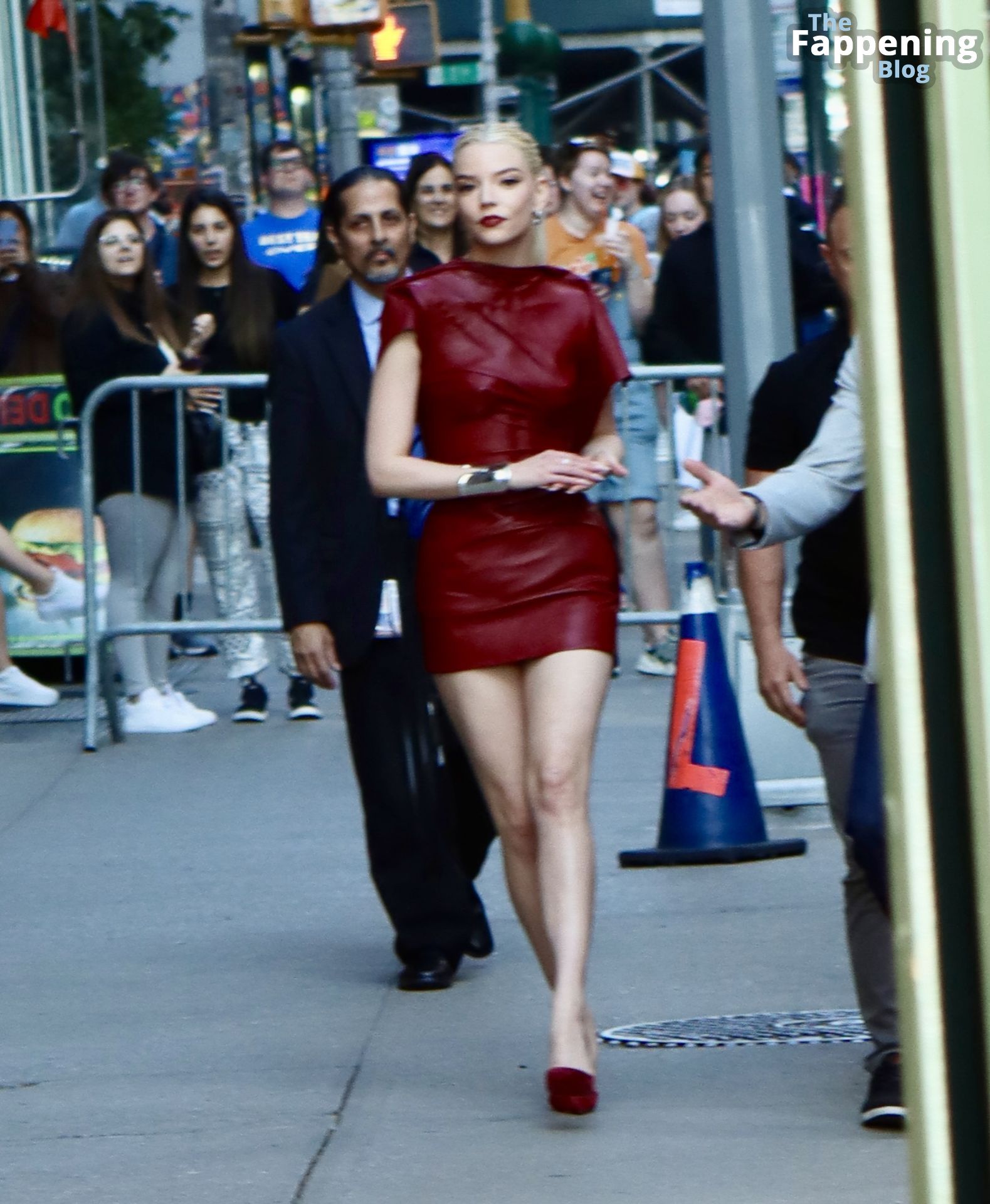 Anya Taylor-Joy is seen rockin’ that daring outfit as she struts her stuff to The Late Show with Stephen Colbert in the Big Apple. Spotted in NYC, Anya is lookin’ like a total flame in that fire-engine red mini dress.