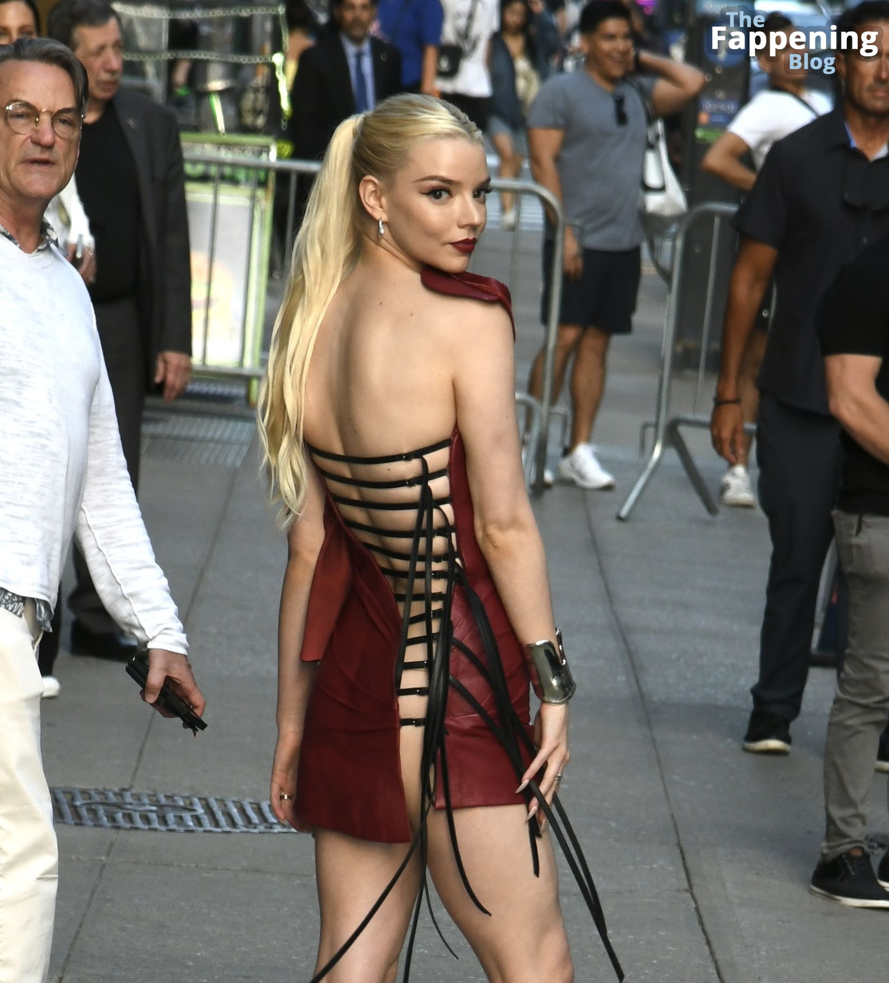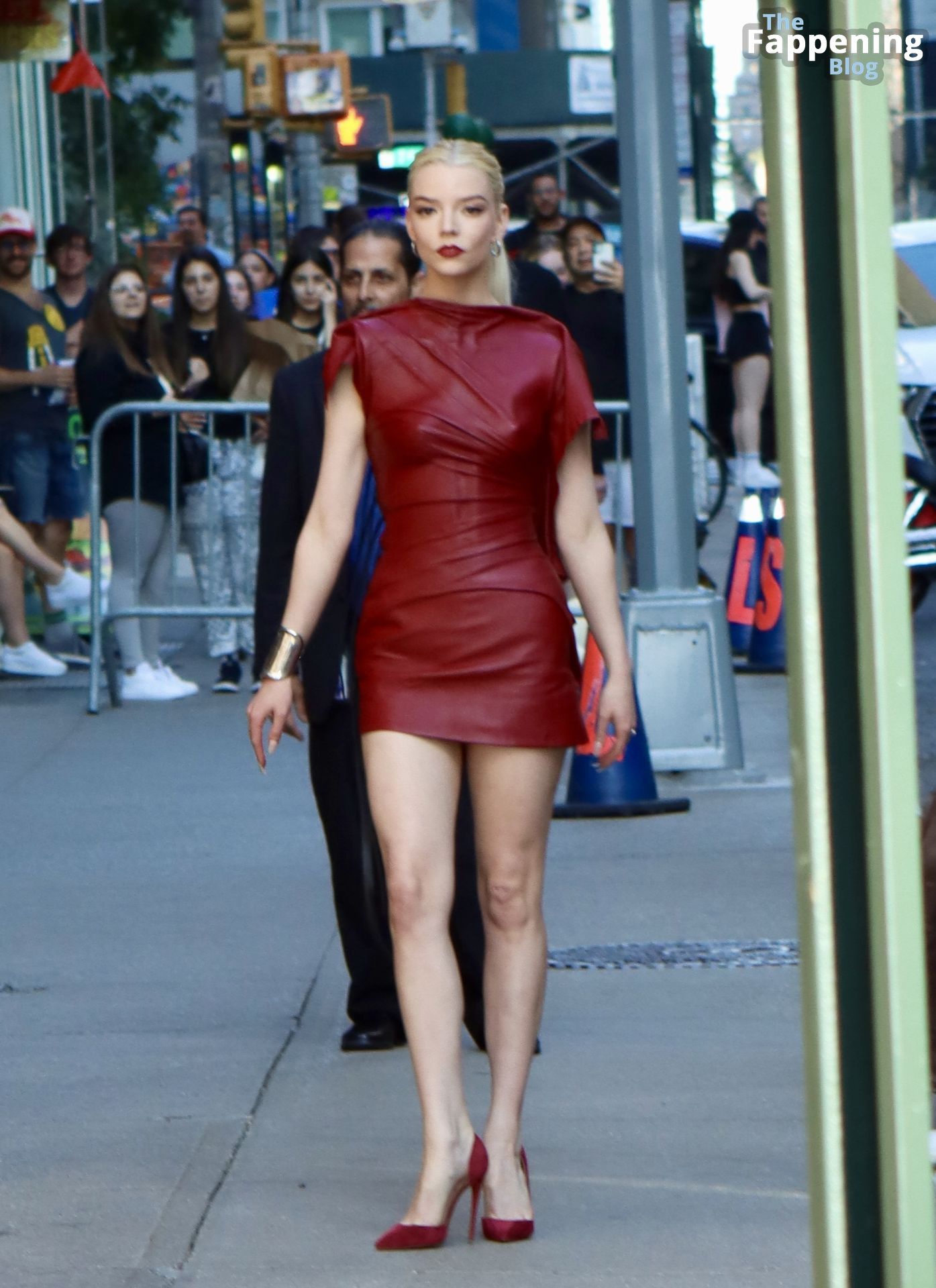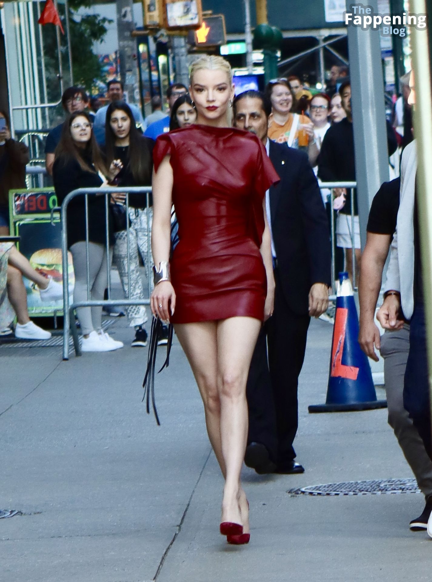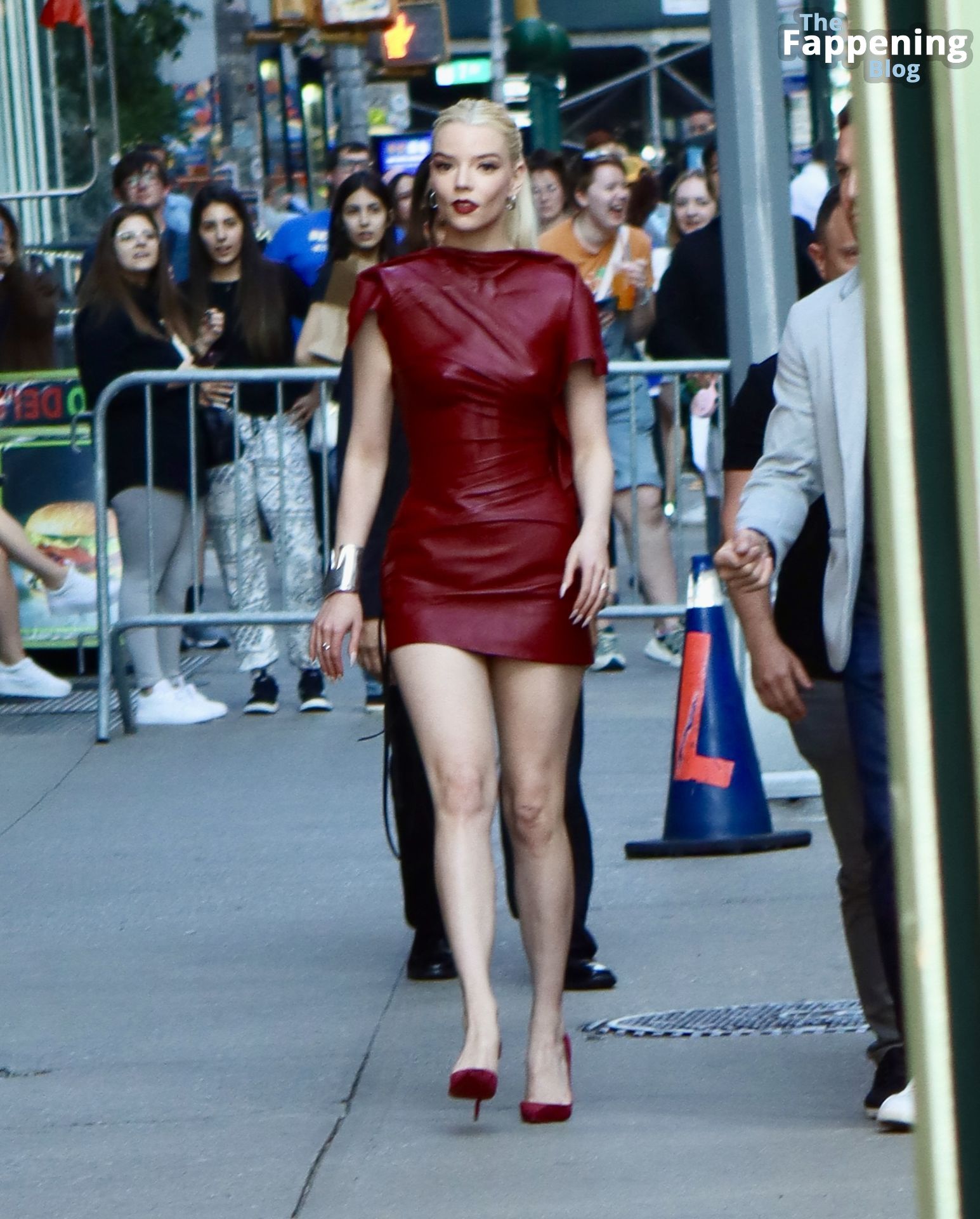 Anya Taylor-Joy is seen rockin’ that daring outfit as she struts her stuff to The Late Show with Stephen Colbert in the Big Apple. Spotted in NYC, Anya is lookin’ like a total flame in that fire-engine red mini dress.