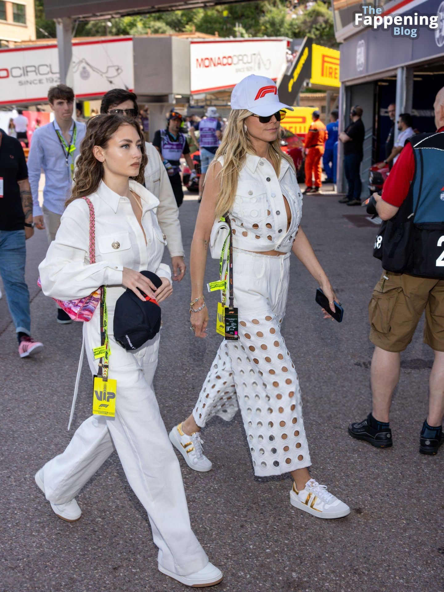 Heidi and Leni Klum display some major cleavage goals at the Monaco Grand Prix, lookin’ like total babes with their bods on full display.