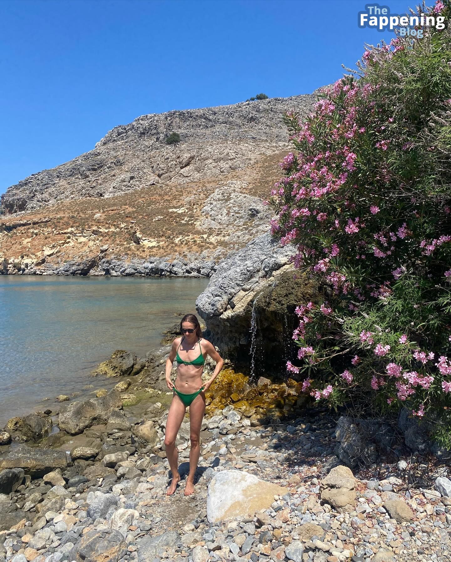 For a dip in the warm Mediterranean, Karmen rocked a revealing green bikini that showed off her sick, skinny bod.