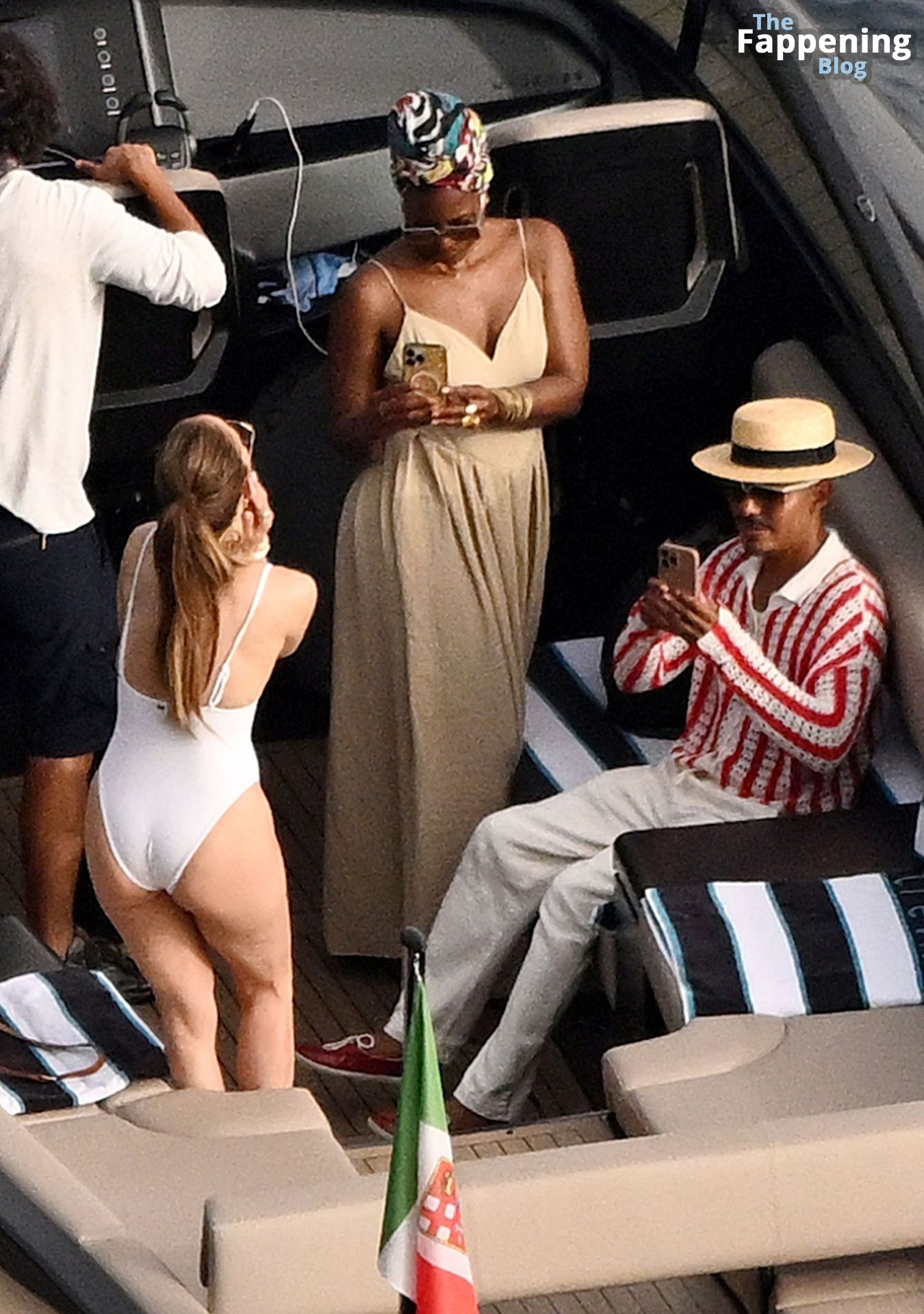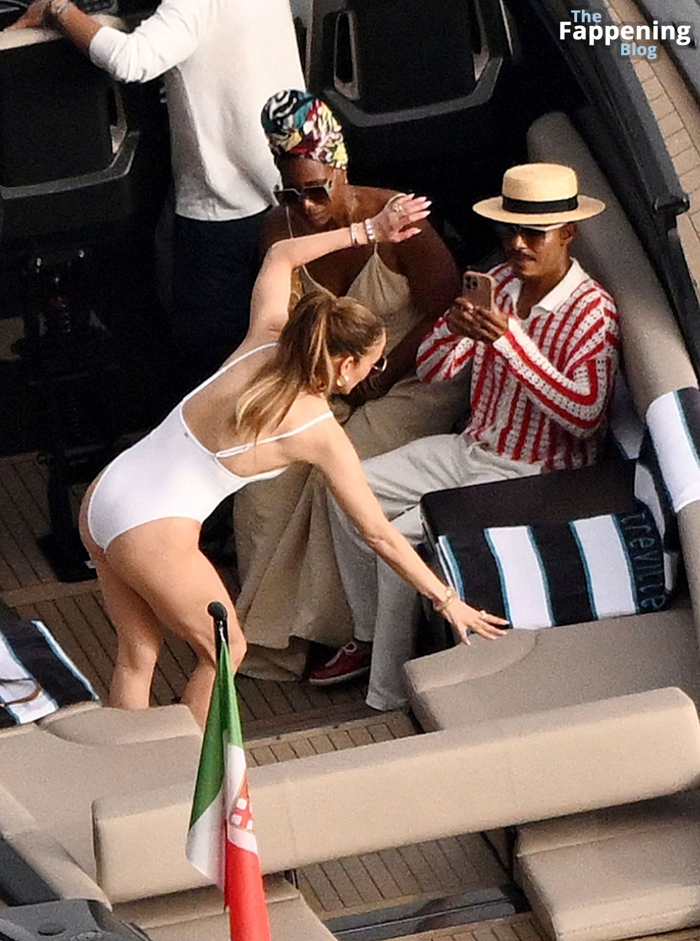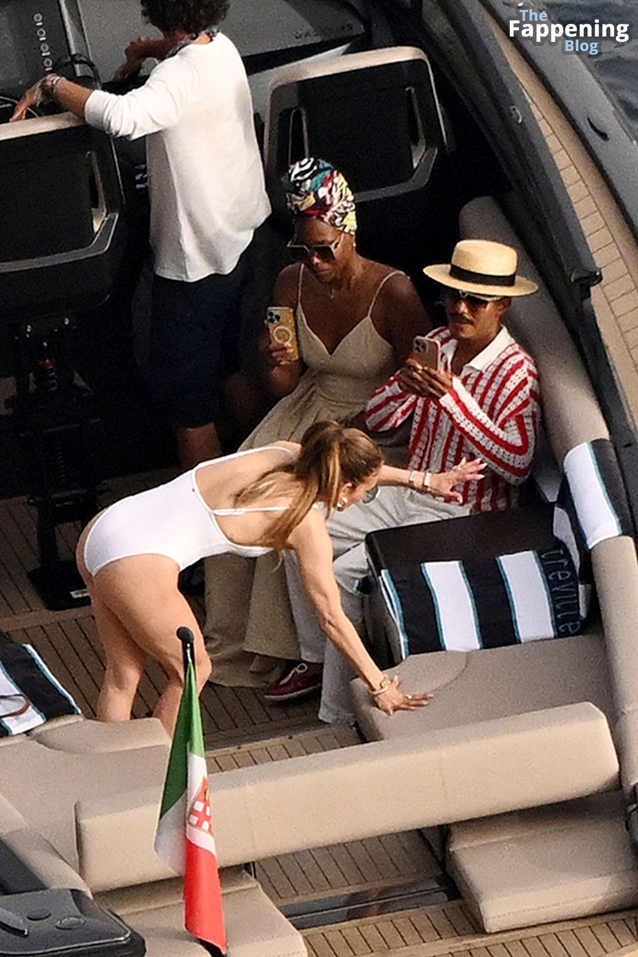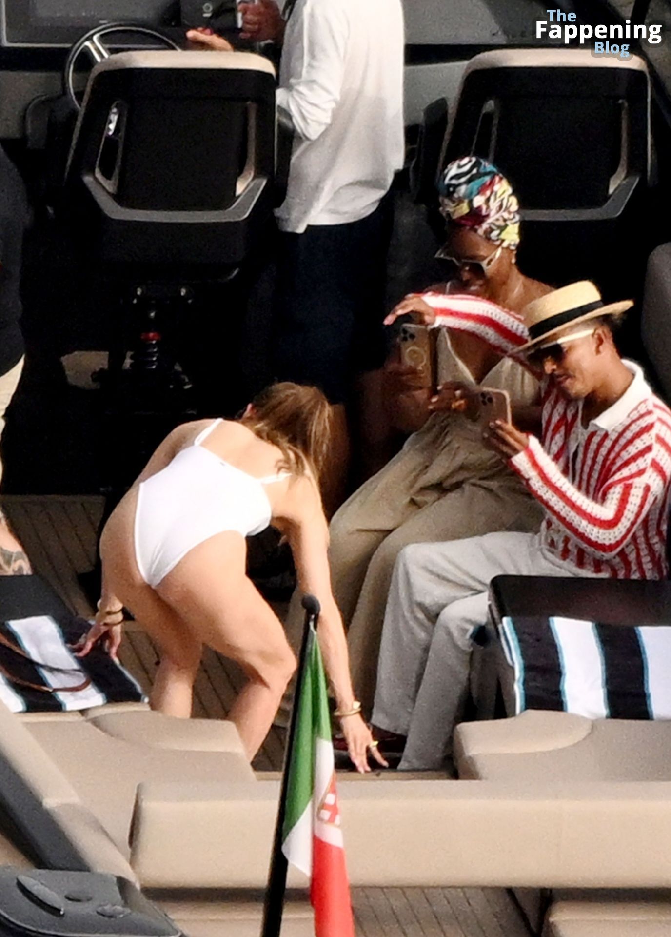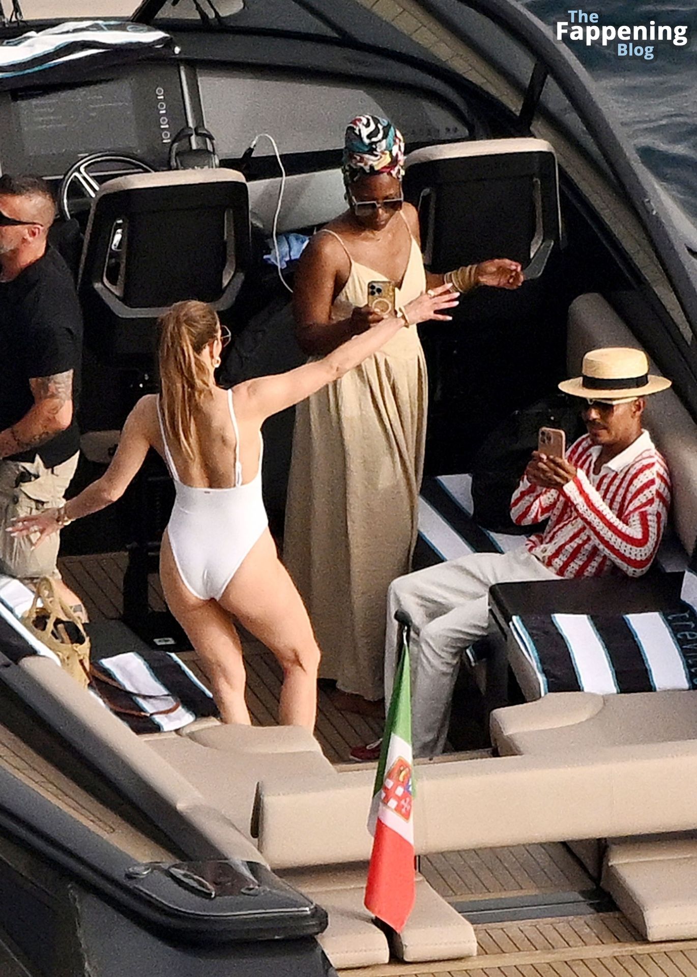 JLo looks stunning in a sick white swimsuit while vibin’ in Italy. Her tits and booty are here, snatchin’ all the attention from the paparazzi.