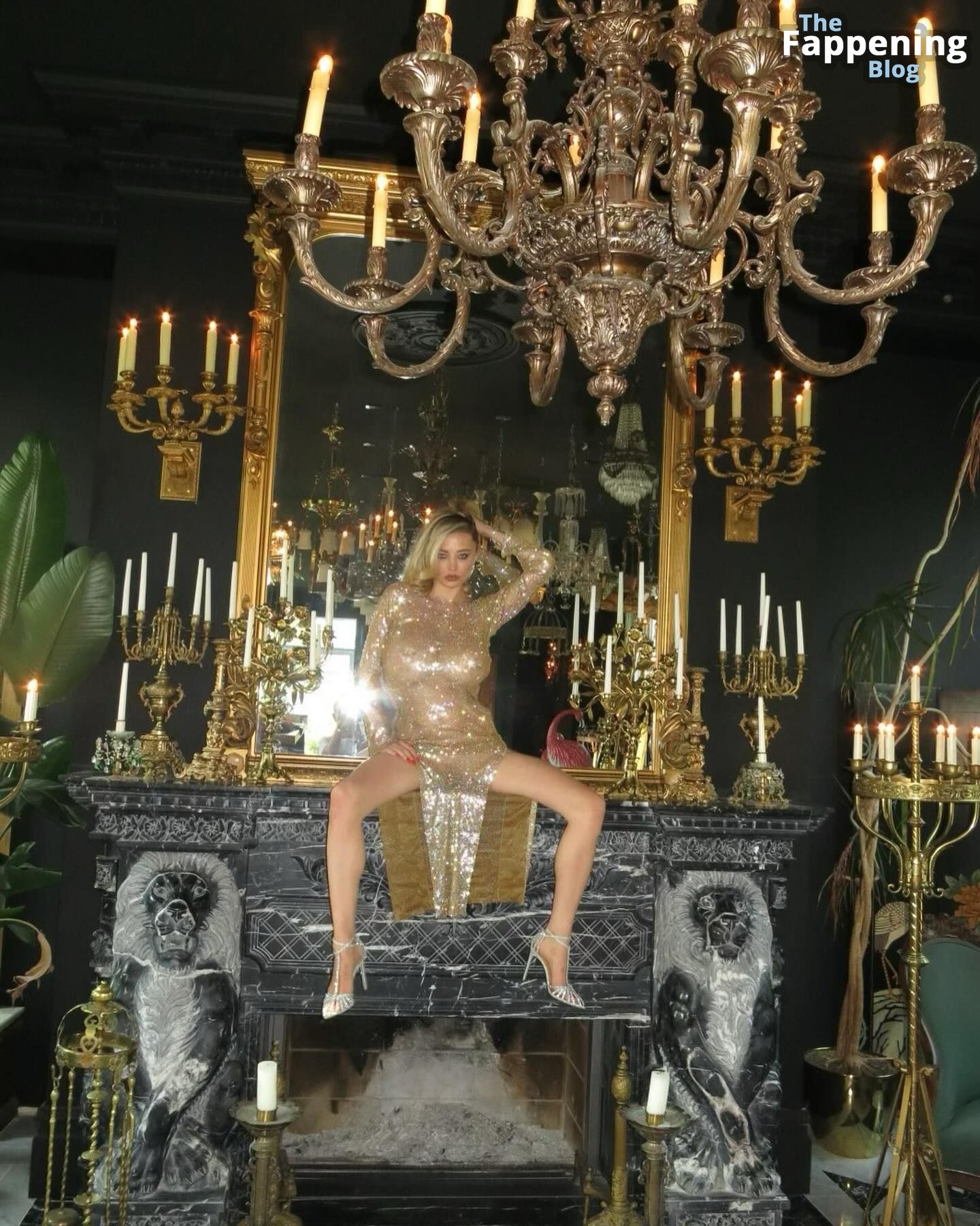The pics show Caroline Vreeland chillin’ on a fireplace, rockin’ a golden outfit that’s totally highlightin’ her sick curves and those long, lean legs.