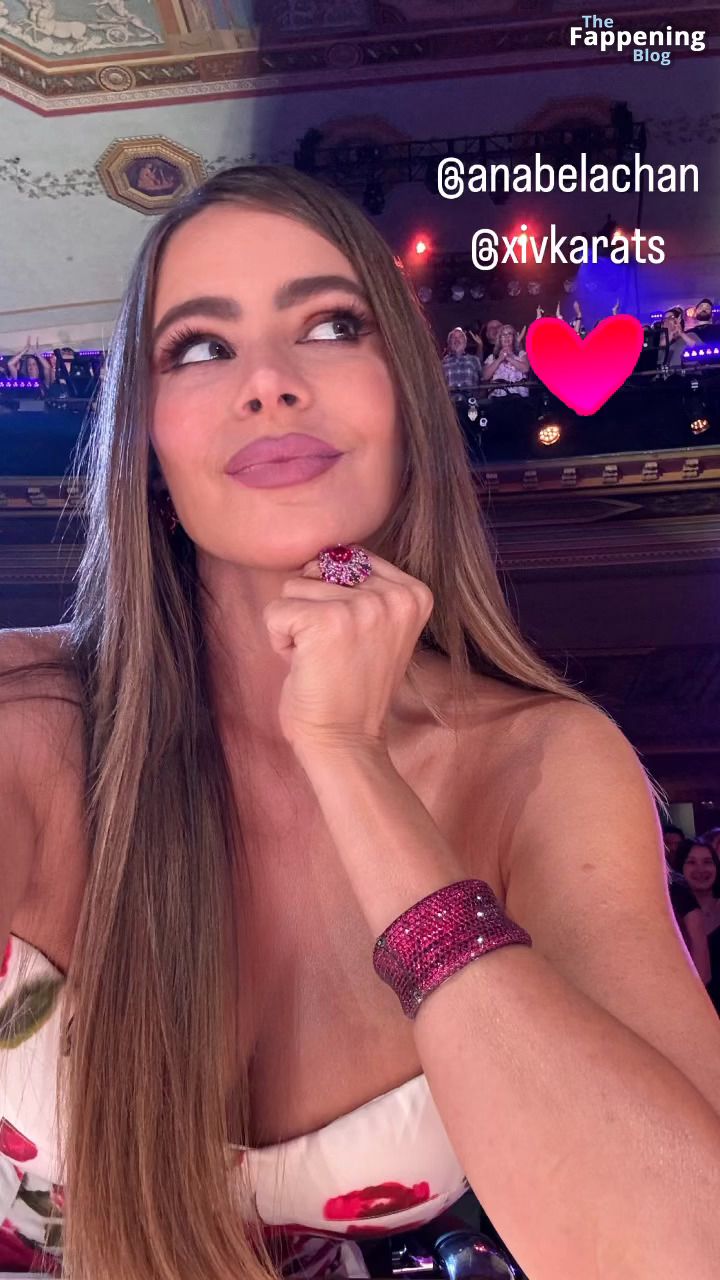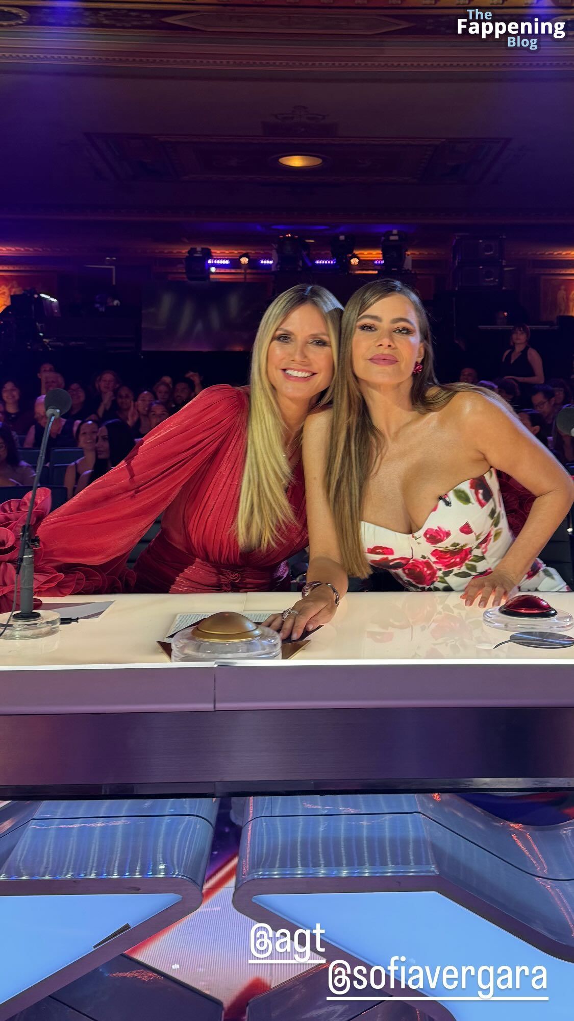 Sofia Vergara rocking a braless look, flaunting her sexy boobs and insane cleavage in a super sexy, revealing dress on the set of America Has Got Talent, and she’s also posing with Heidi Klum.