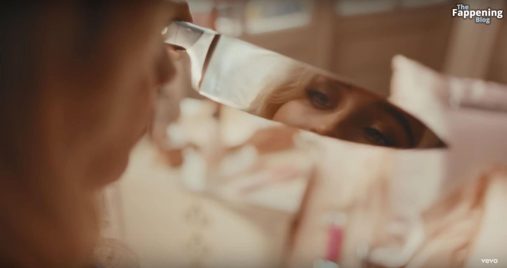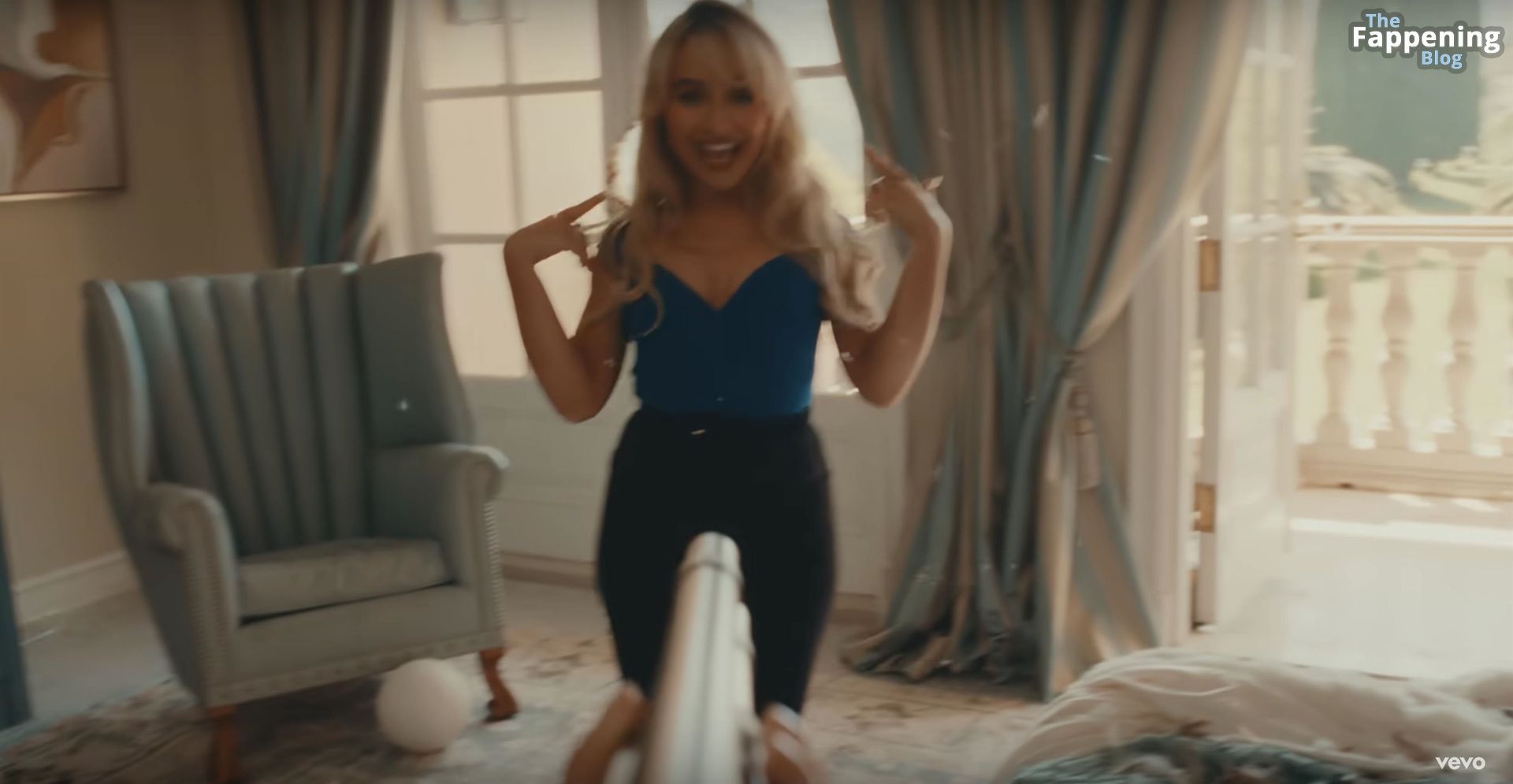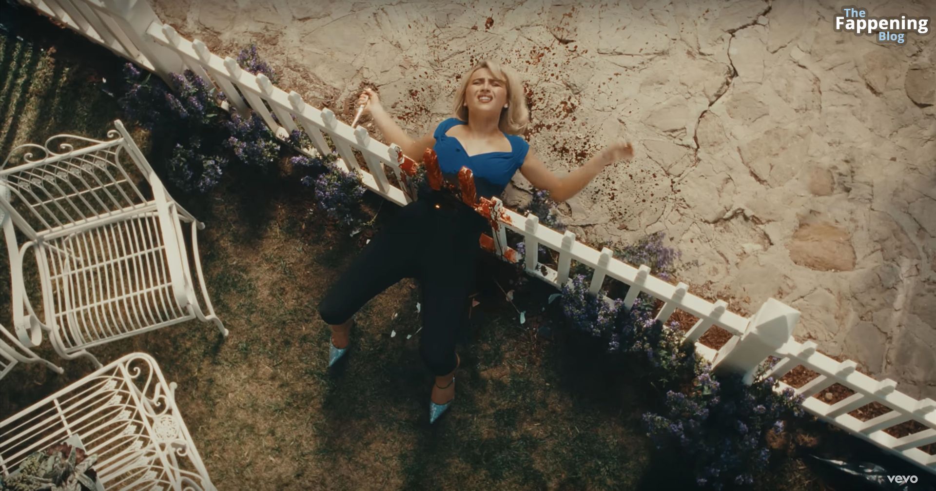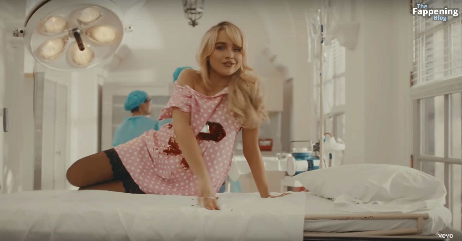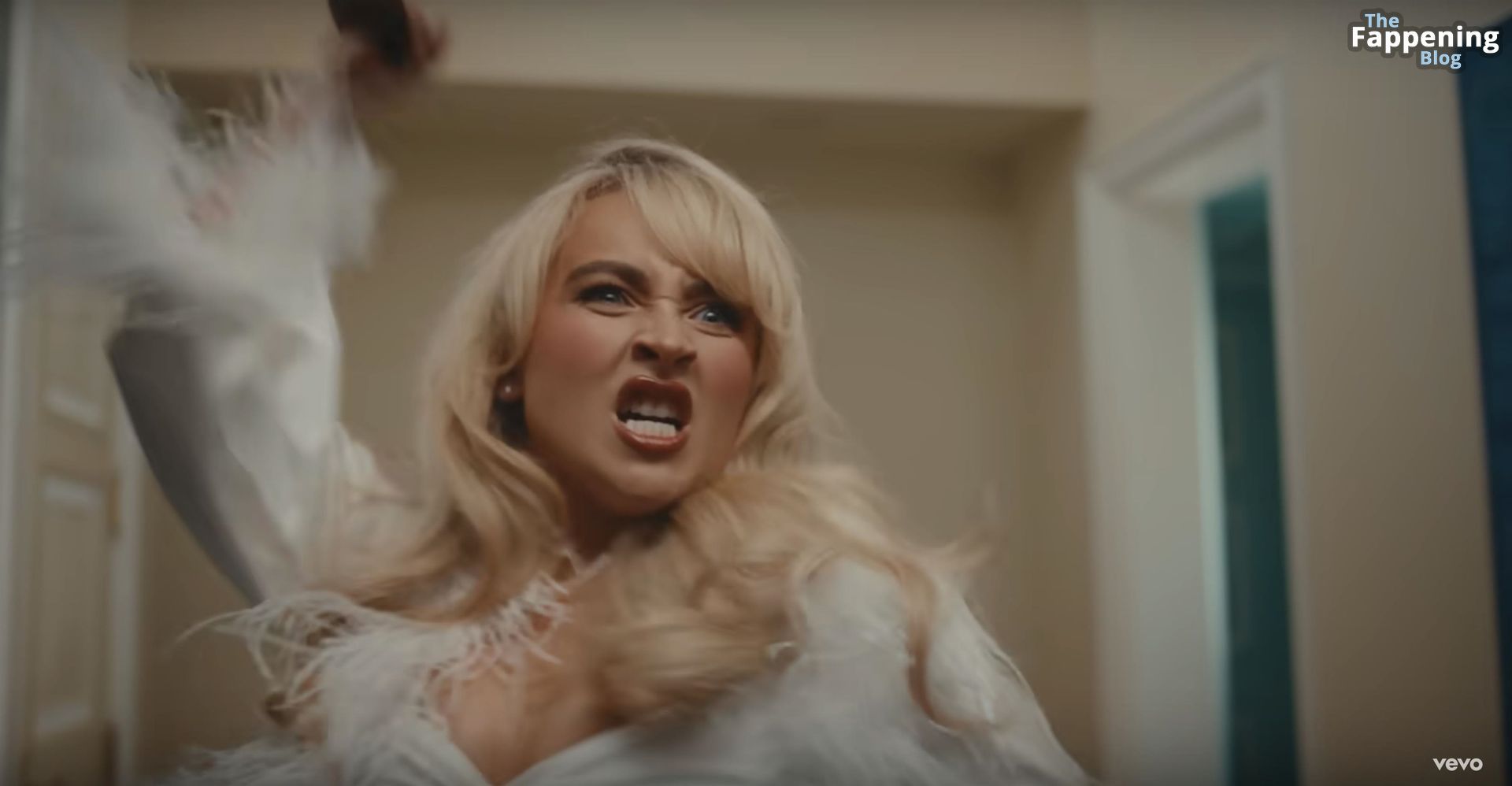In the Dave Meyers-directed video, Carpenter and the “Beetlejuice 2” actress are constantly trying to take each other out and even share a steamy kiss. At the start, the “Nonsense” singer hits up a pink bed loaded with murder tools and grabs a knife to use as a mirror while she’s getting ready. She then storms into a mansion, trying to off the You actress, who she thinks is hooking up with her guy.