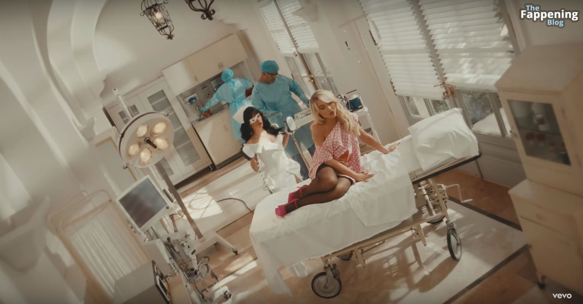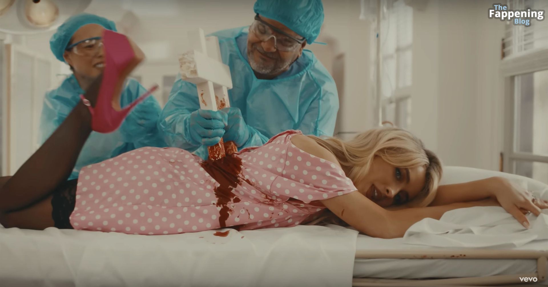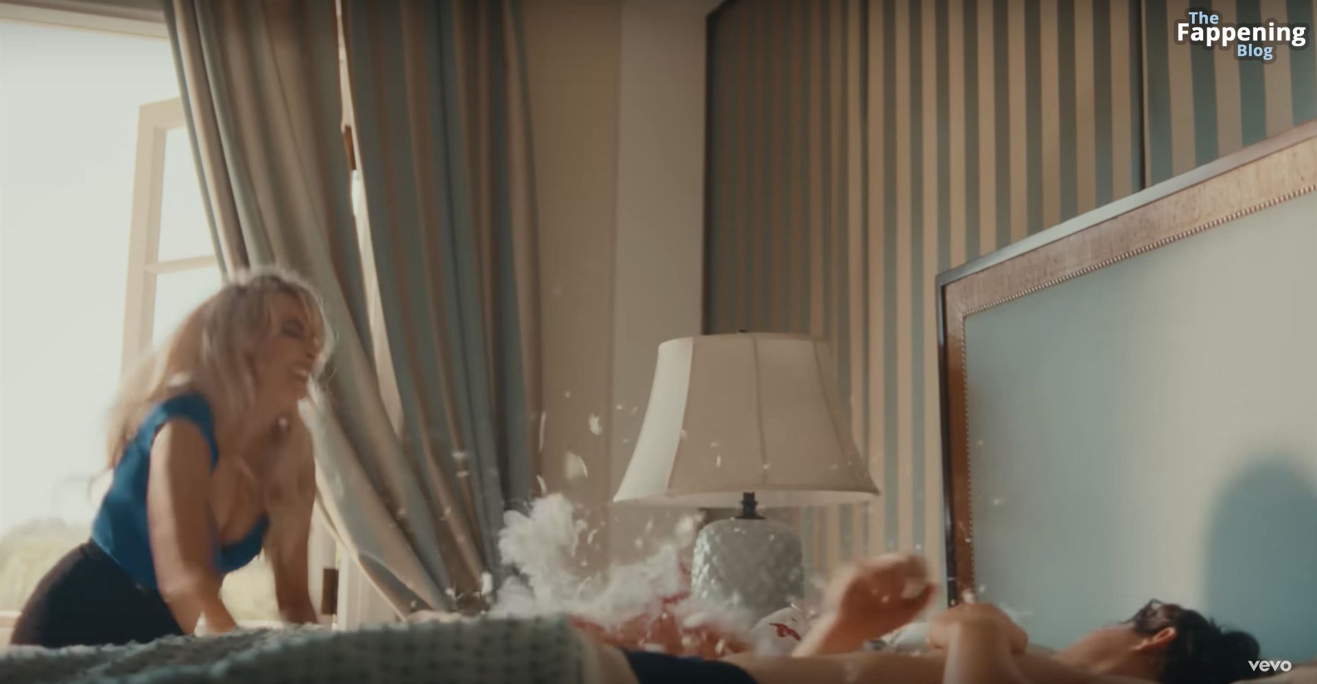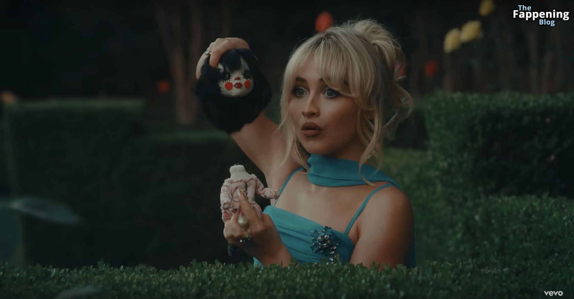 In the Dave Meyers-directed video, Carpenter and the “Beetlejuice 2” actress are constantly trying to take each other out and even share a steamy kiss. At the start, the “Nonsense” singer hits up a pink bed loaded with murder tools and grabs a knife to use as a mirror while she’s getting ready. She then storms into a mansion, trying to off the You actress, who she thinks is hooking up with her guy.