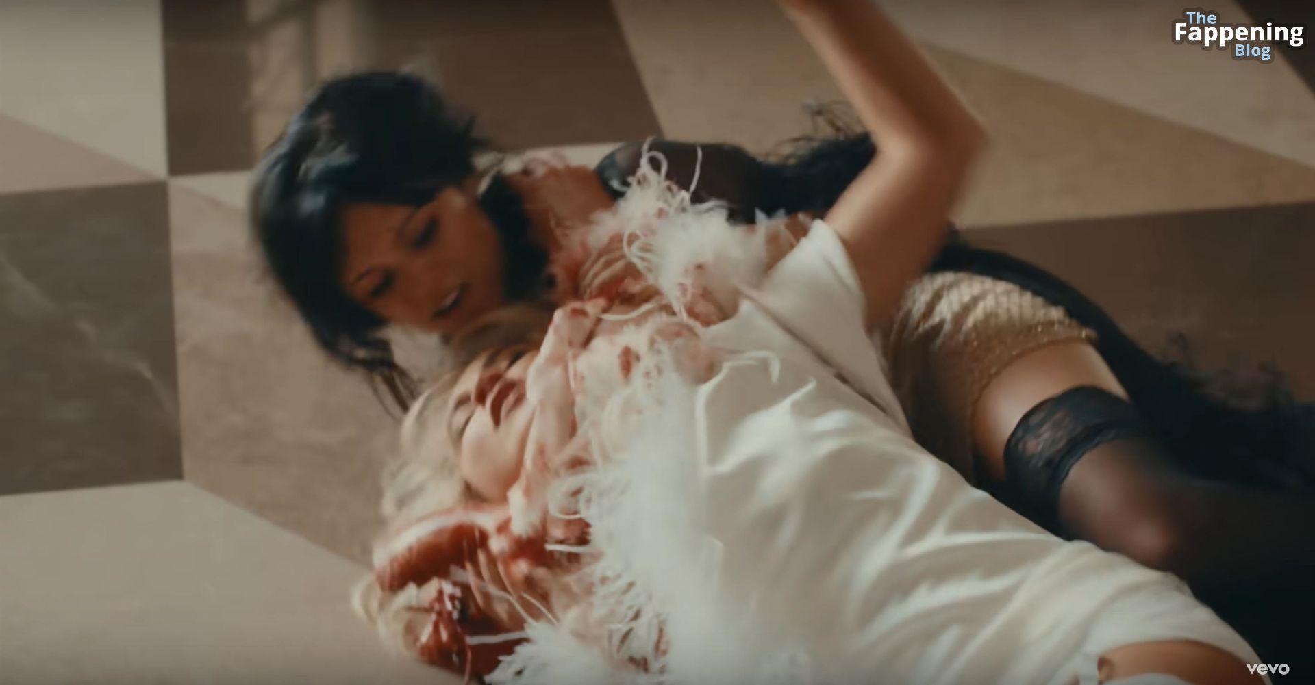Sabrina Carpenter and Jenna Ortega are bringing the heat in the “Taste” music video, where they’re kissing and murdering each other left and right.