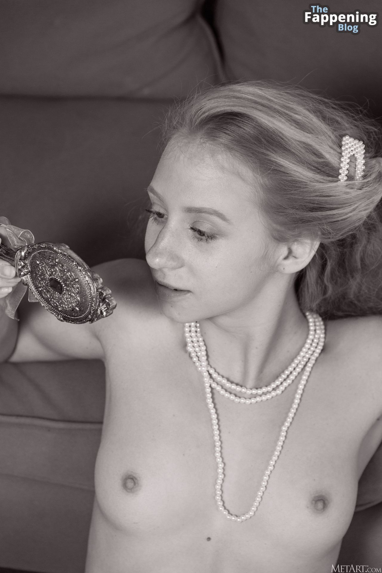 This sexy blonde, standing at 5ft 7in, has a killer figure and small but strong tits, and she’s taking off her panties right in front of the camera to flaunt her body. Her pale skin looks fire with her blonde hair. Alice Blue – a girl who lived in a village until she was 18 – has busted into the adult scene and isn’t slowing down