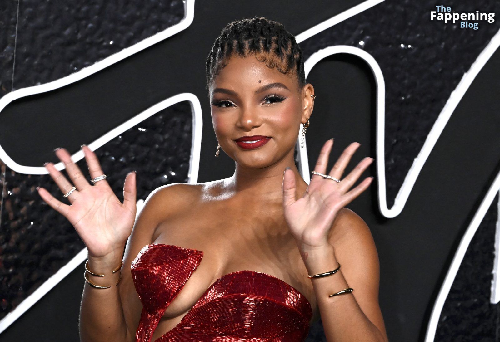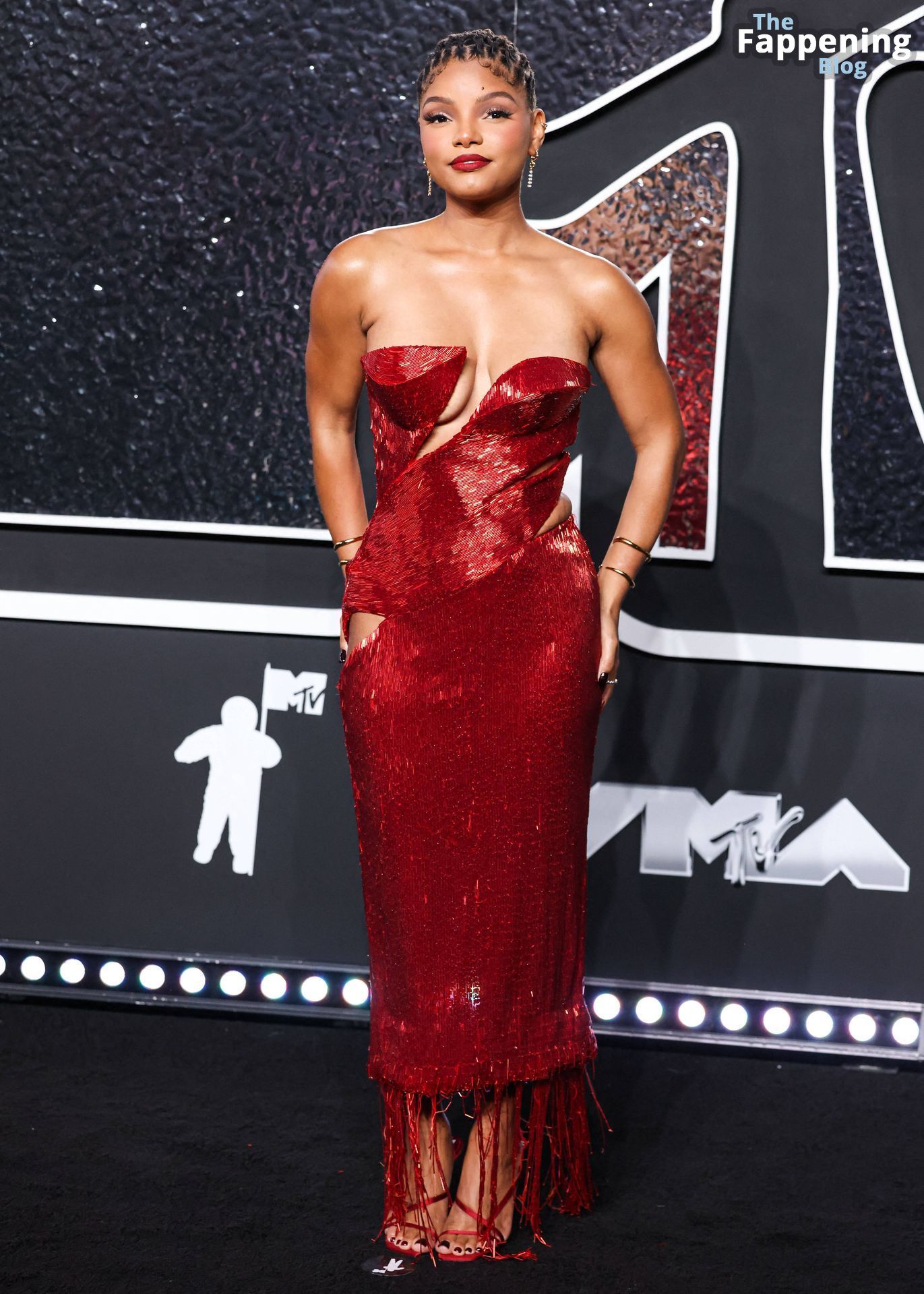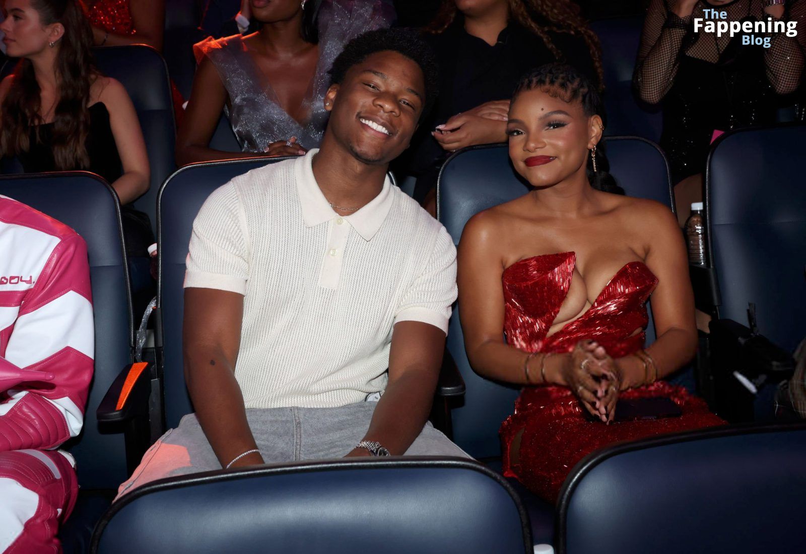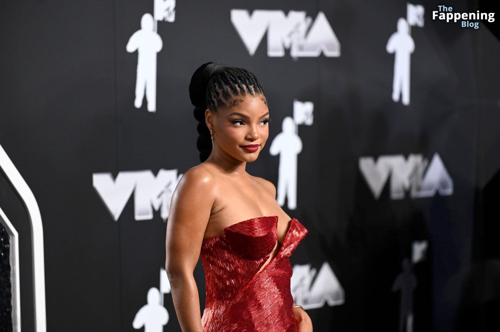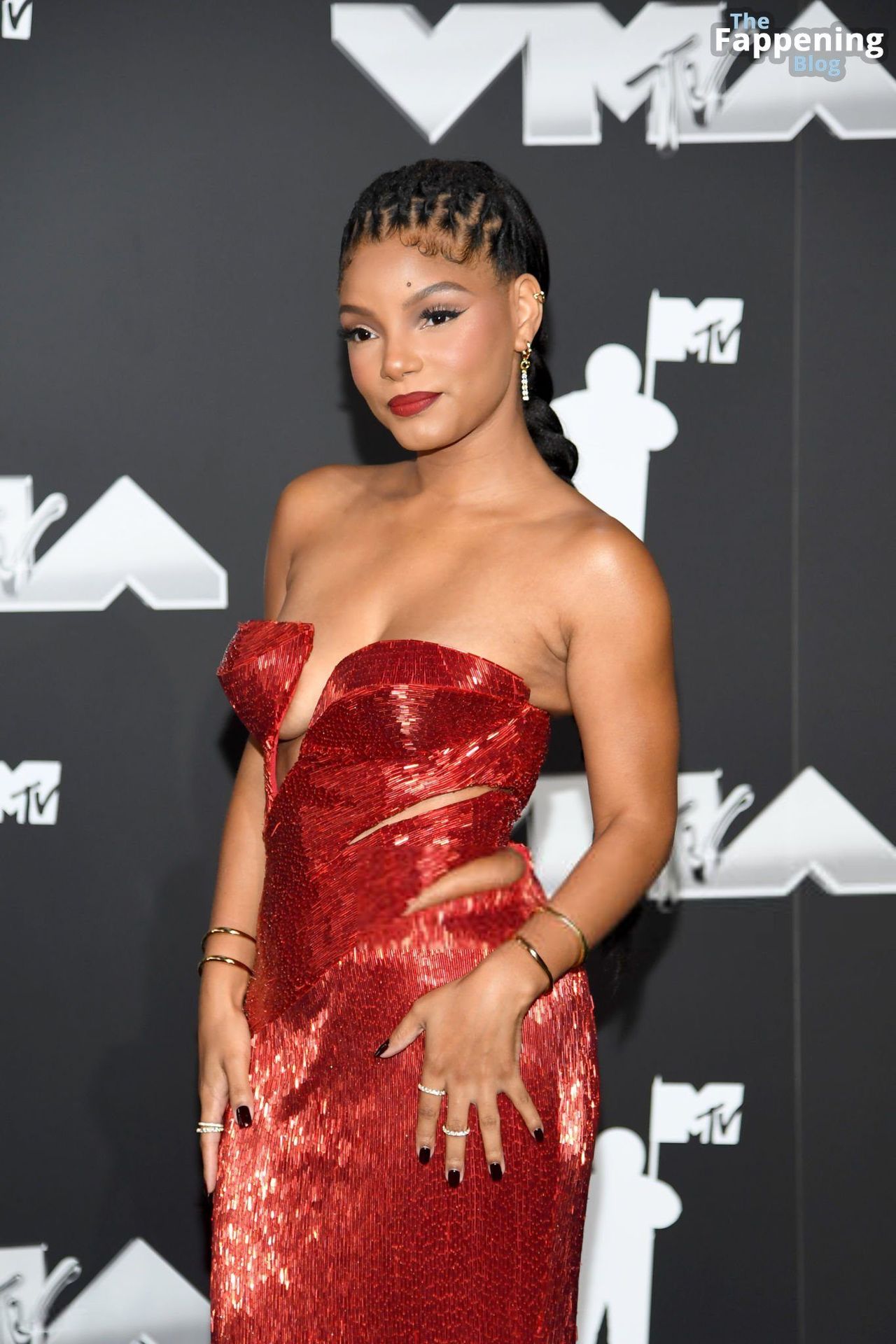 Halle Bailey is seen at the MTV VMAs in NYC, turnin’ heads with her bold, cleavage-baring look. Peep her outfit and that revealing style.