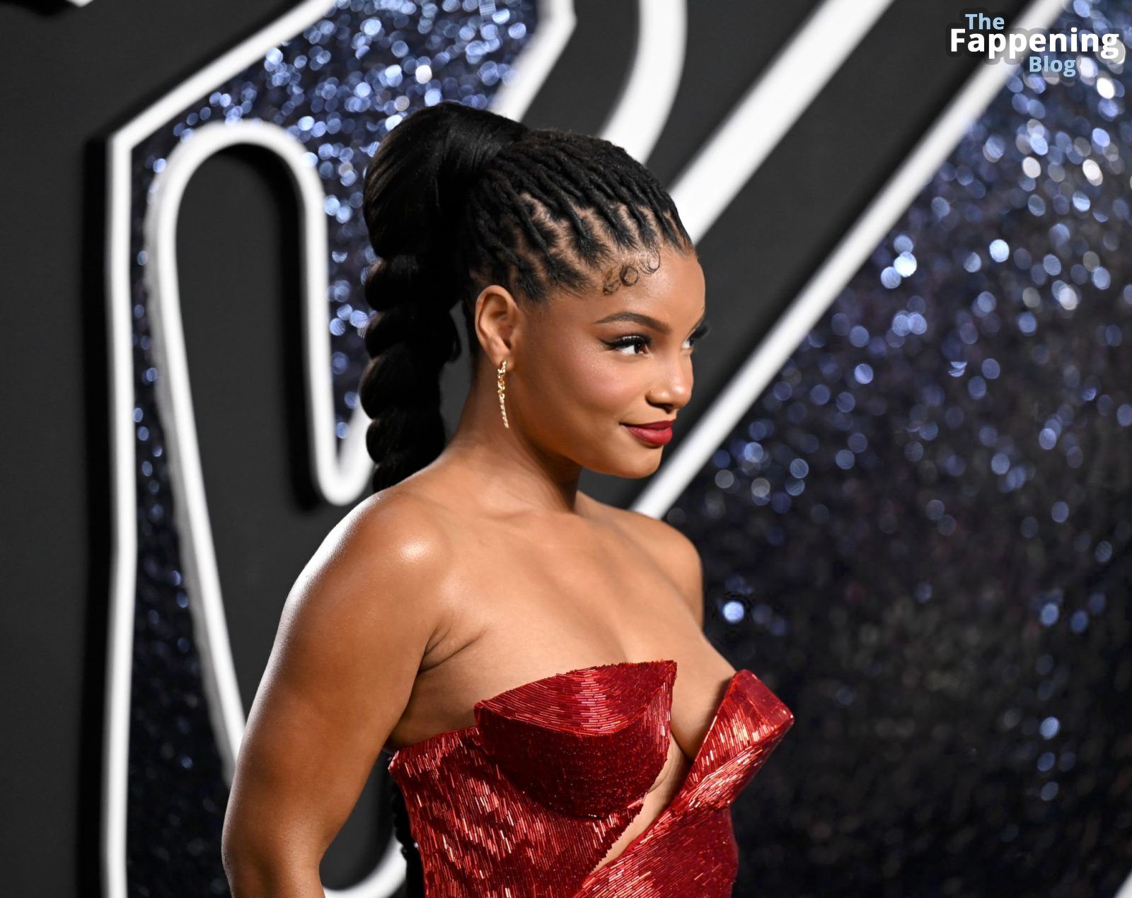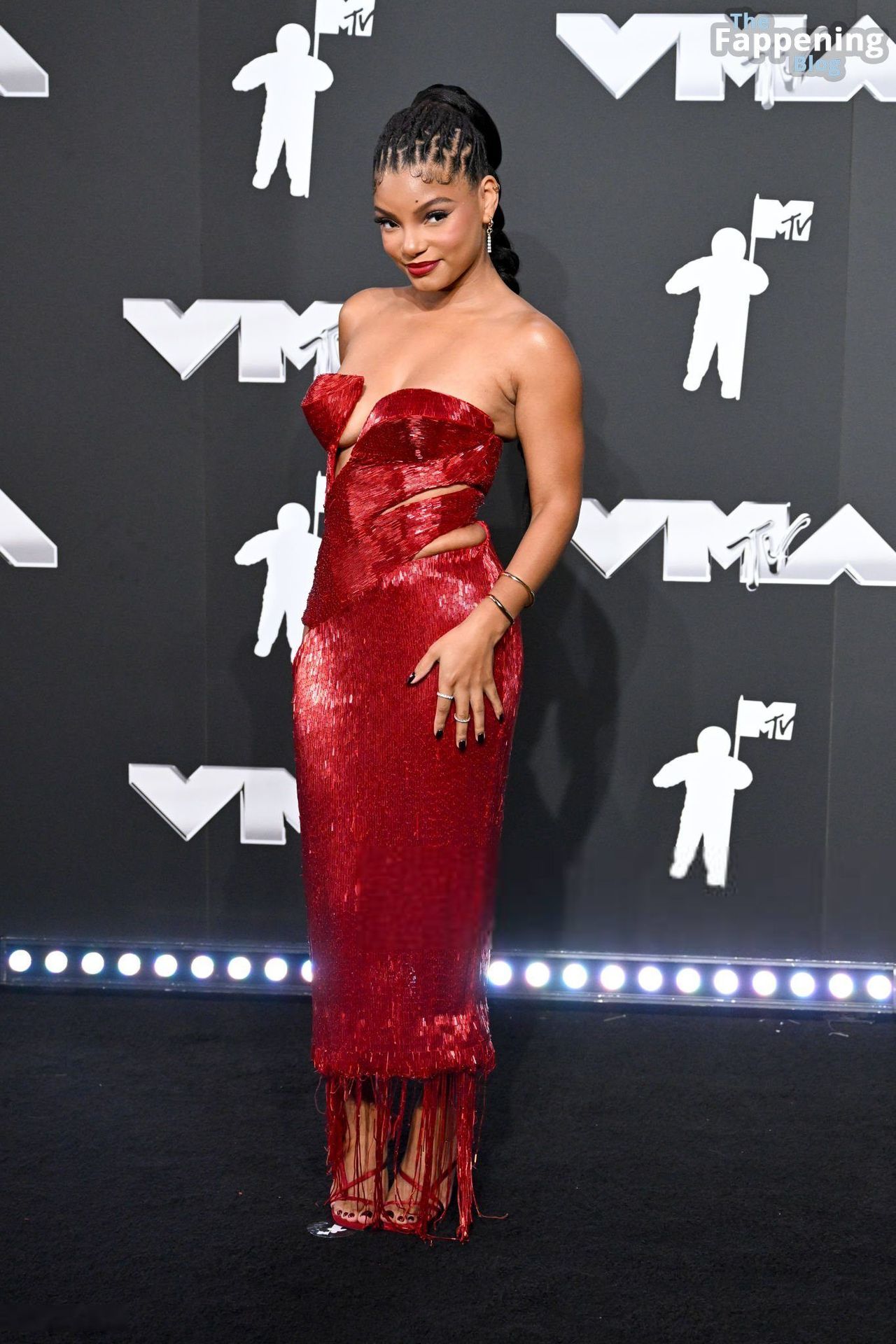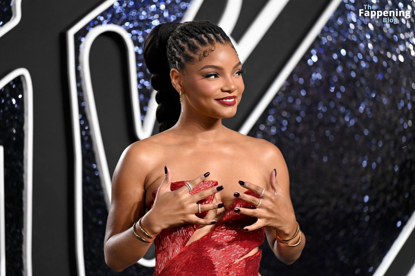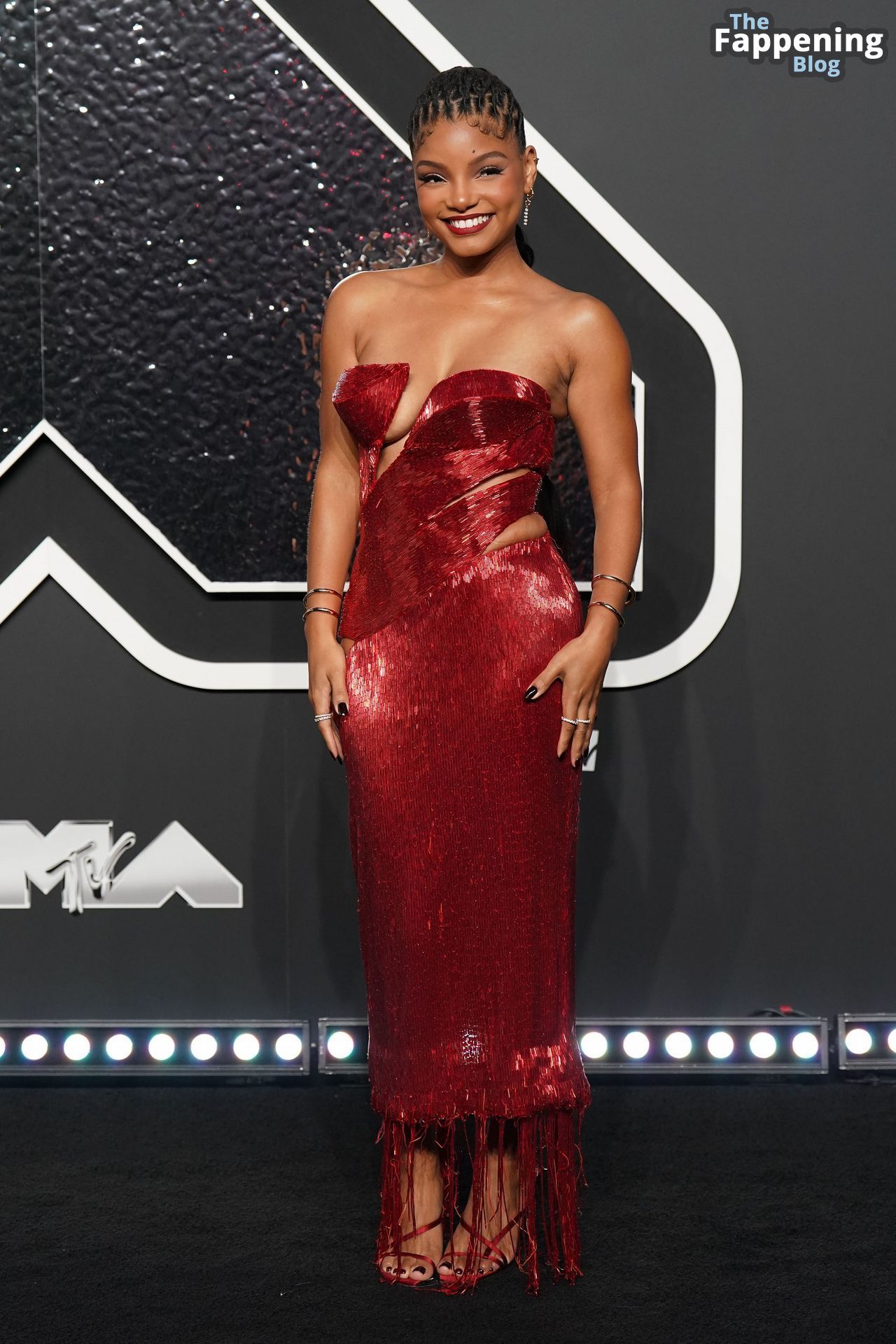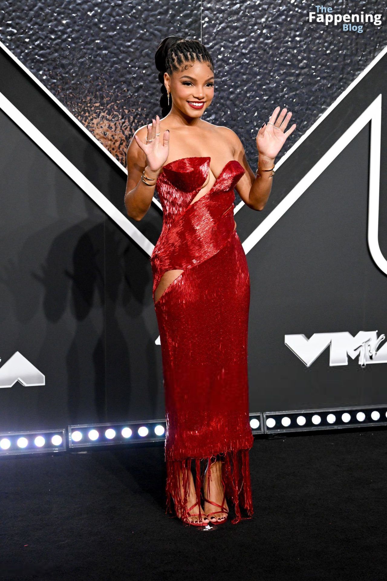 Halle Bailey is seen at the MTV VMAs in NYC, turnin’ heads with her bold, cleavage-baring look. Peep her outfit and that revealing style.