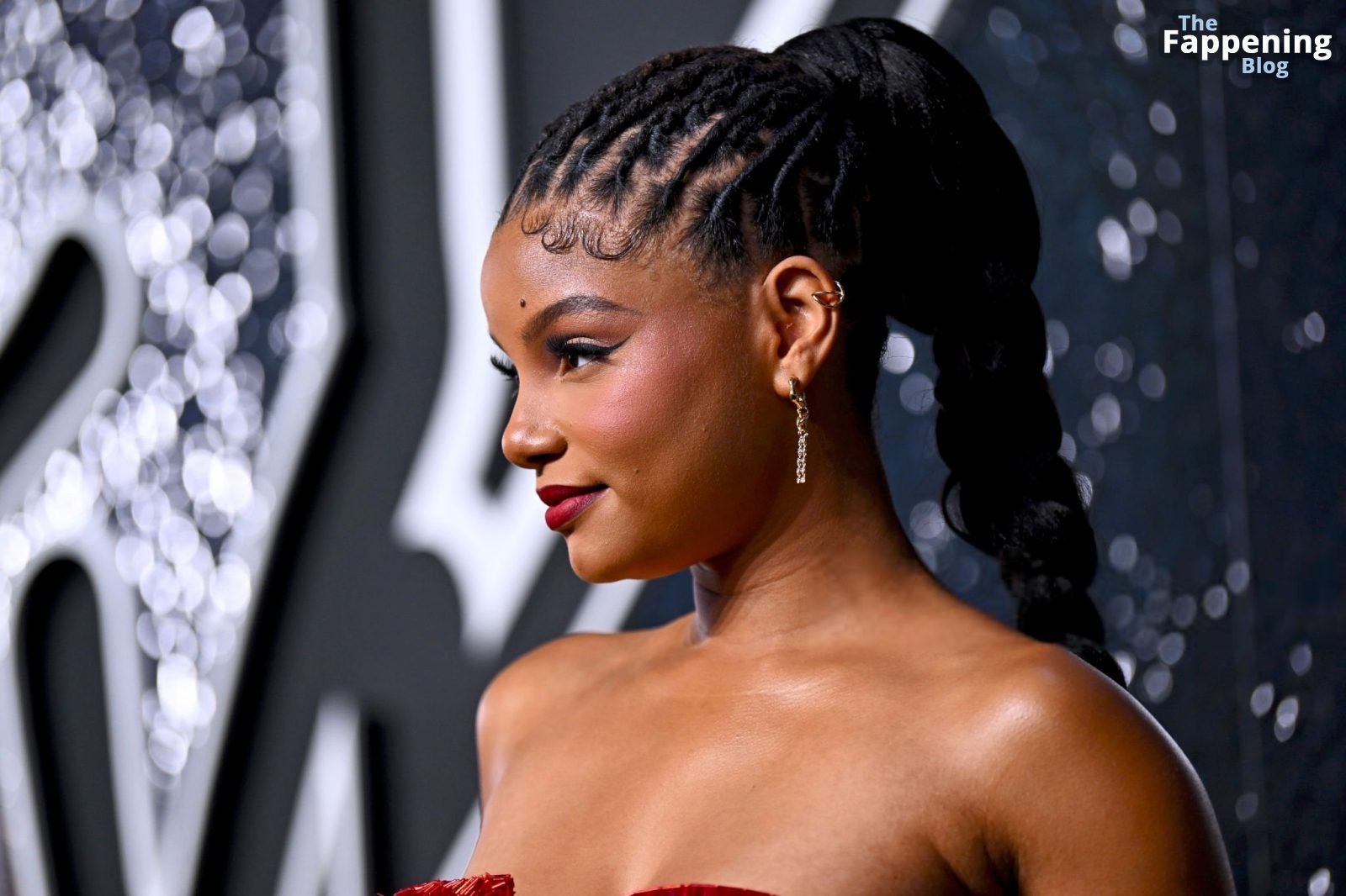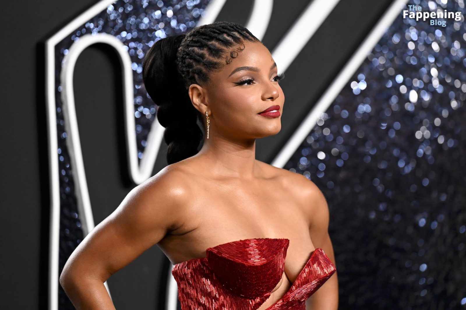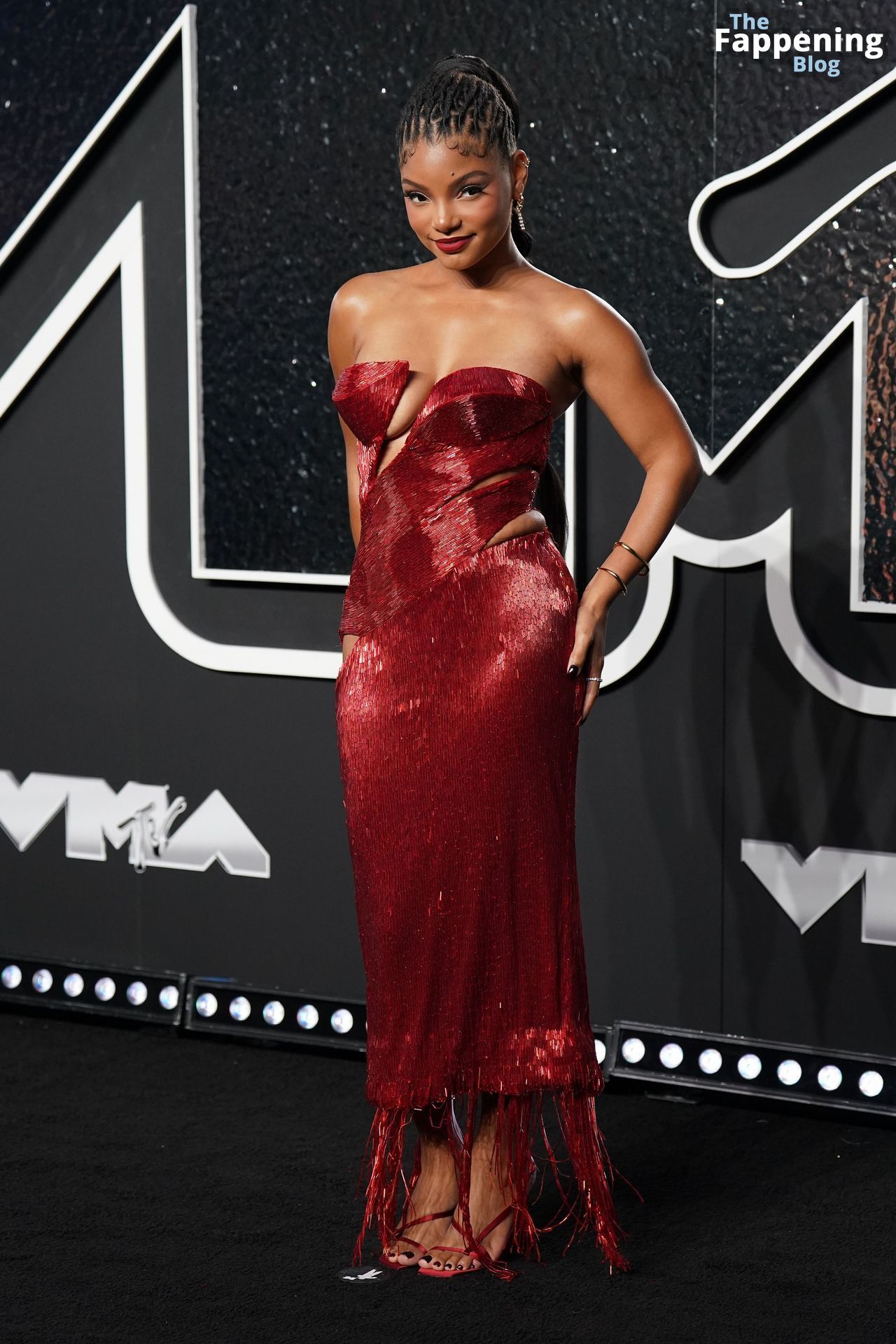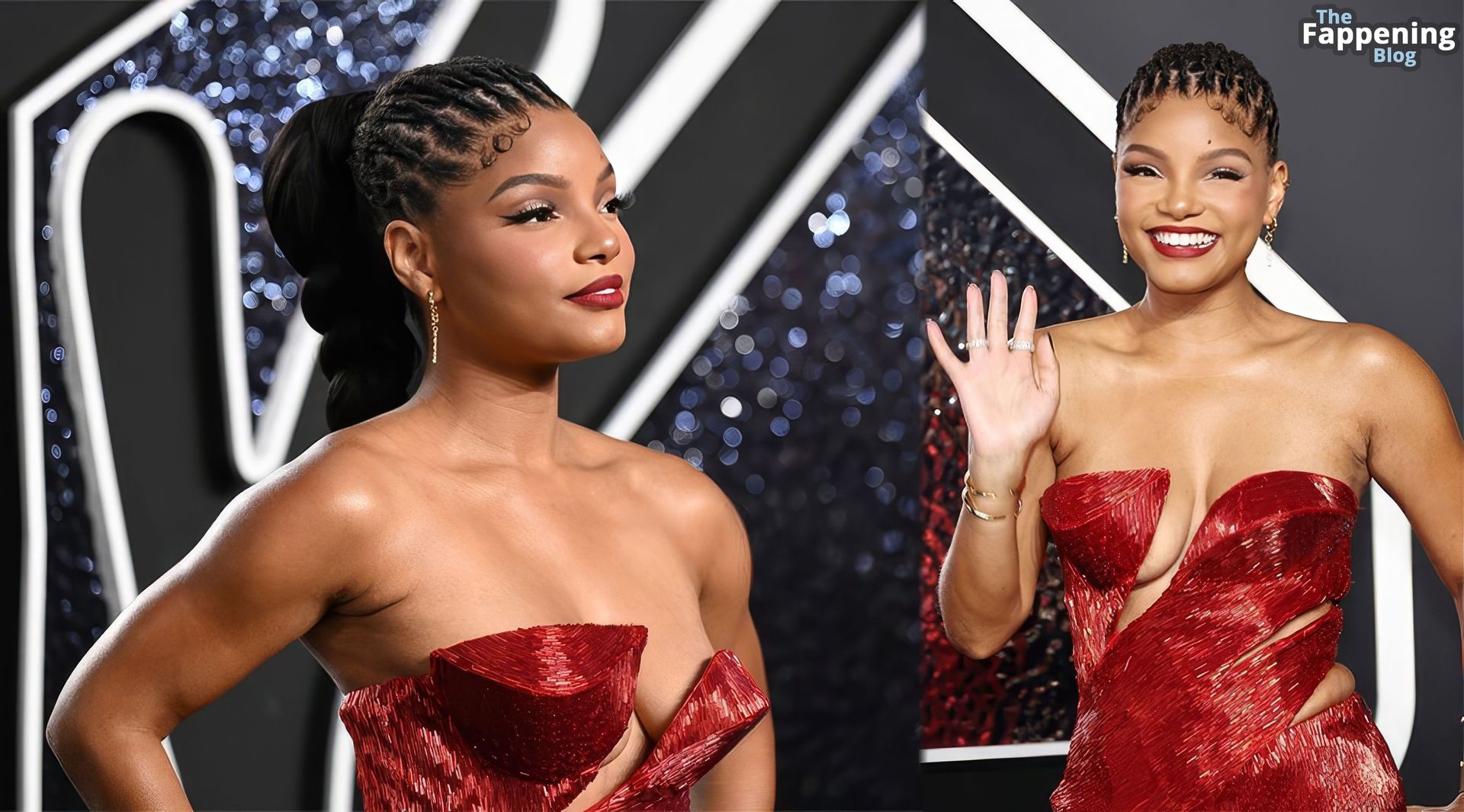 Halle Bailey is seen at the MTV VMAs in NYC, turnin’ heads with her bold, cleavage-baring look. Peep her outfit and that revealing style.