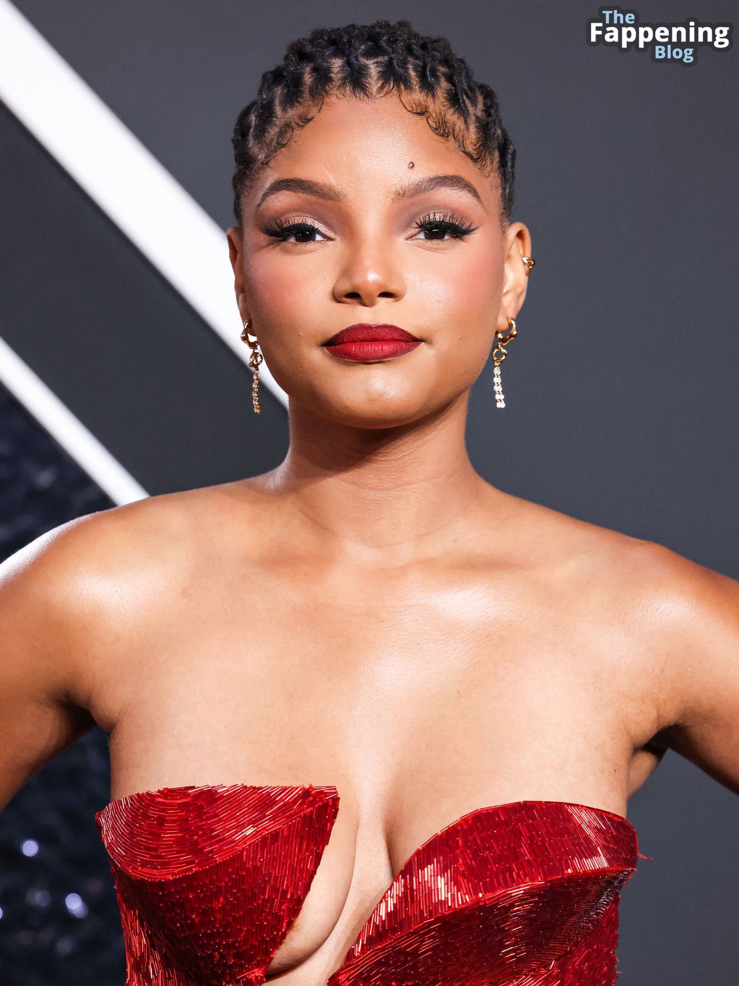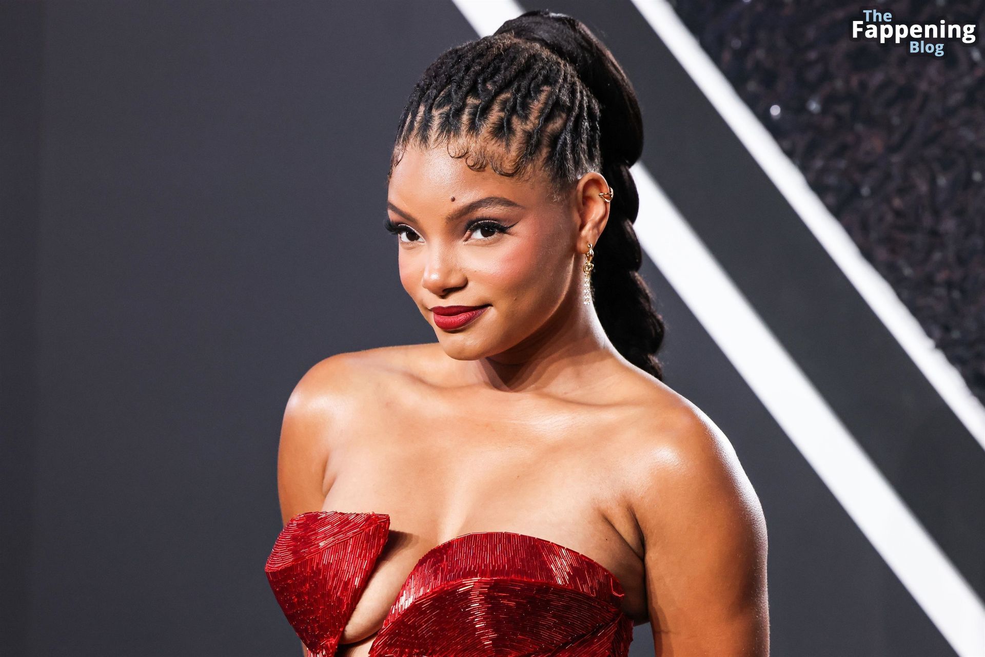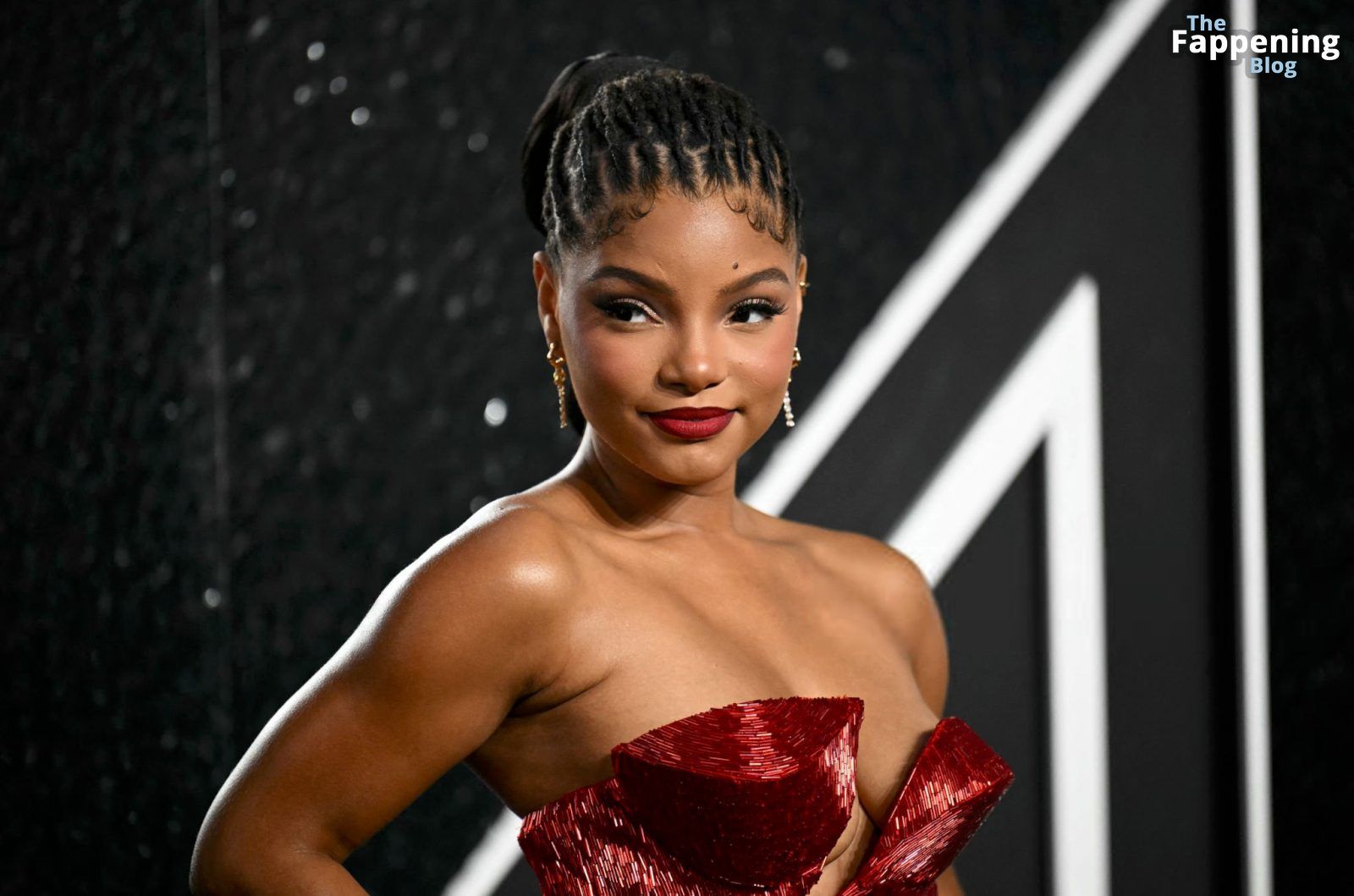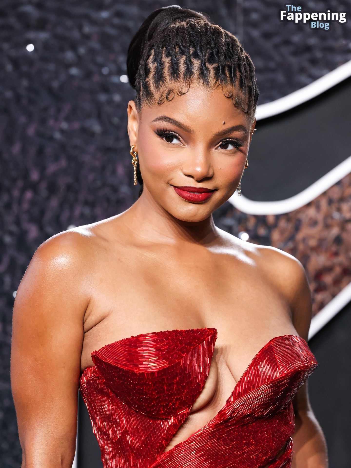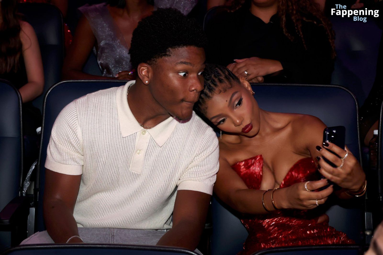 Halle Bailey is seen at the MTV VMAs in NYC, turnin’ heads with her bold, cleavage-baring look. Peep her outfit and that revealing style.