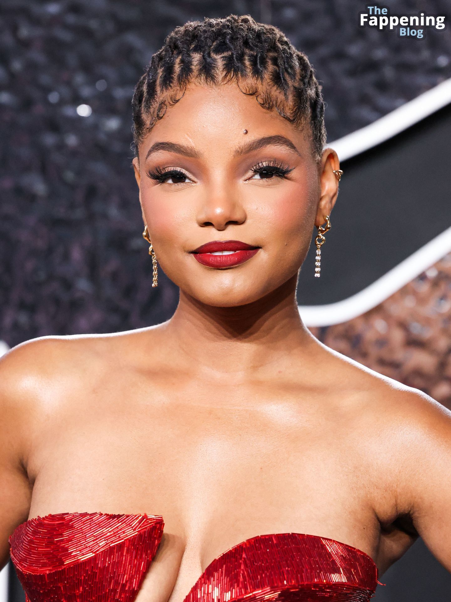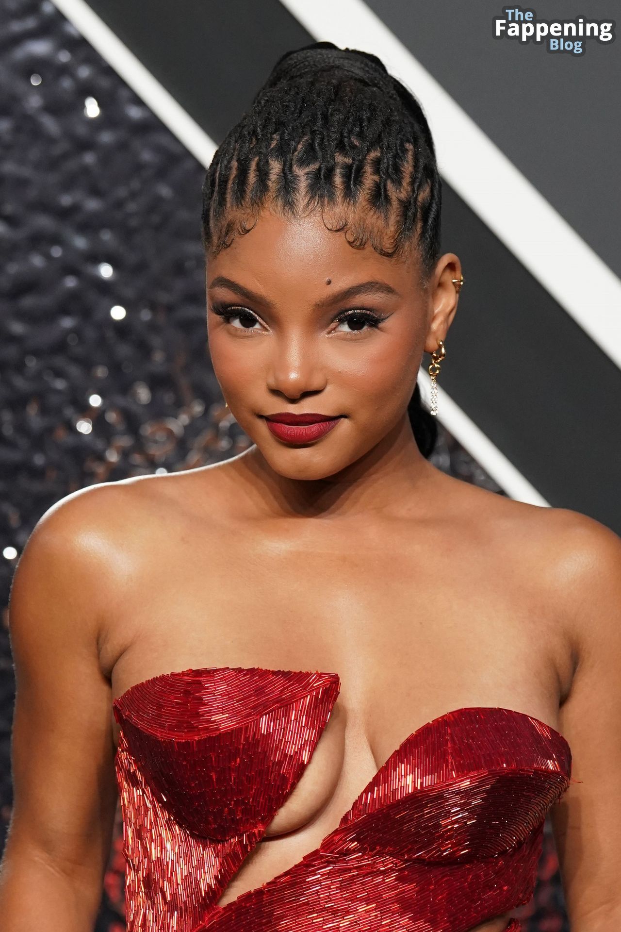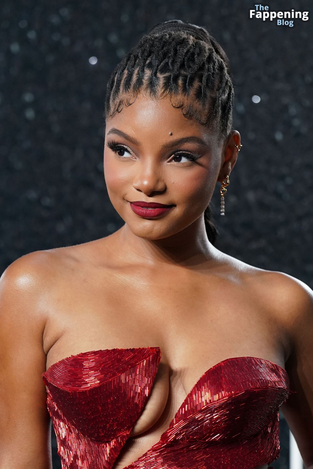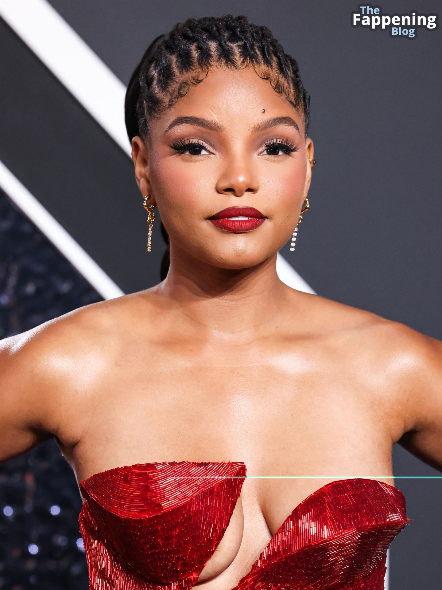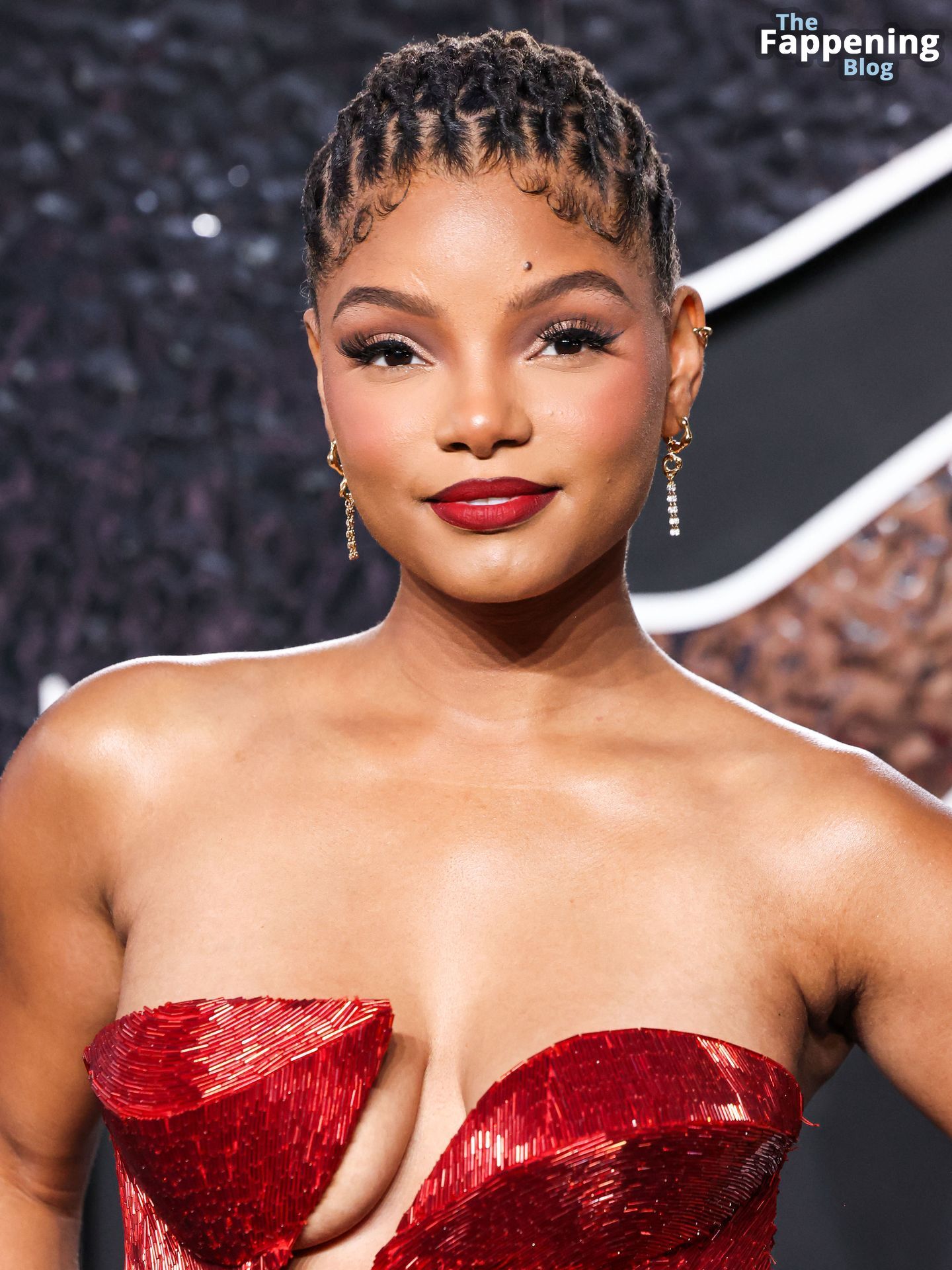 Halle Bailey is seen at the MTV VMAs in NYC, turnin’ heads with her bold, cleavage-baring look. Peep her outfit and that revealing style.