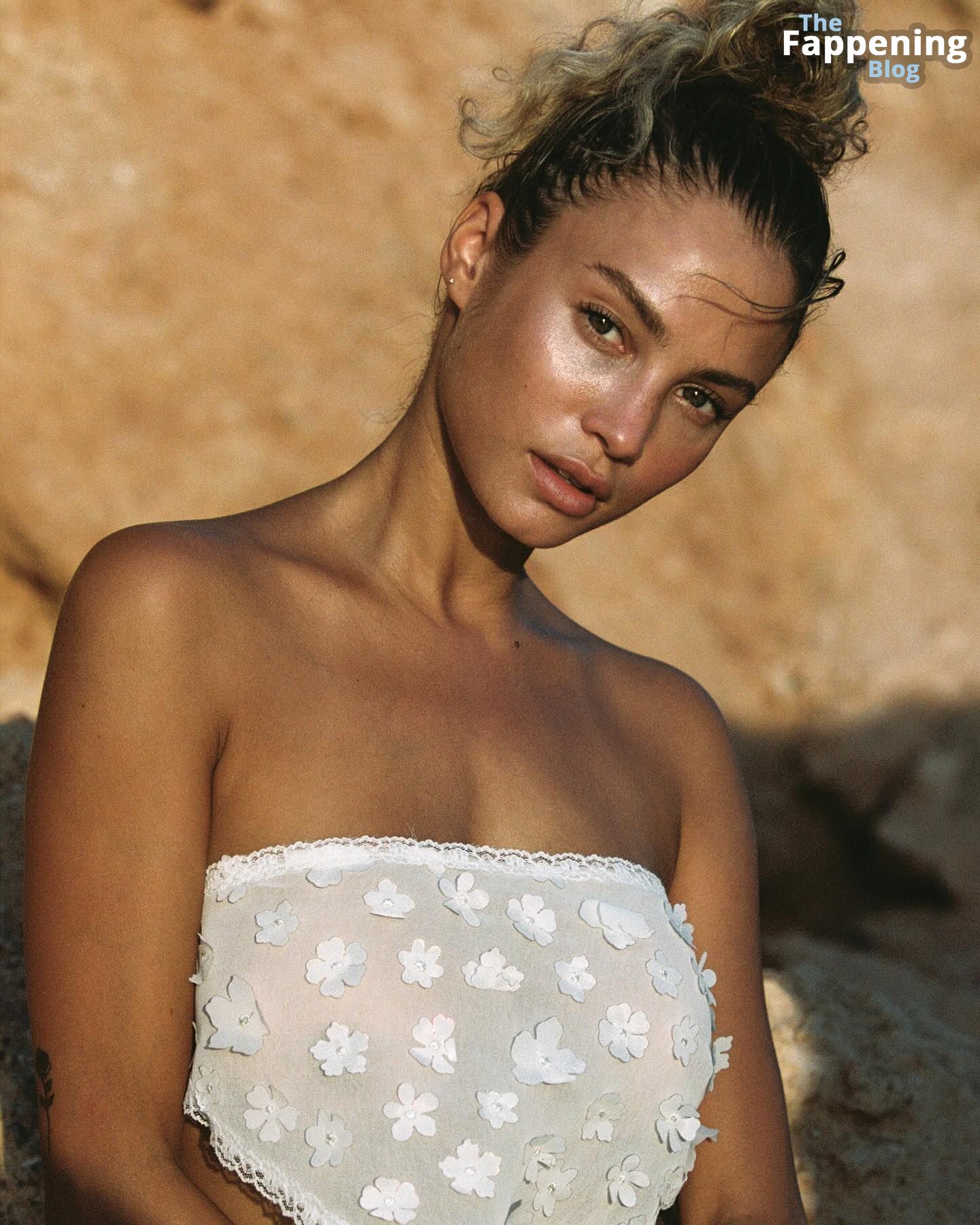 Rose Bertram is showing off her bare tits and rocking her sexy figure in a fresh beach photoshoot in Ibiza.