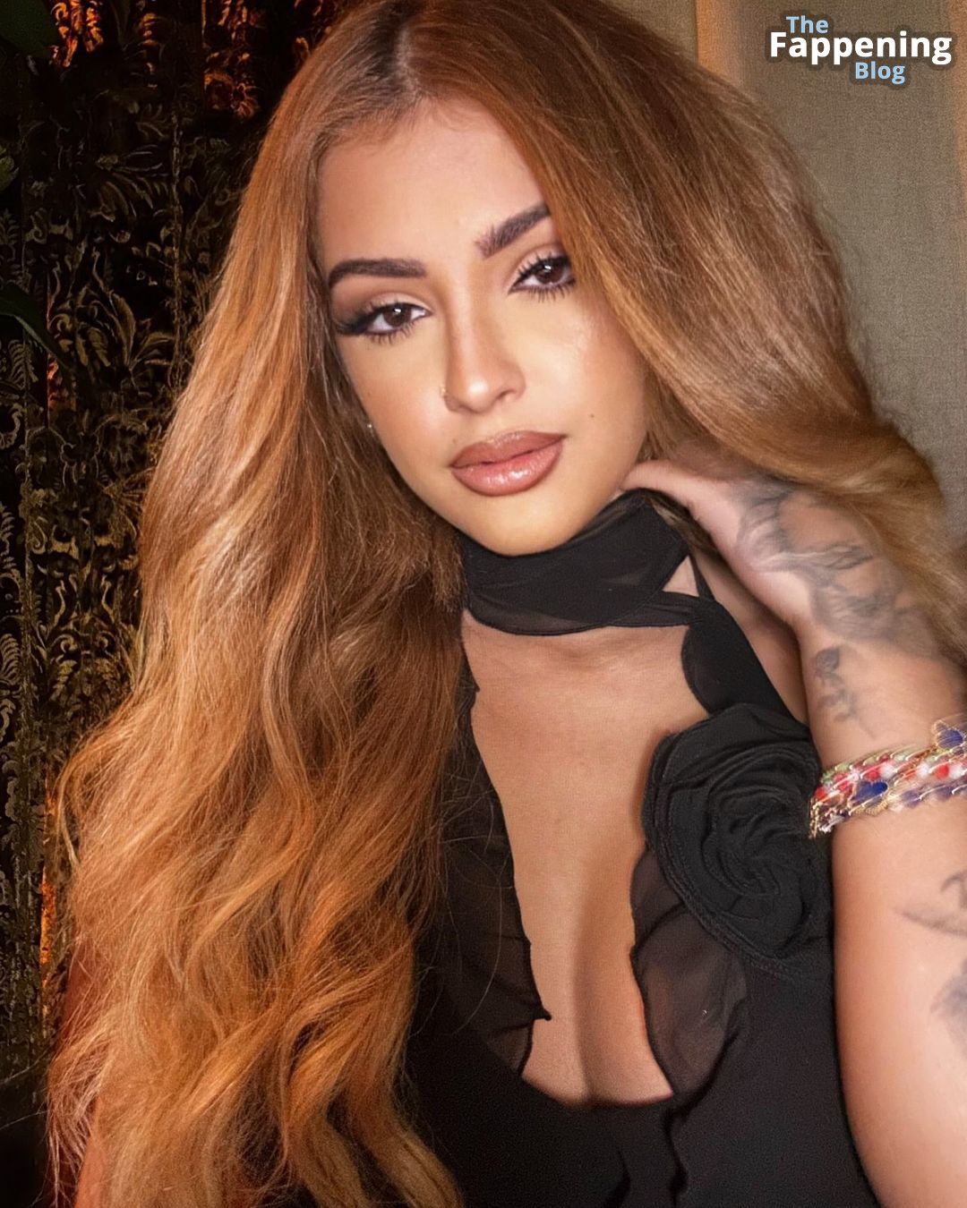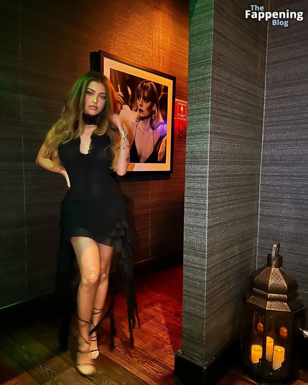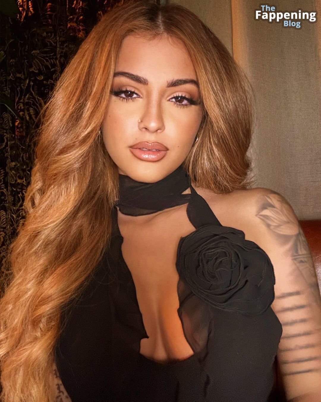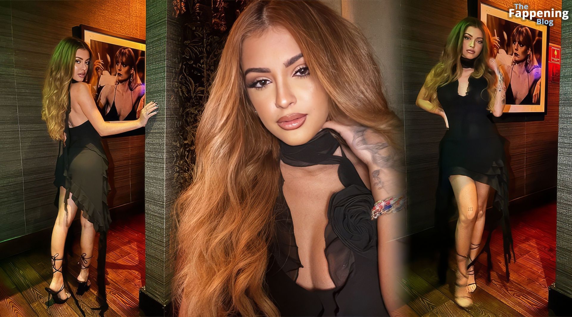 Malu Trevejo is in a new social media shoot, posin’ in a smokin’ black dress, showing off her legs and cleavage.