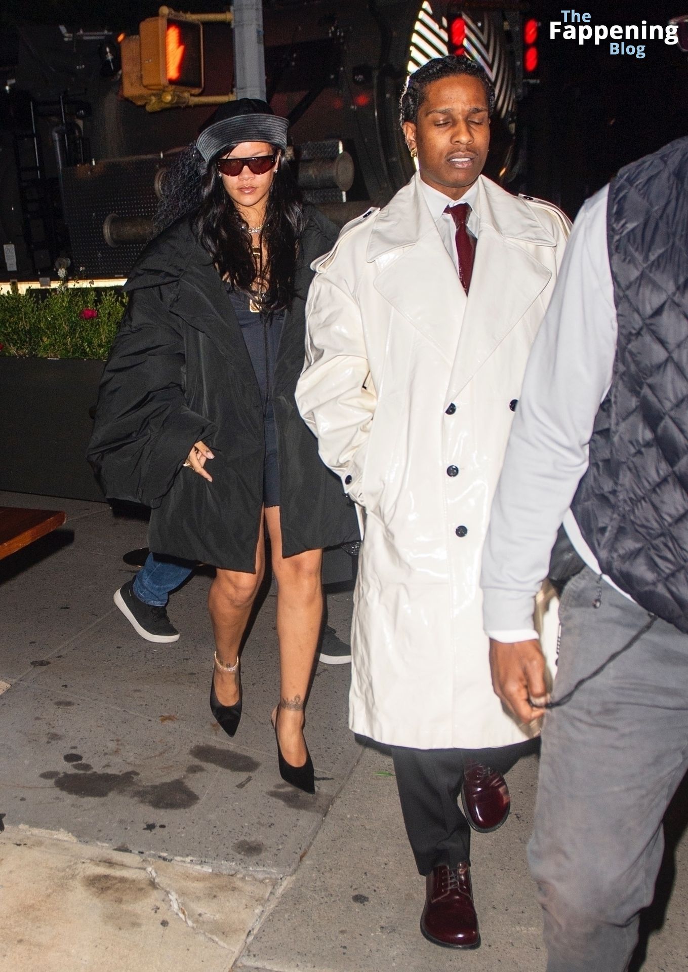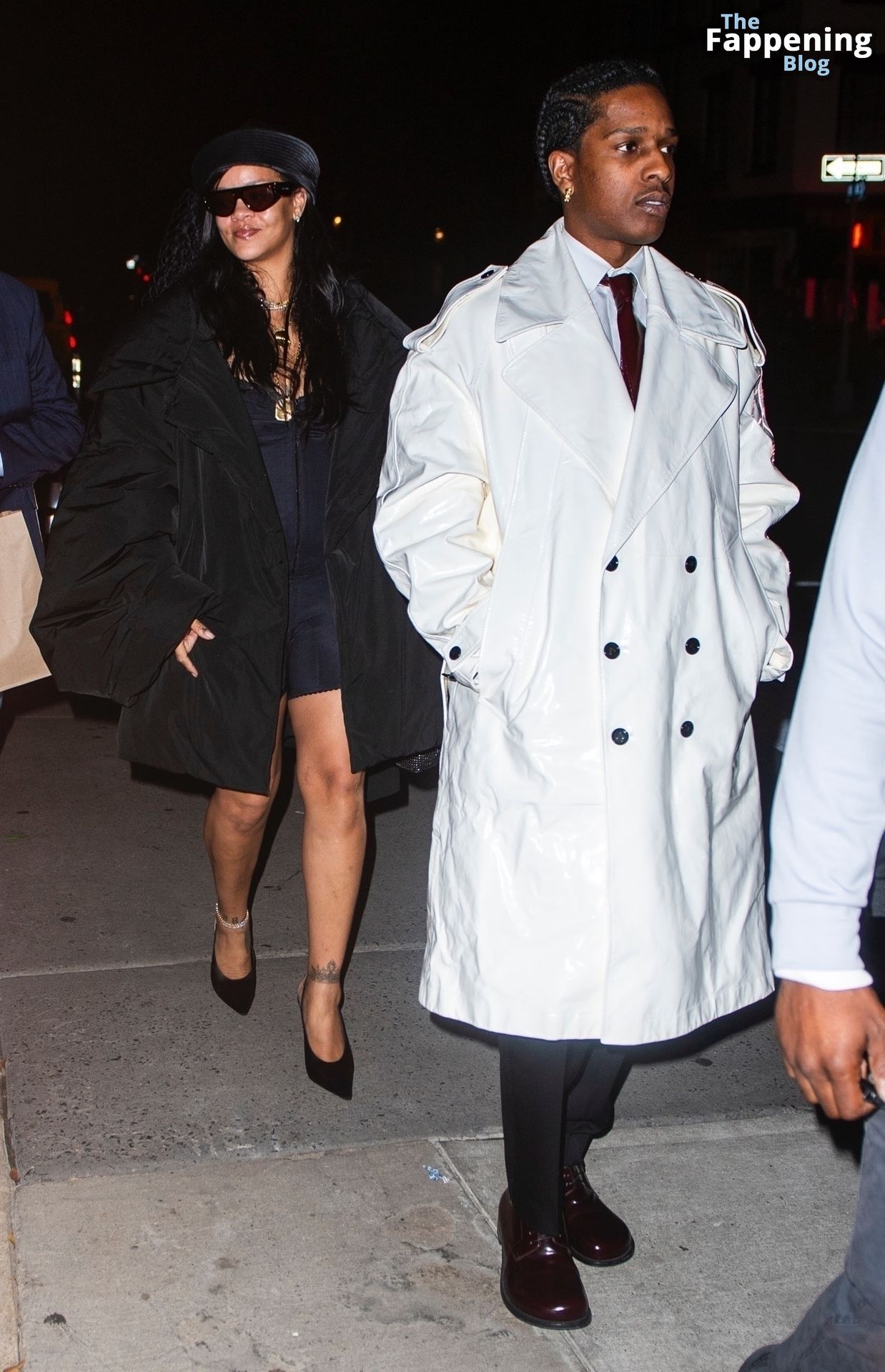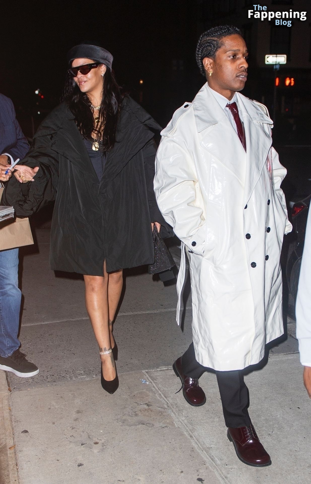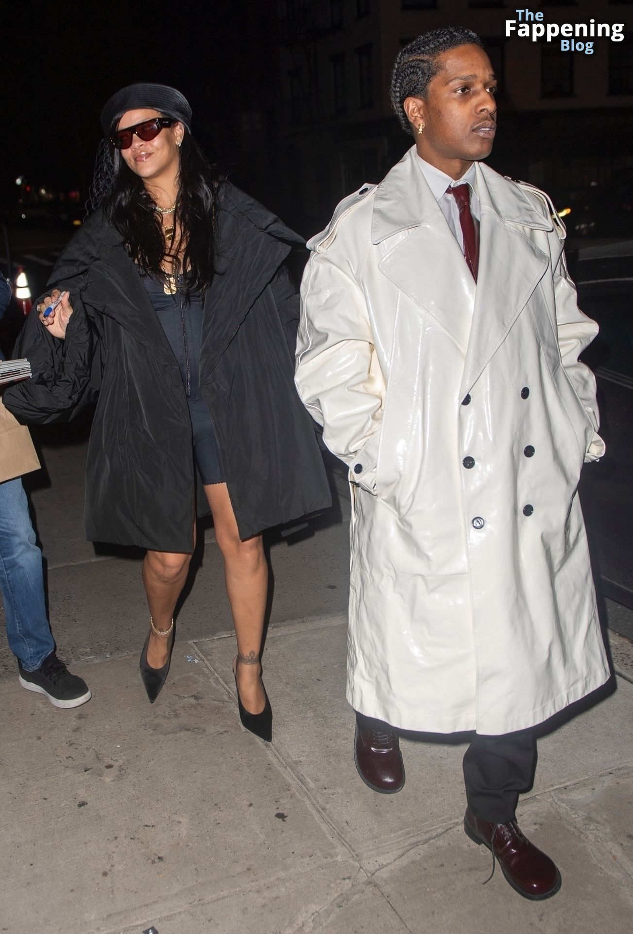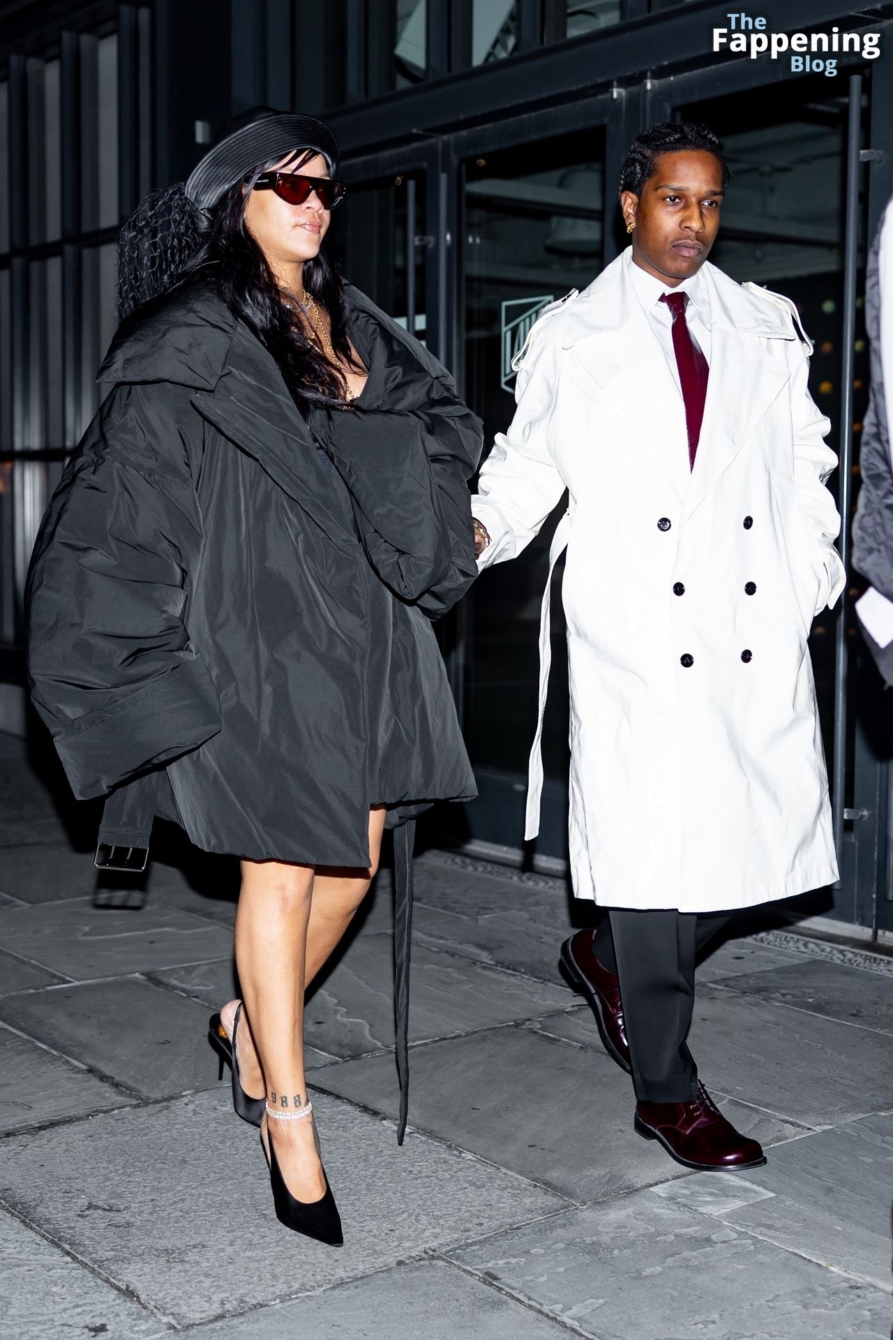 Singer Rihanna wears an undergarment and a coat as she and A$AP Rocky step out for date night in NYC as the duo celebrates his birthday.