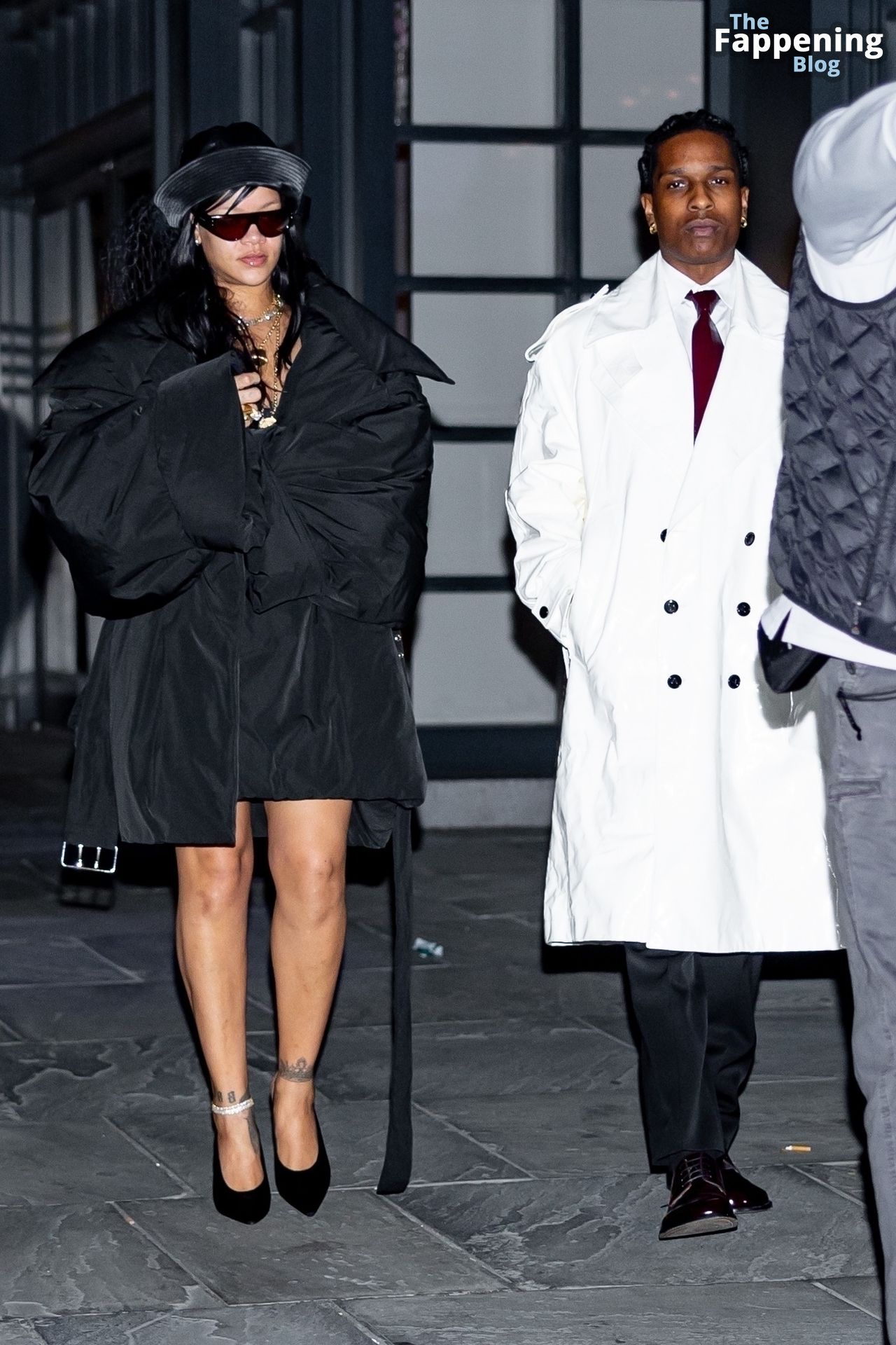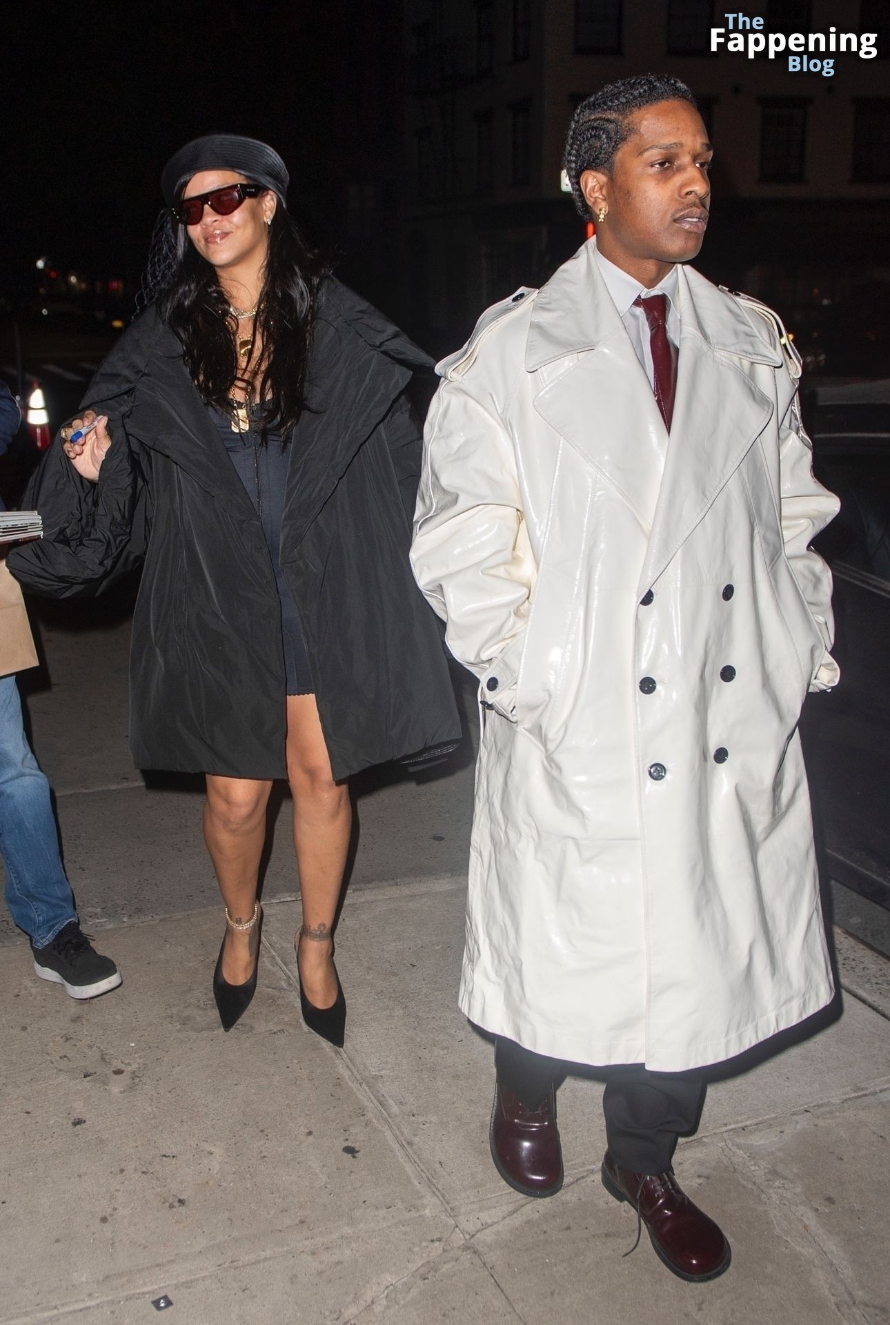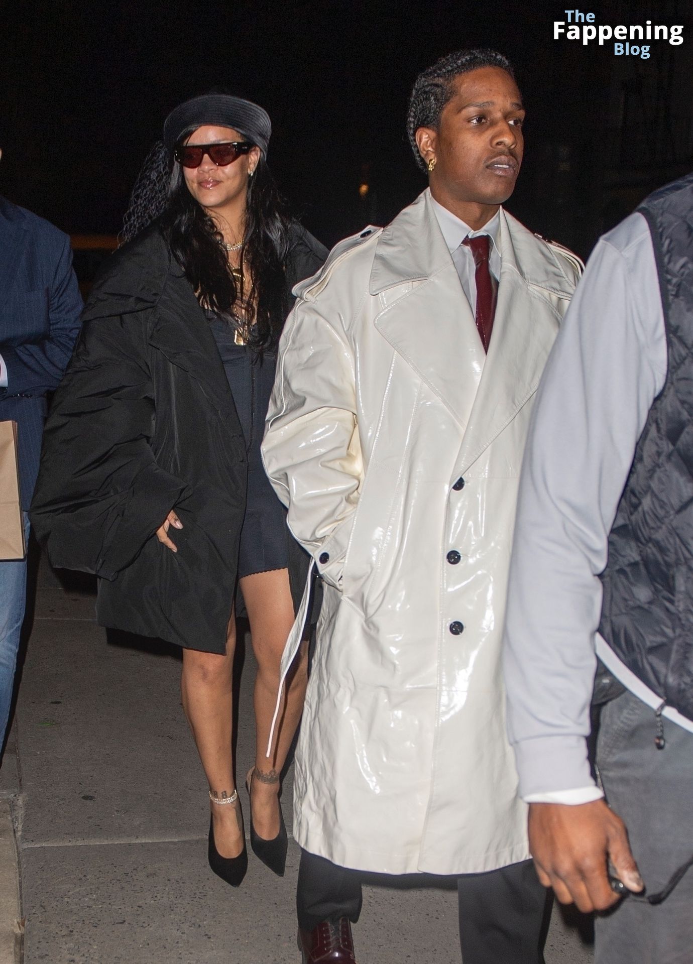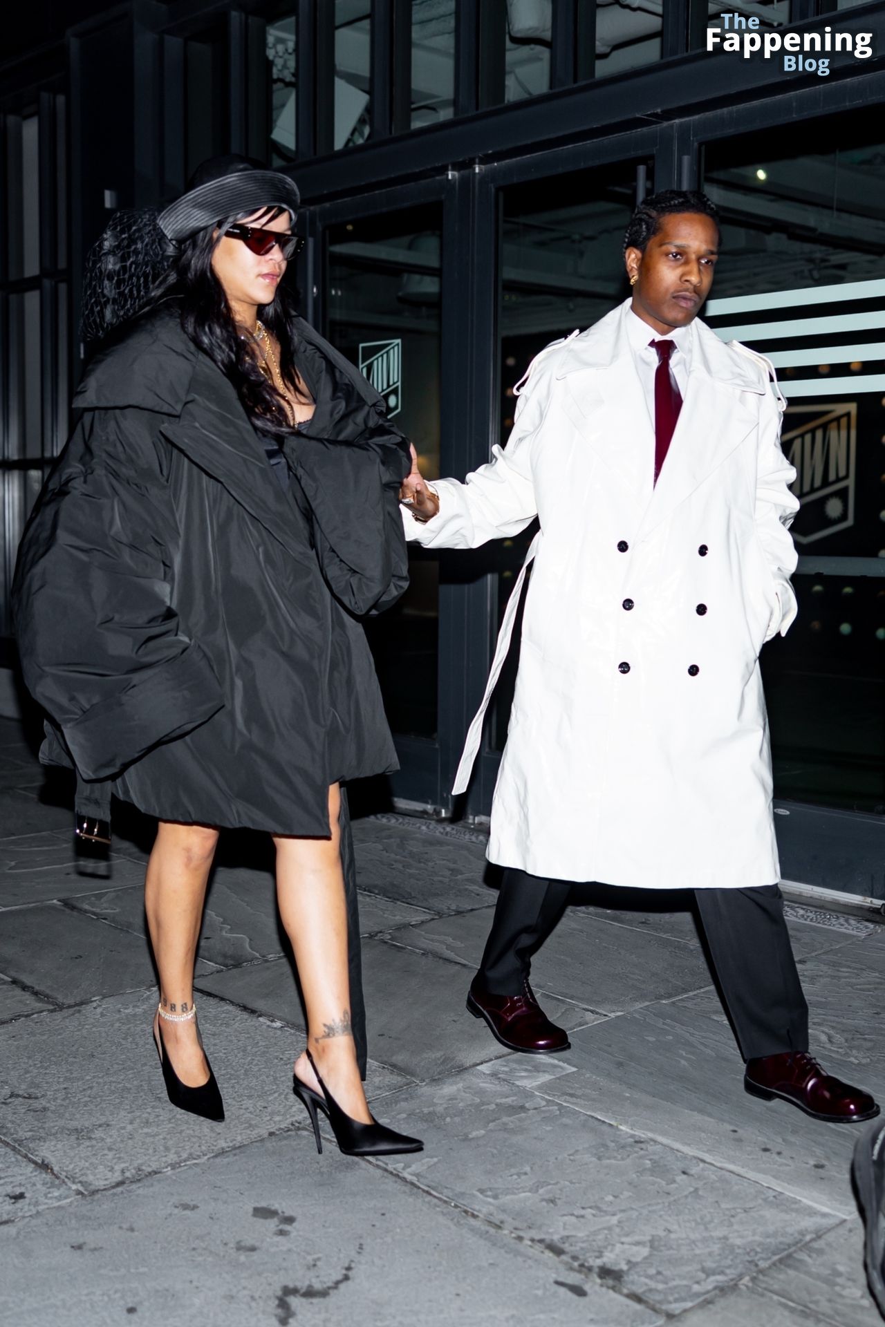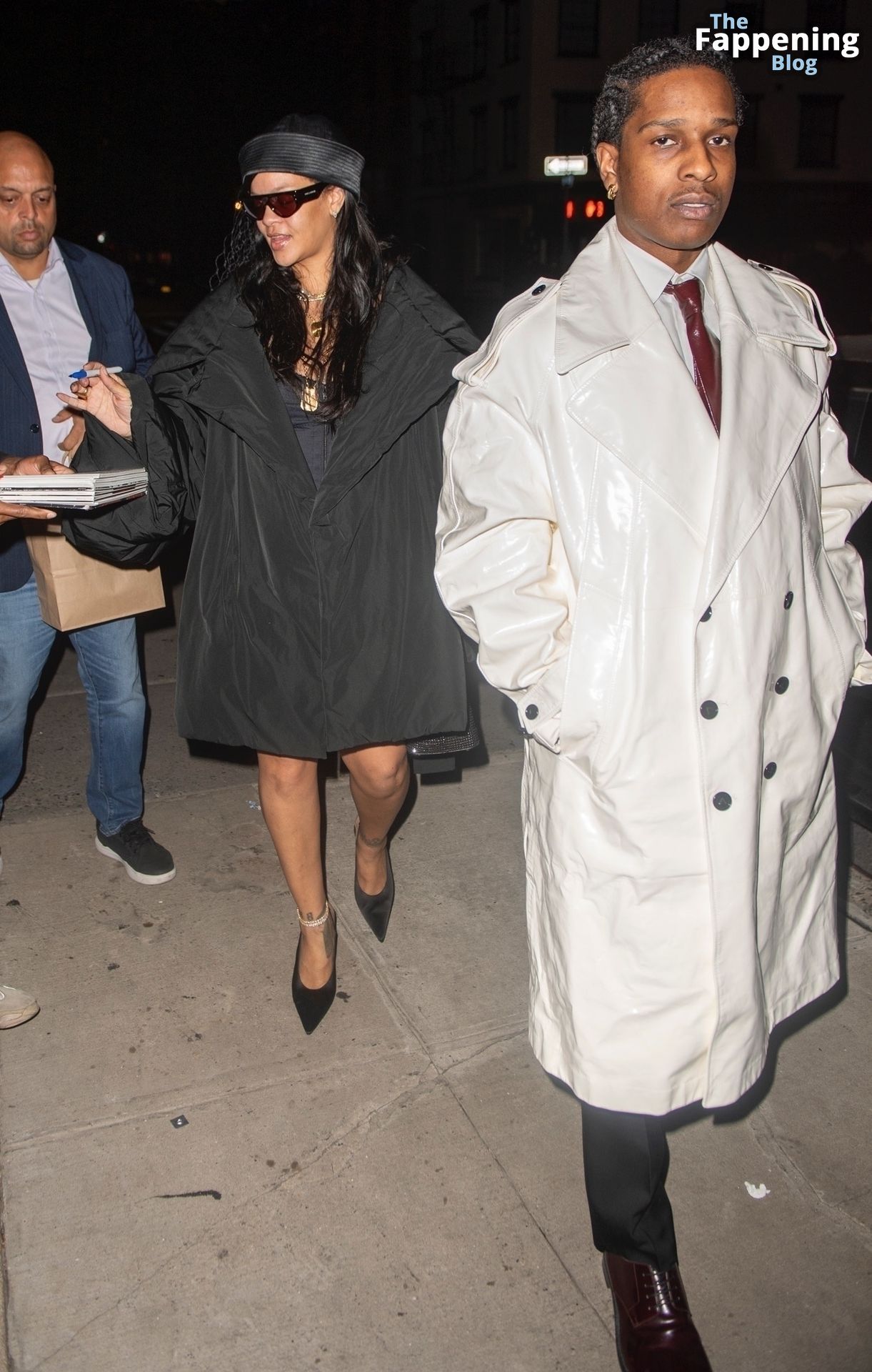 Singer Rihanna wears an undergarment and a coat as she and A$AP Rocky step out for date night in NYC as the duo celebrates his birthday.