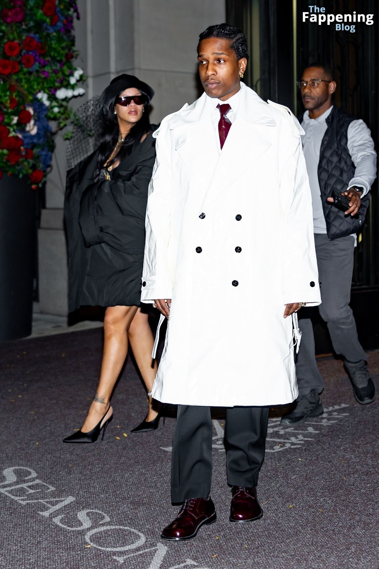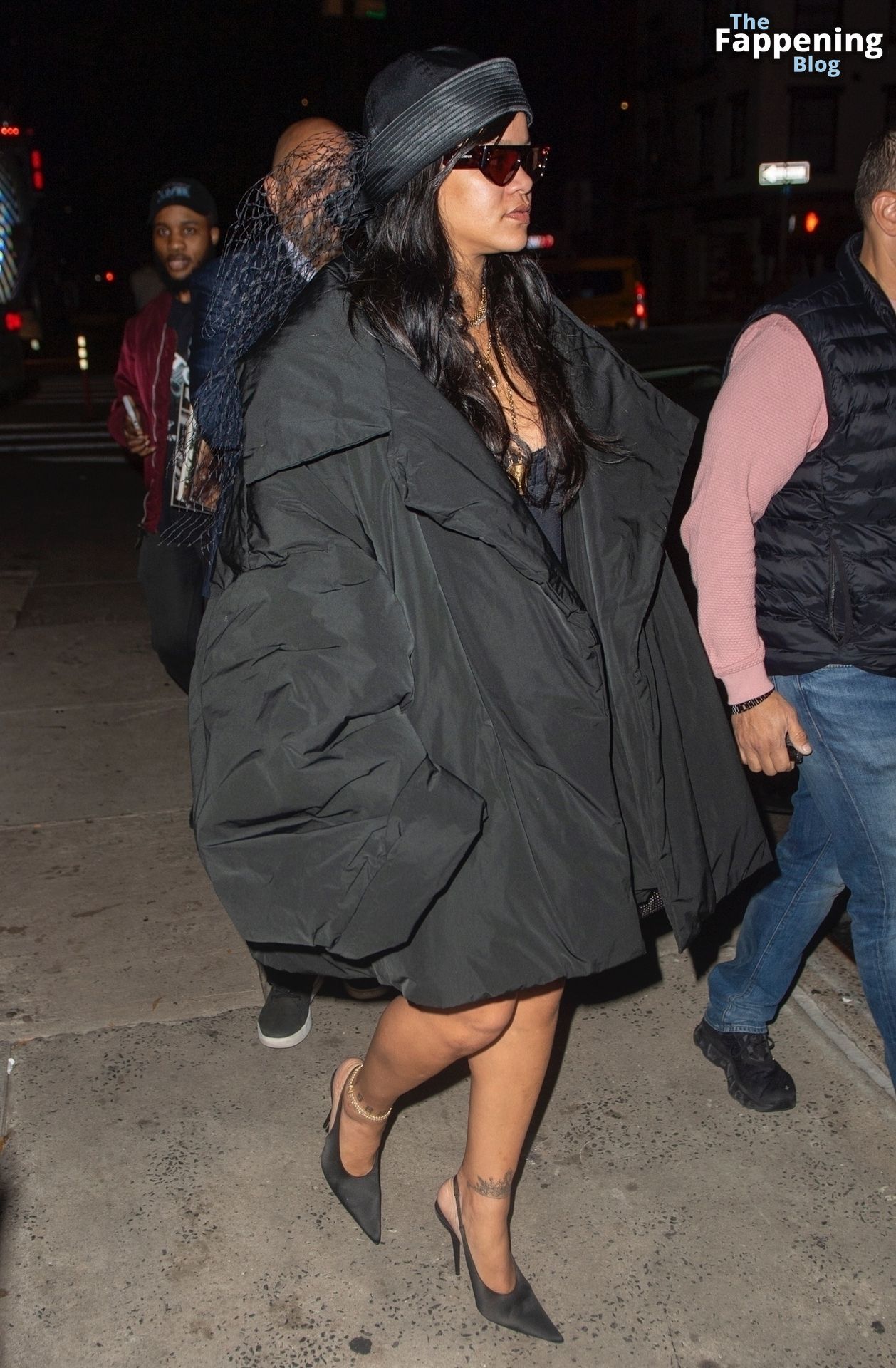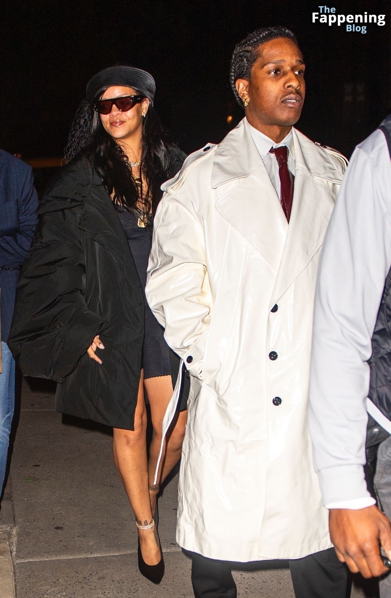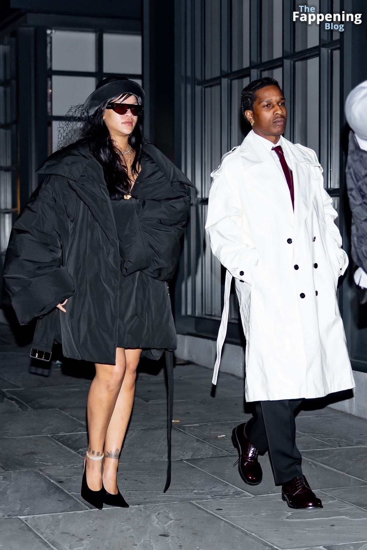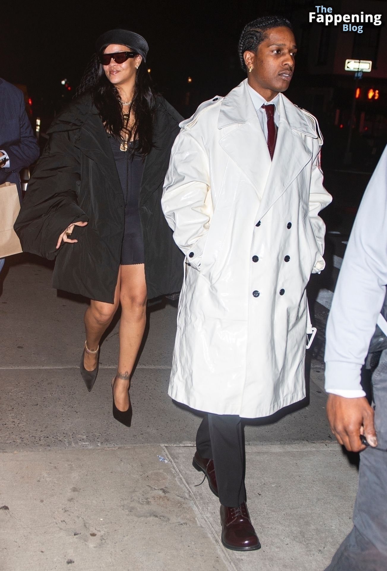 Singer Rihanna wears an undergarment and a coat as she and A$AP Rocky step out for date night in NYC as the duo celebrates his birthday.