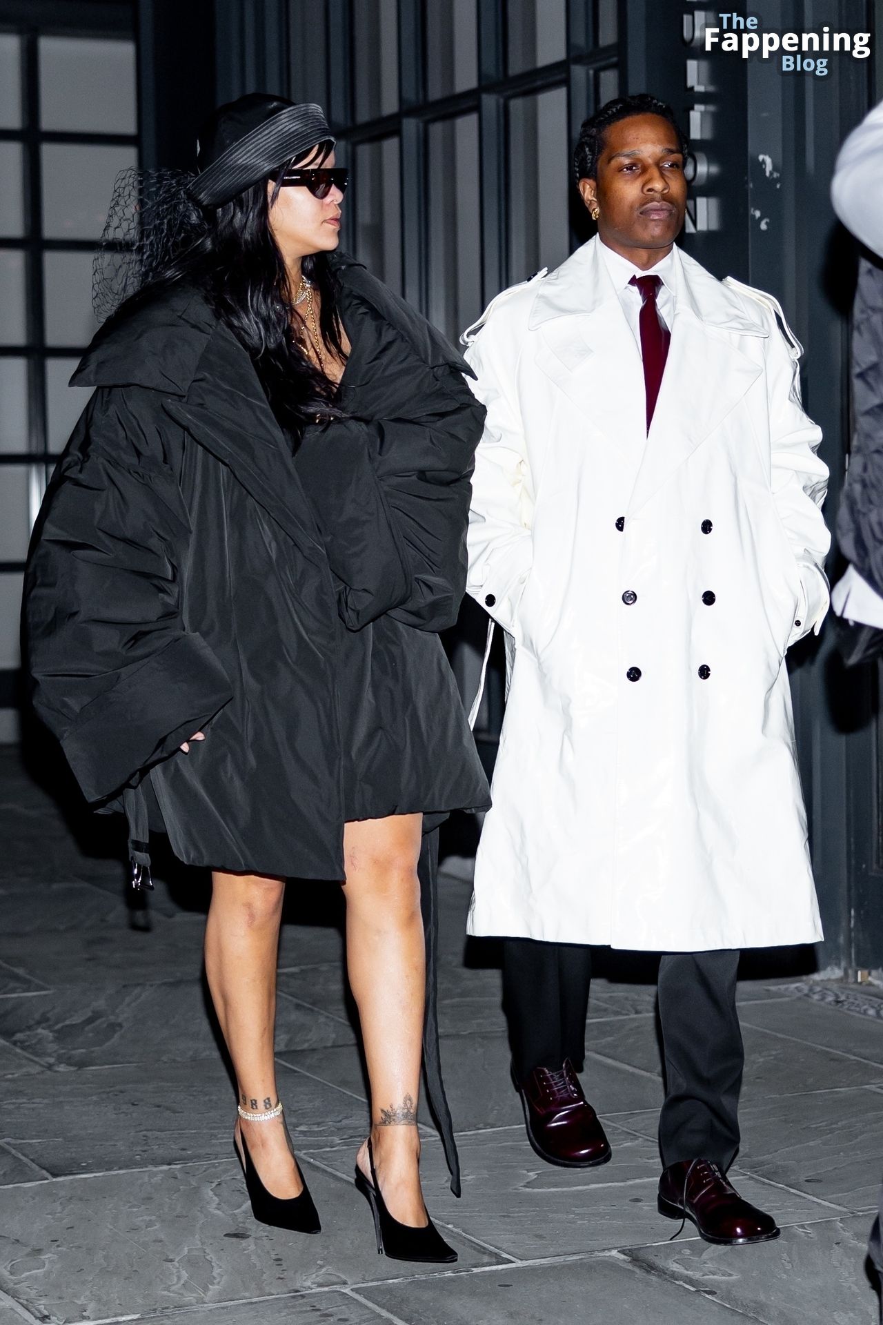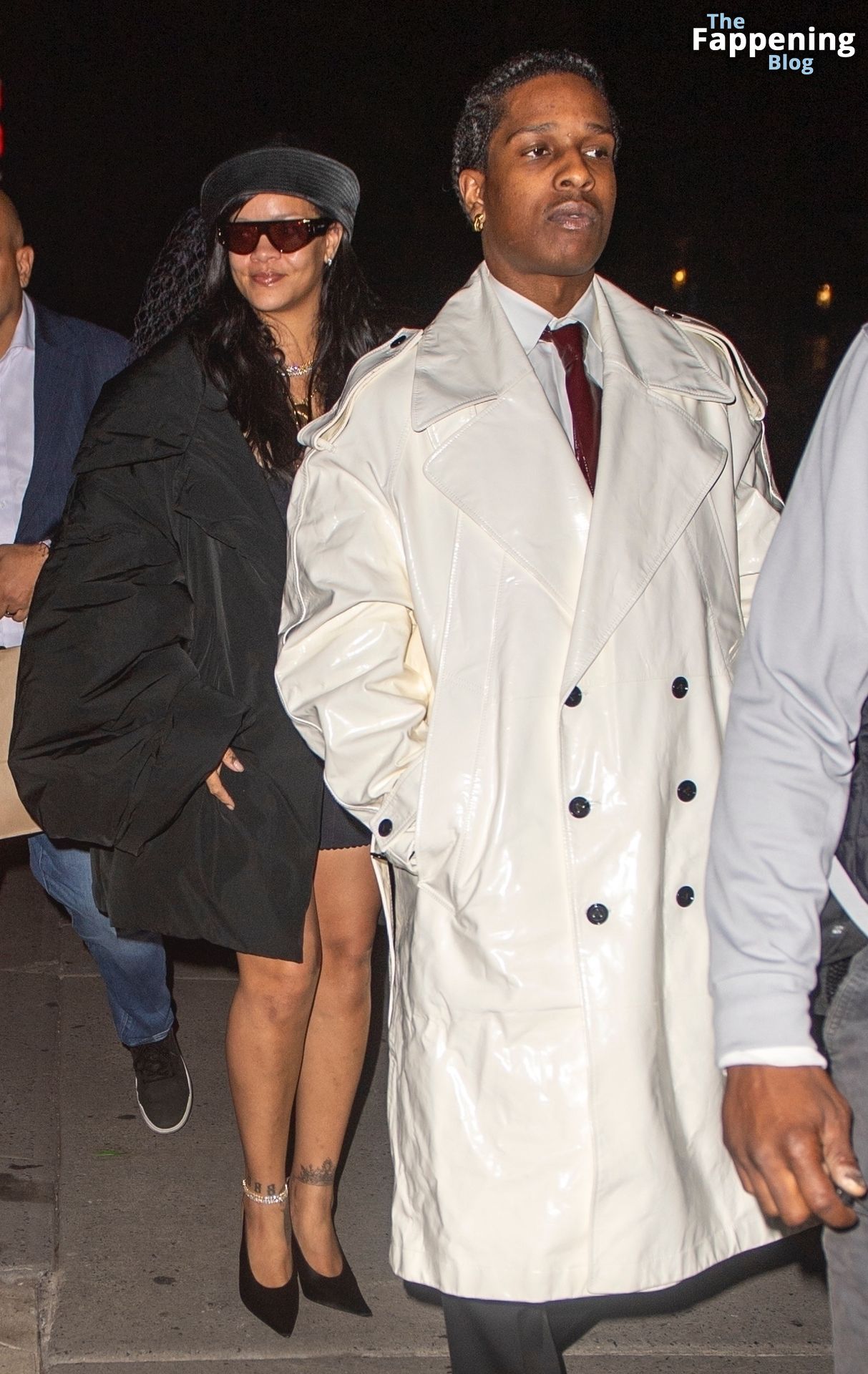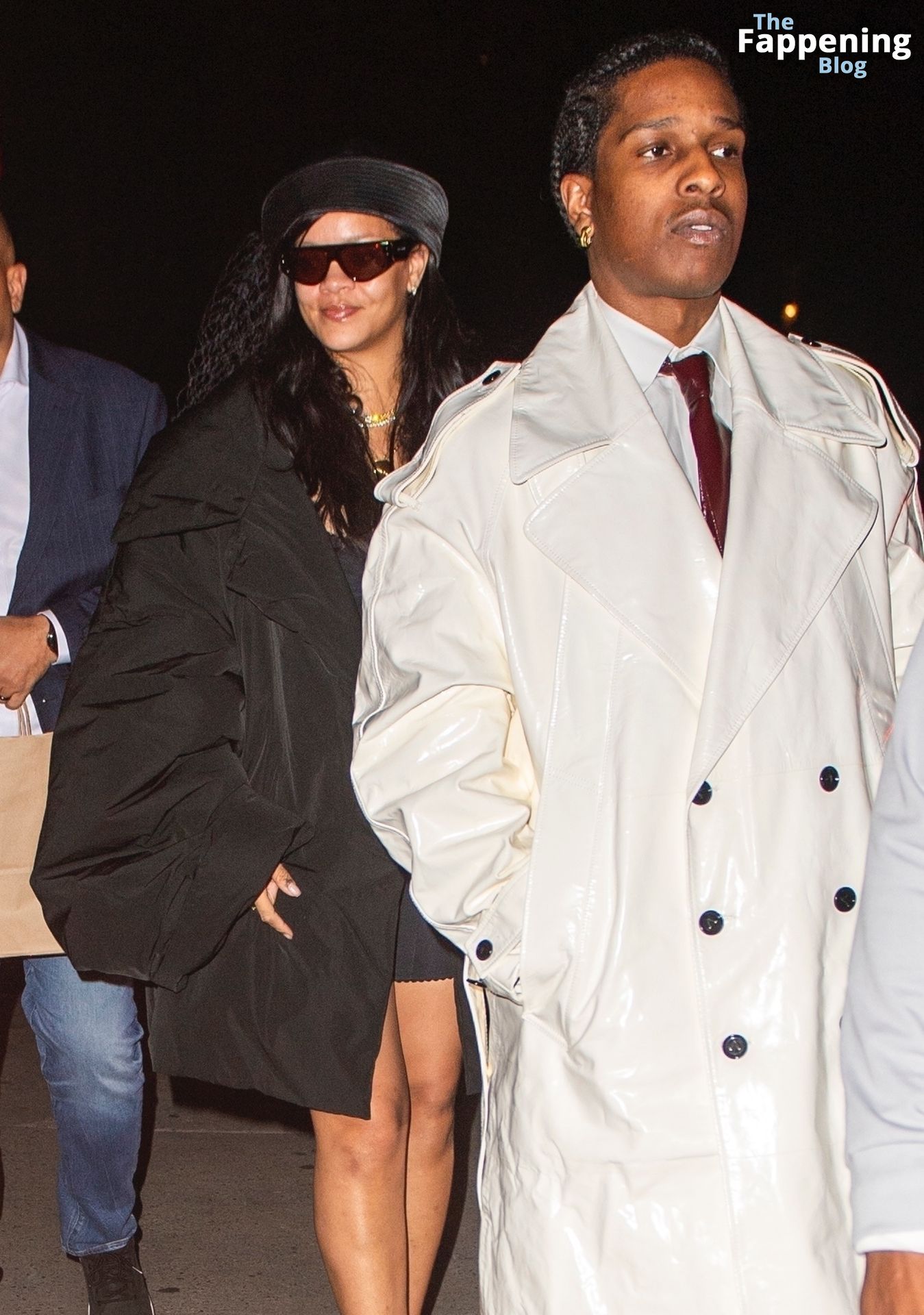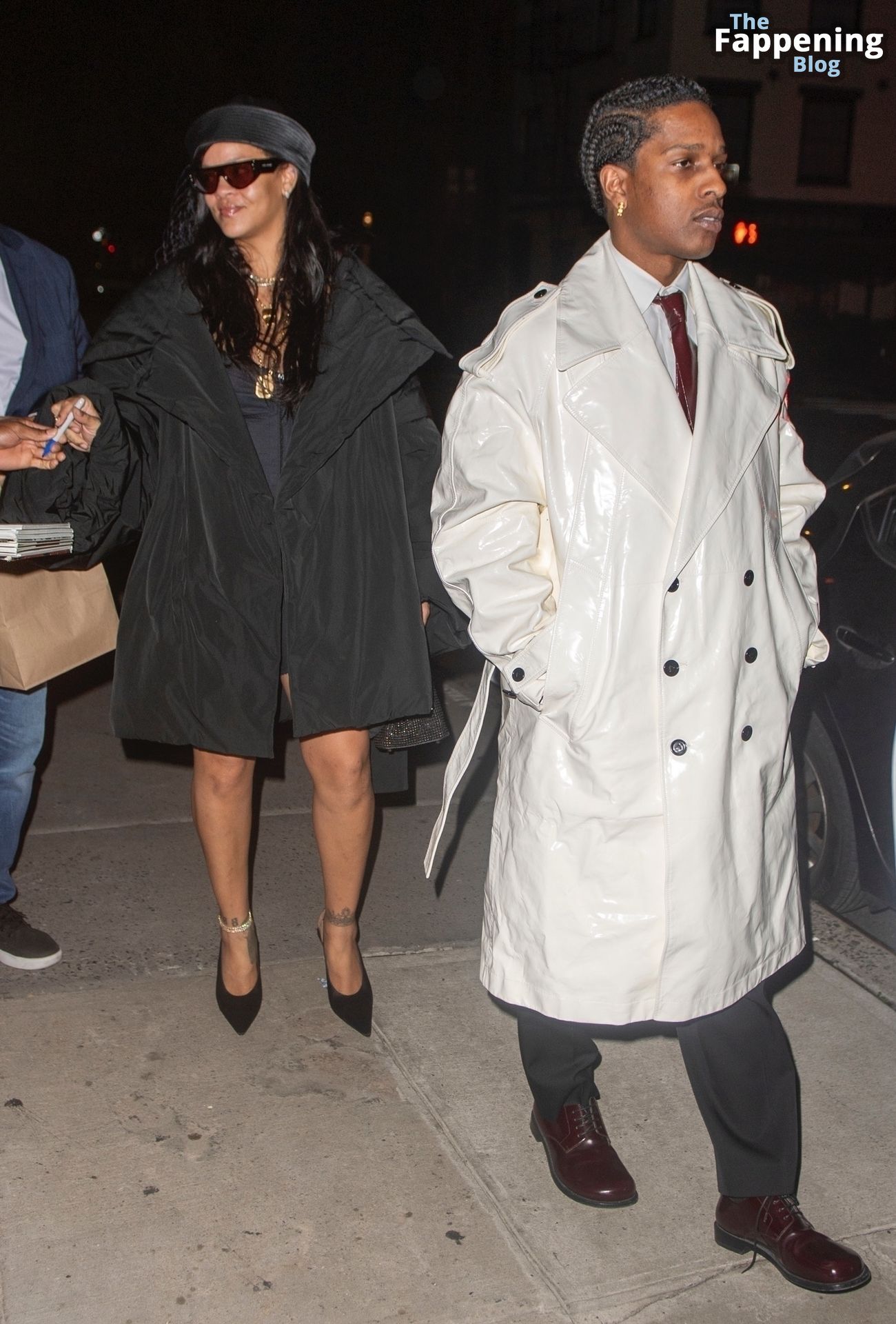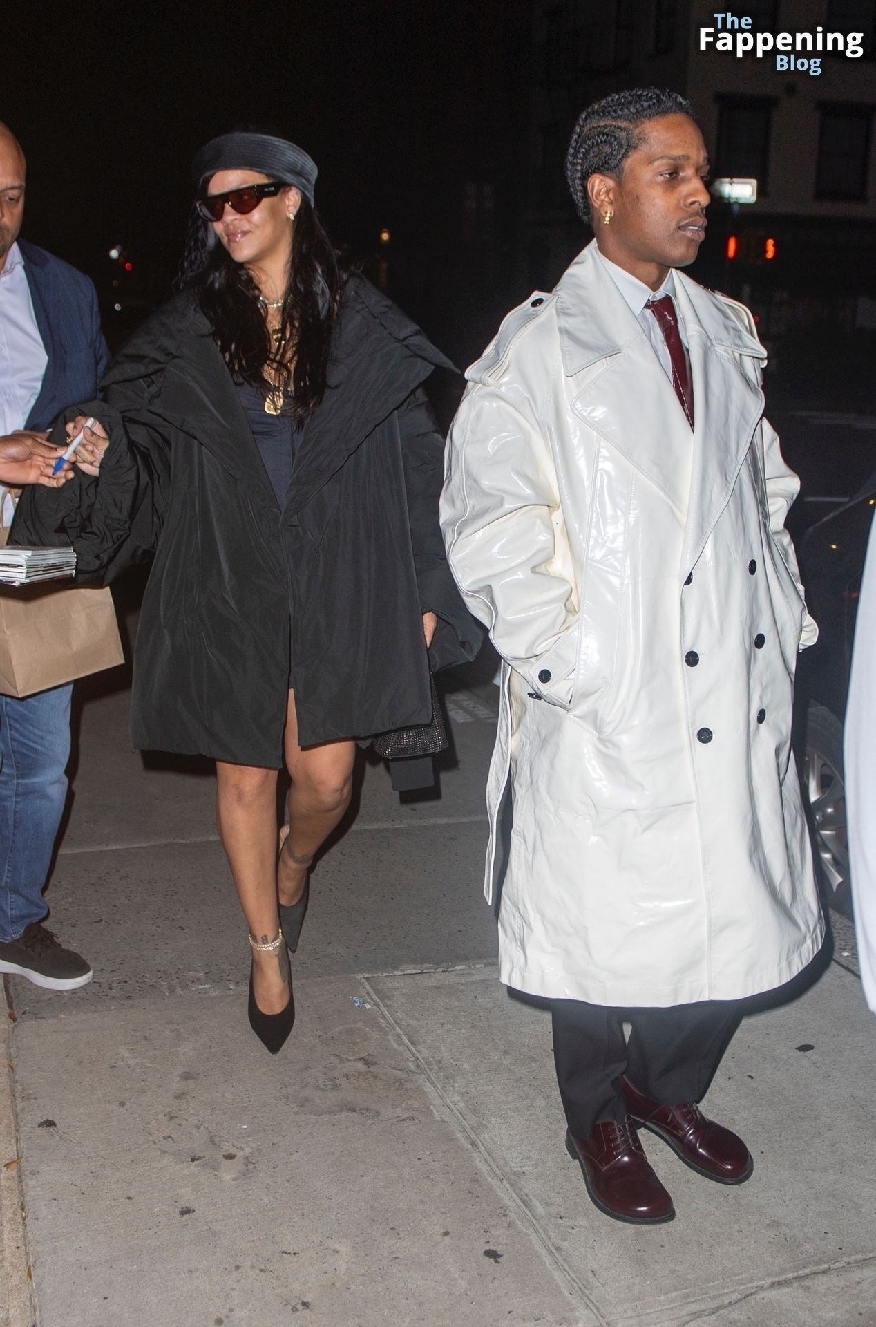 Singer Rihanna wears an undergarment and a coat as she and A$AP Rocky step out for date night in NYC as the duo celebrates his birthday.