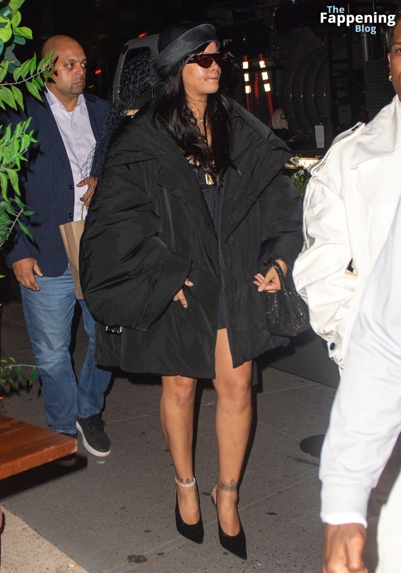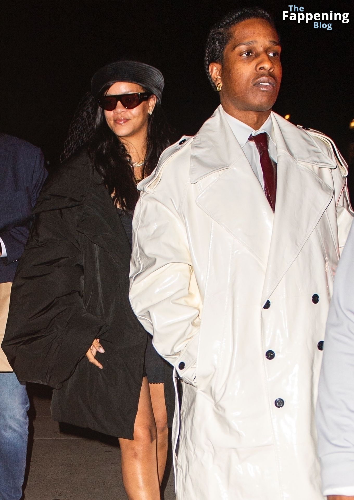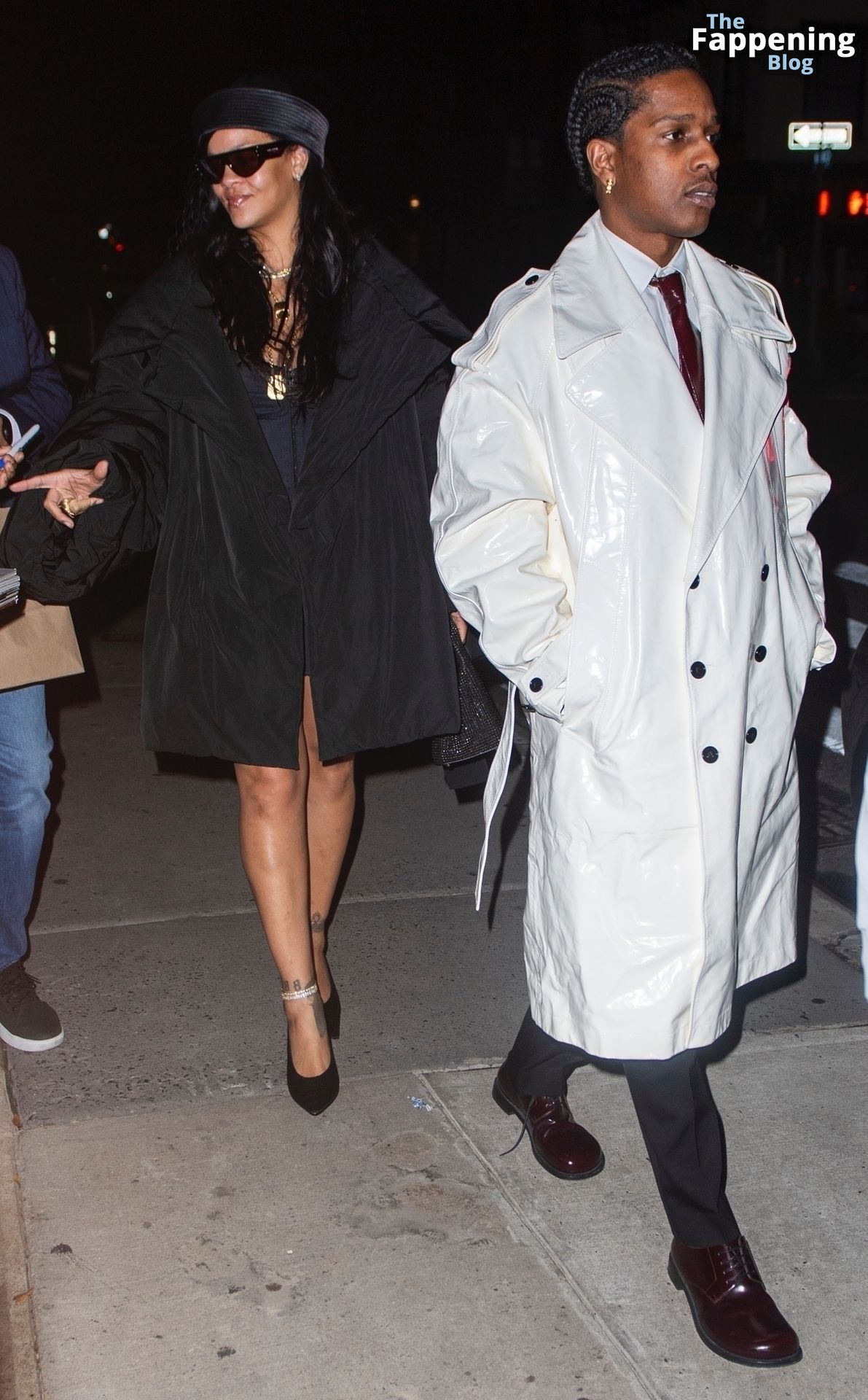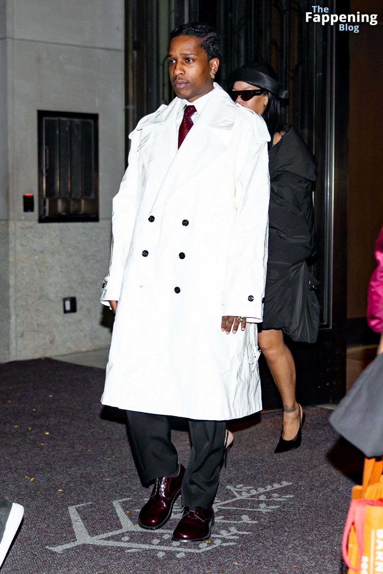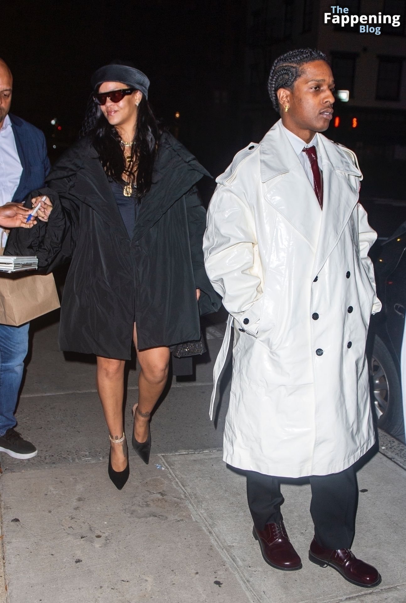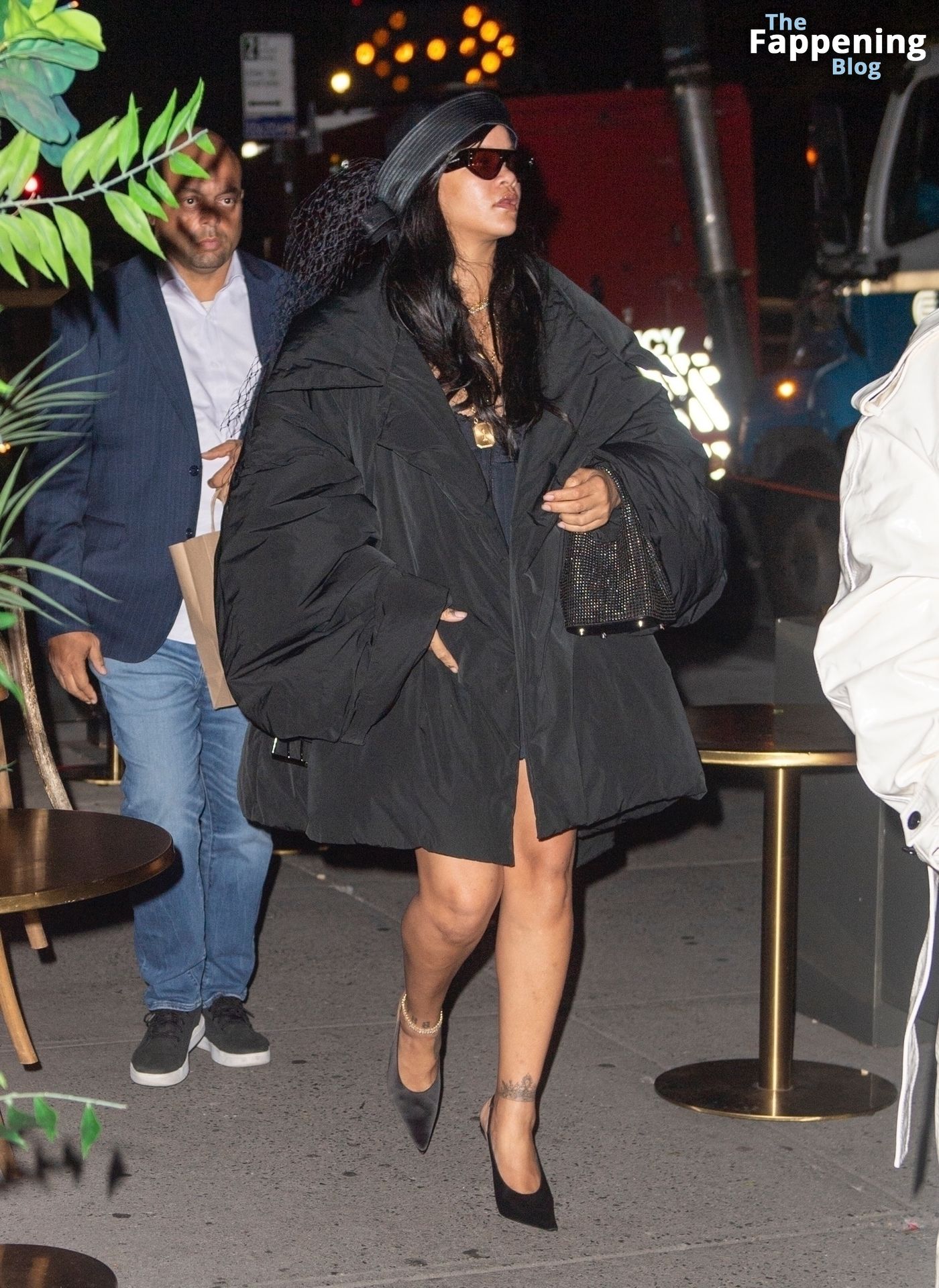 Singer Rihanna wears an undergarment and a coat as she and A$AP Rocky step out for date night in NYC as the duo celebrates his birthday.