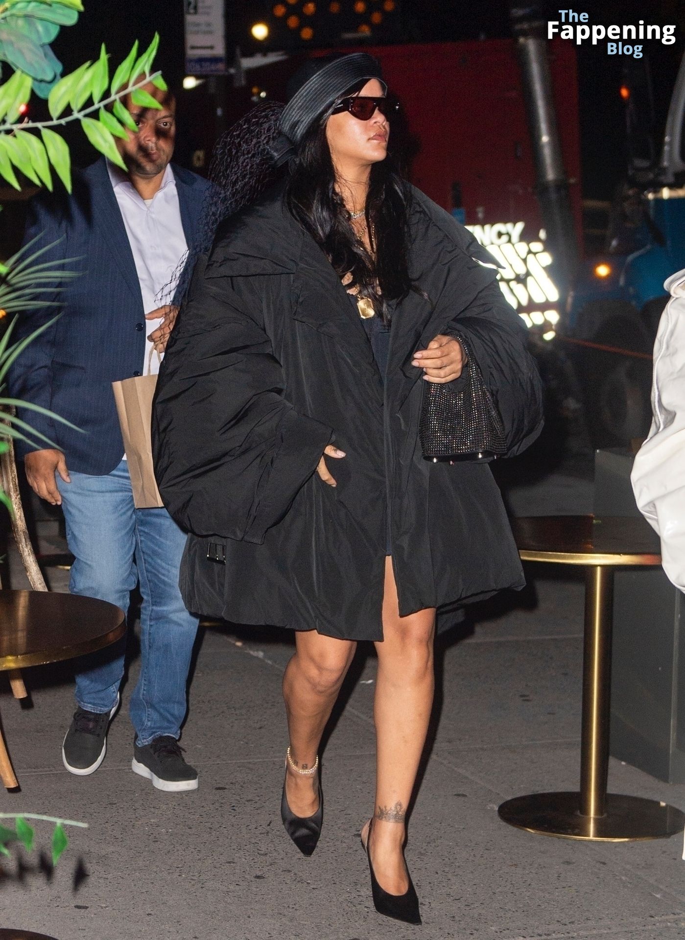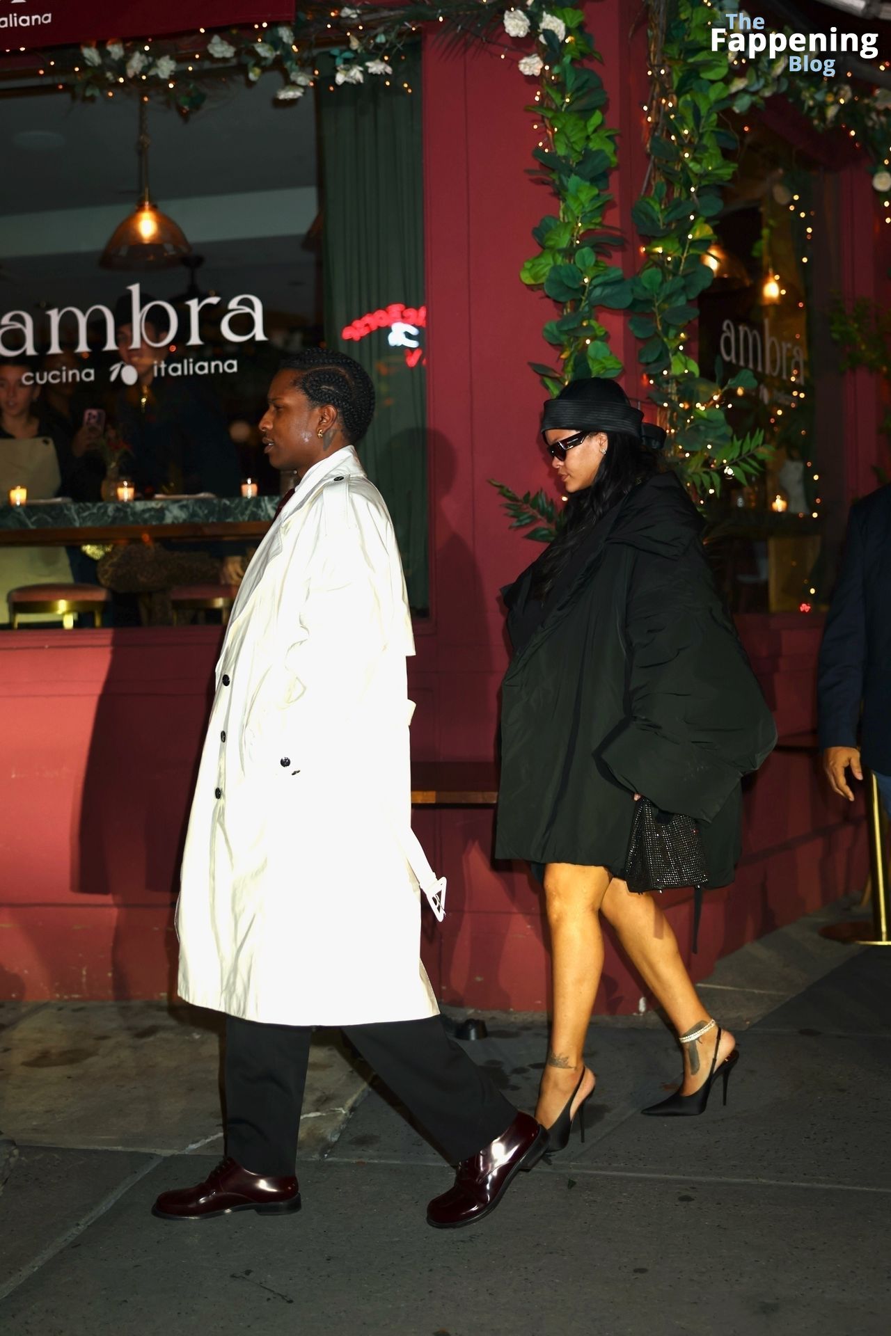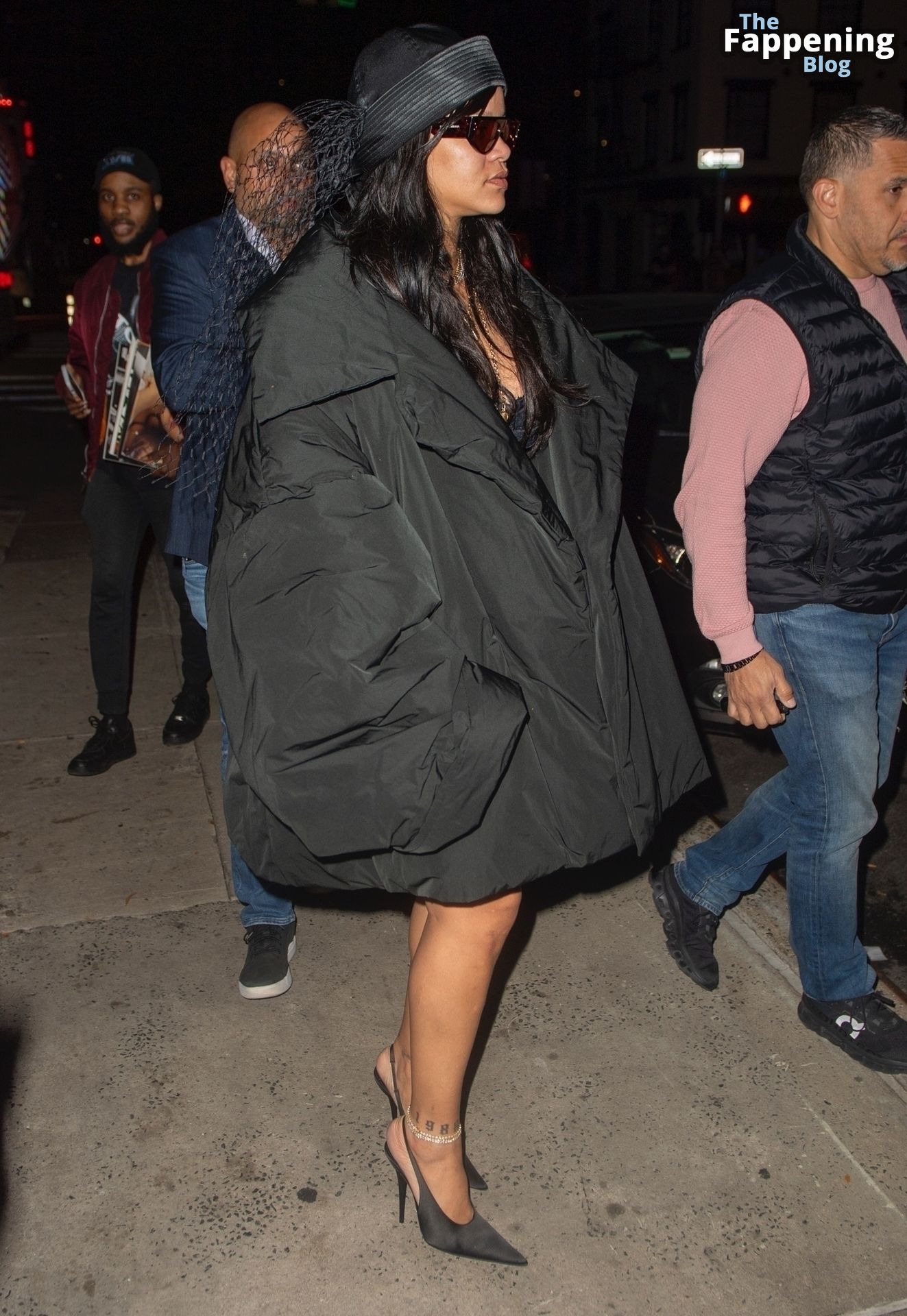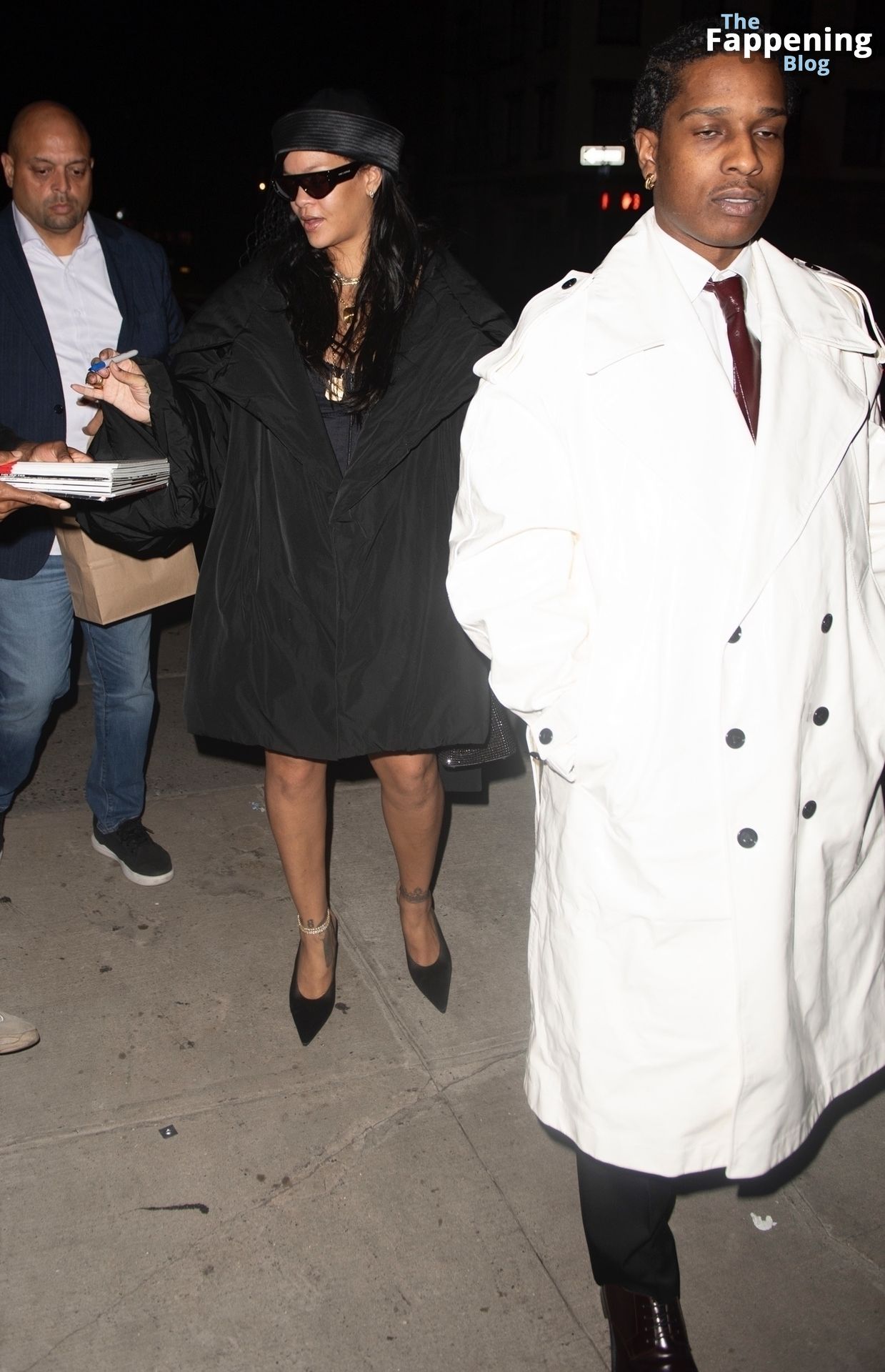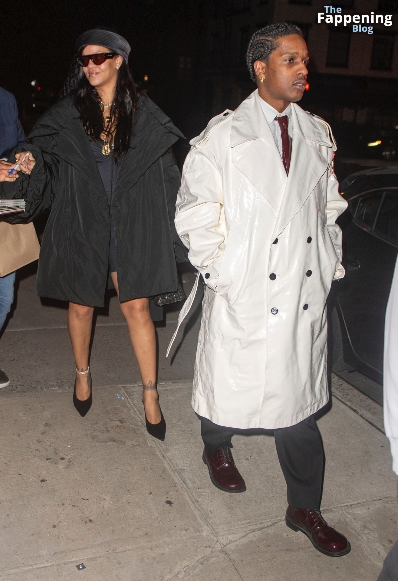 Singer Rihanna wears an undergarment and a coat as she and A$AP Rocky step out for date night in NYC as the duo celebrates his birthday.