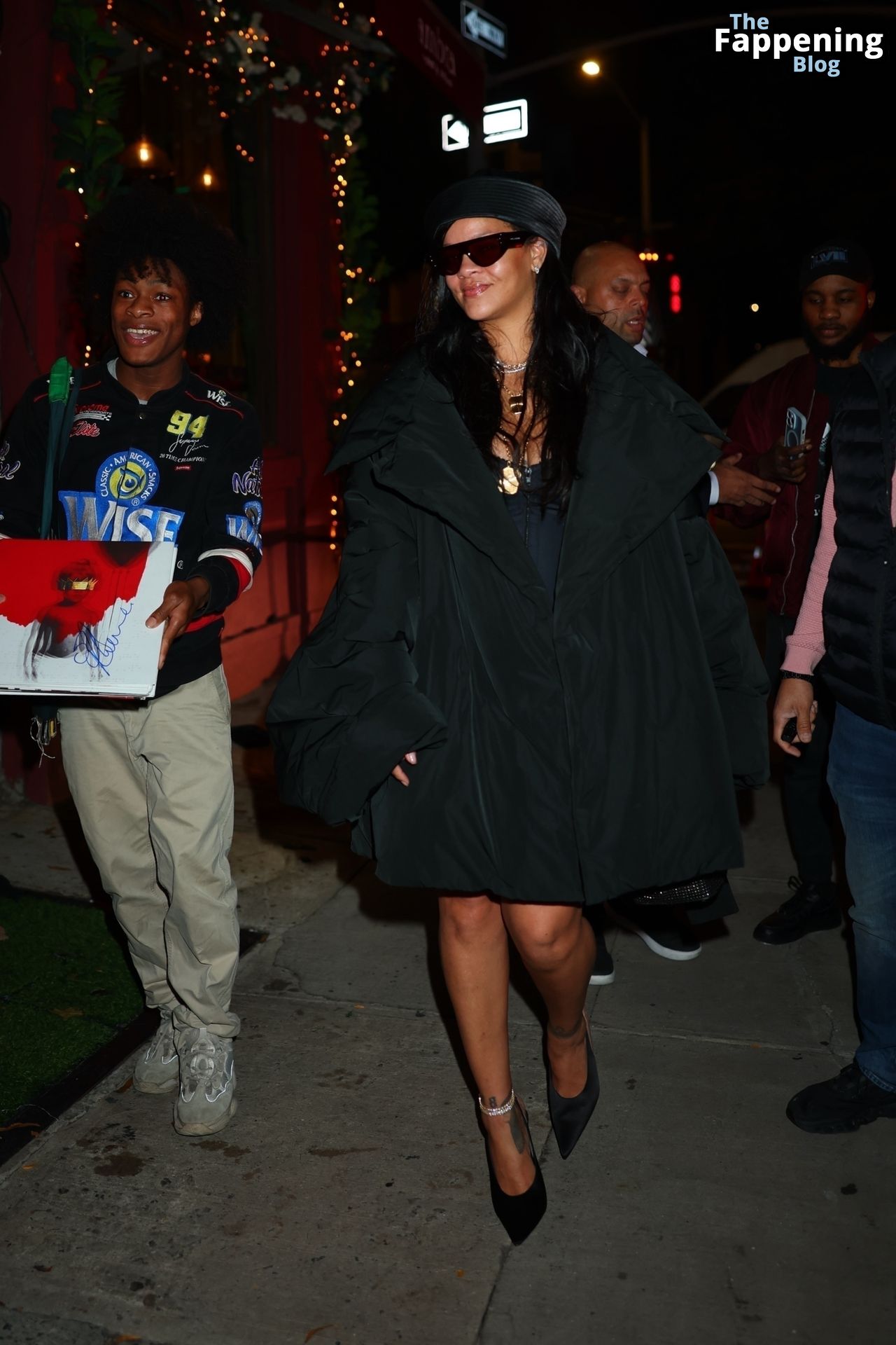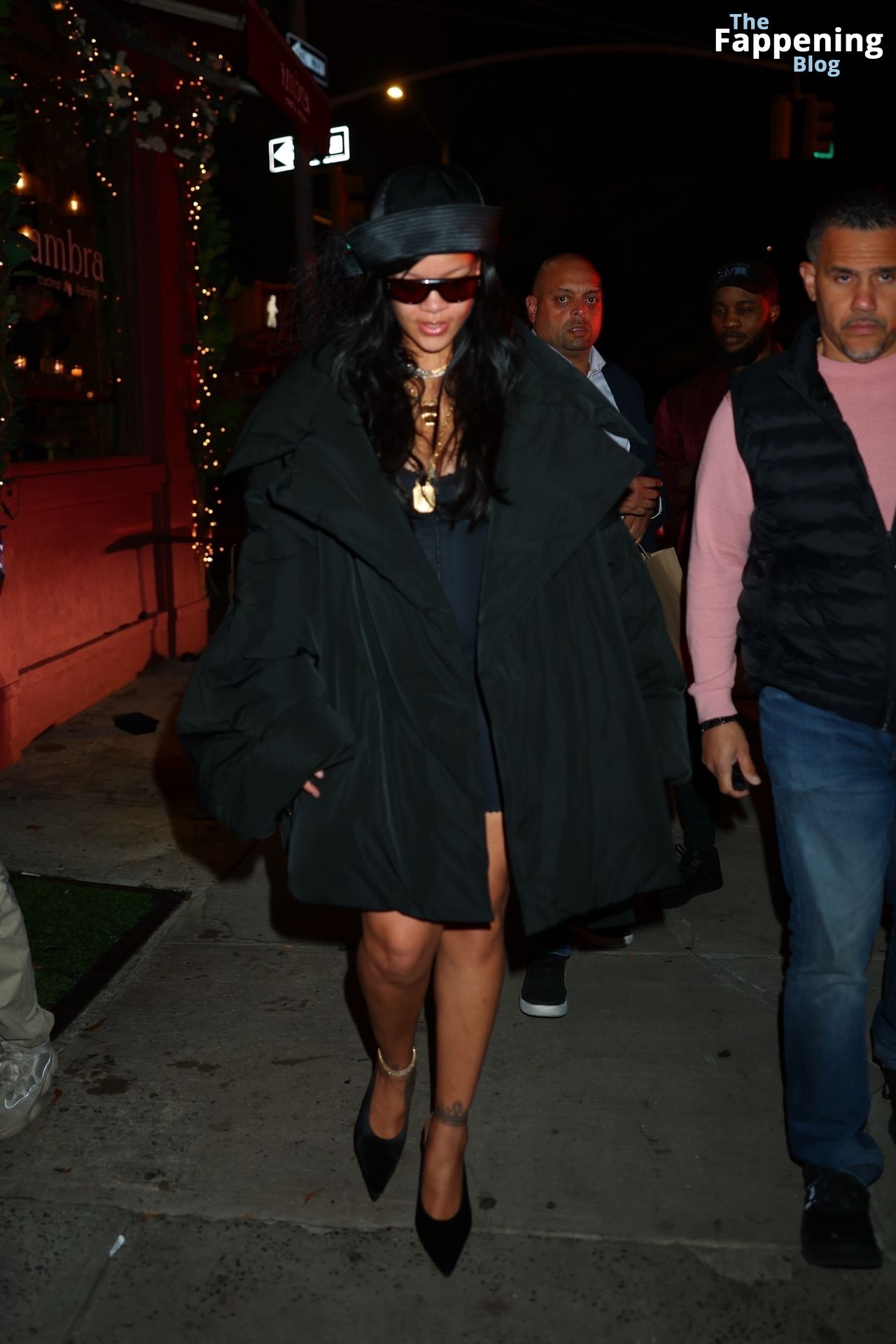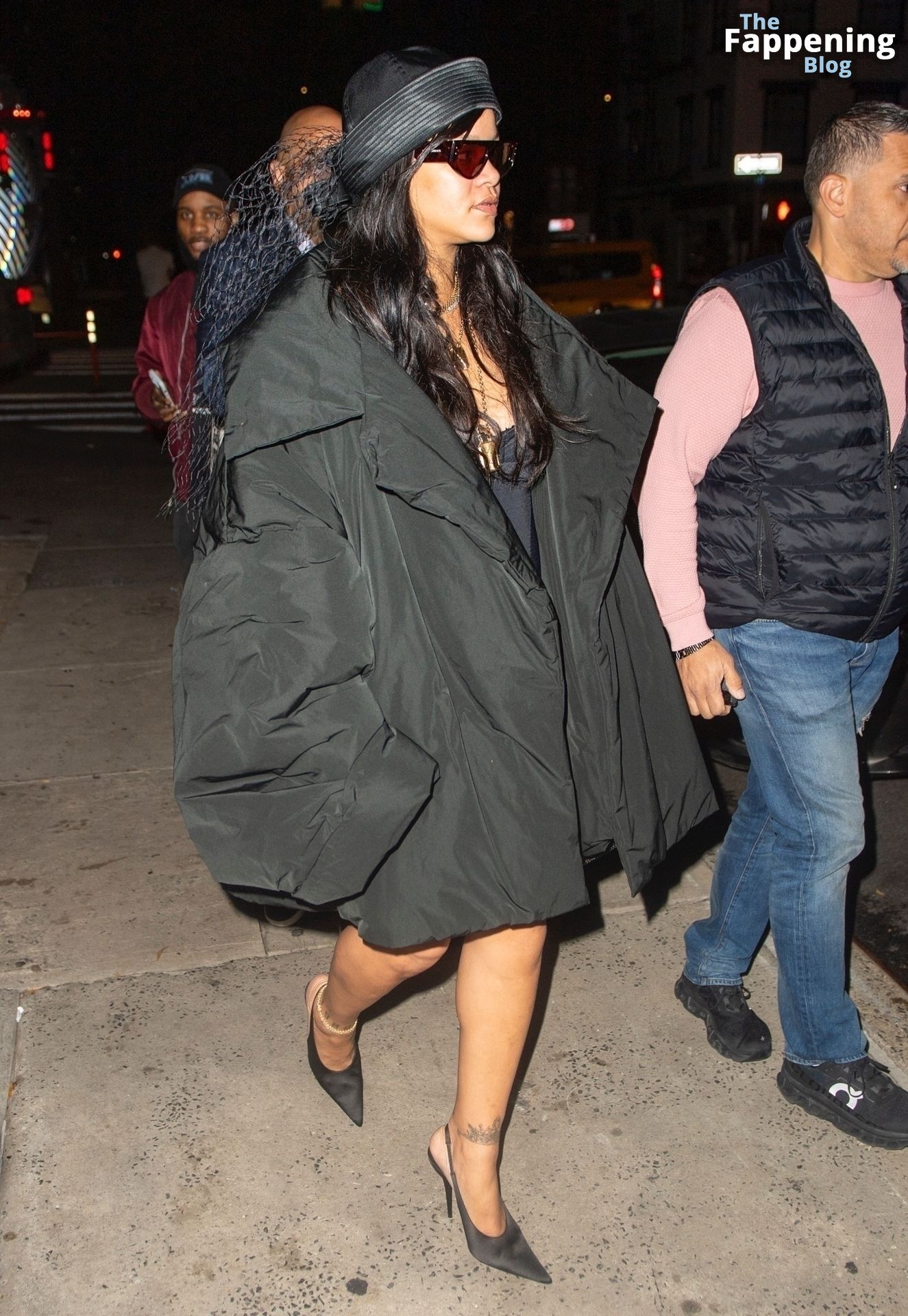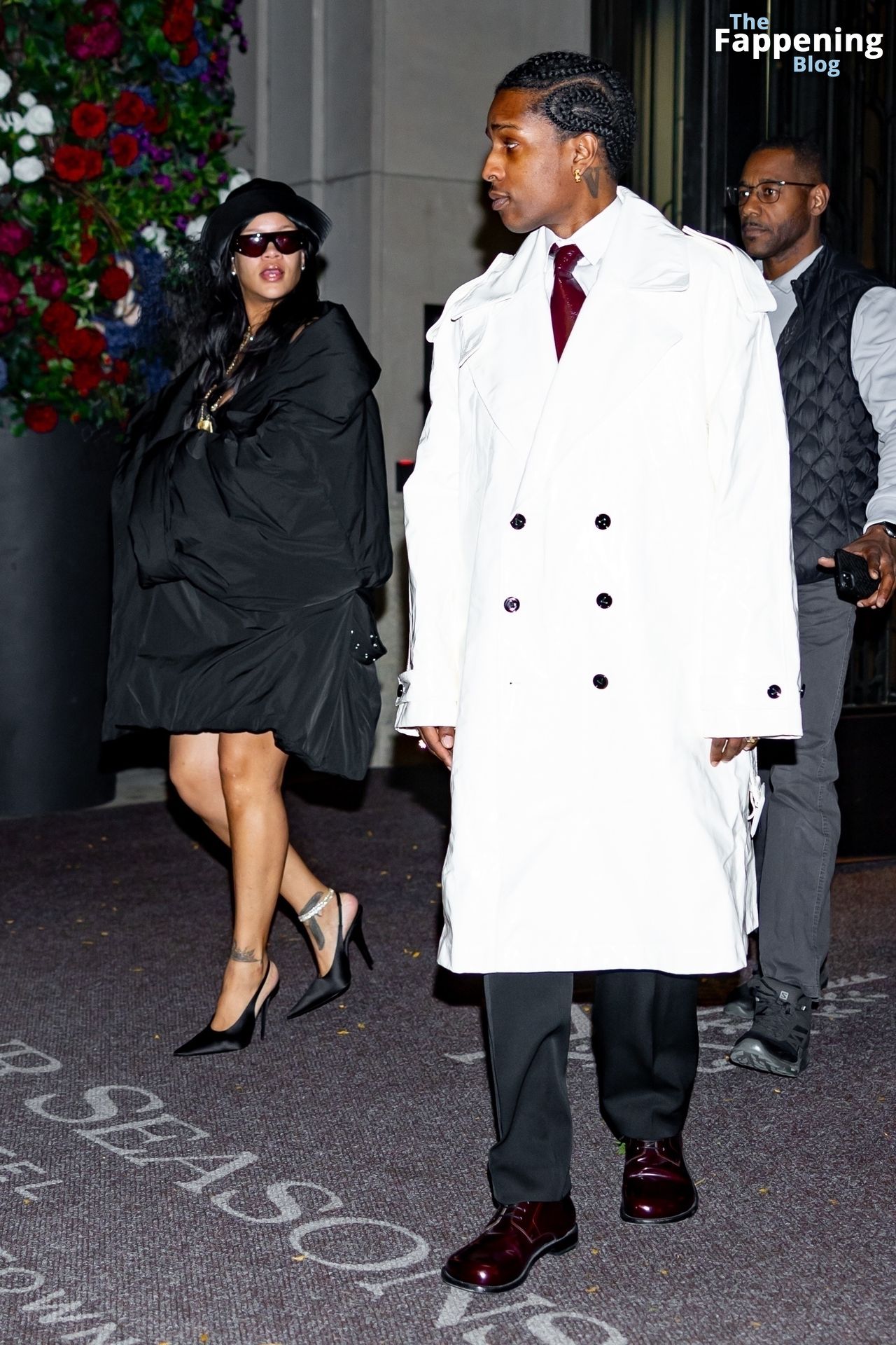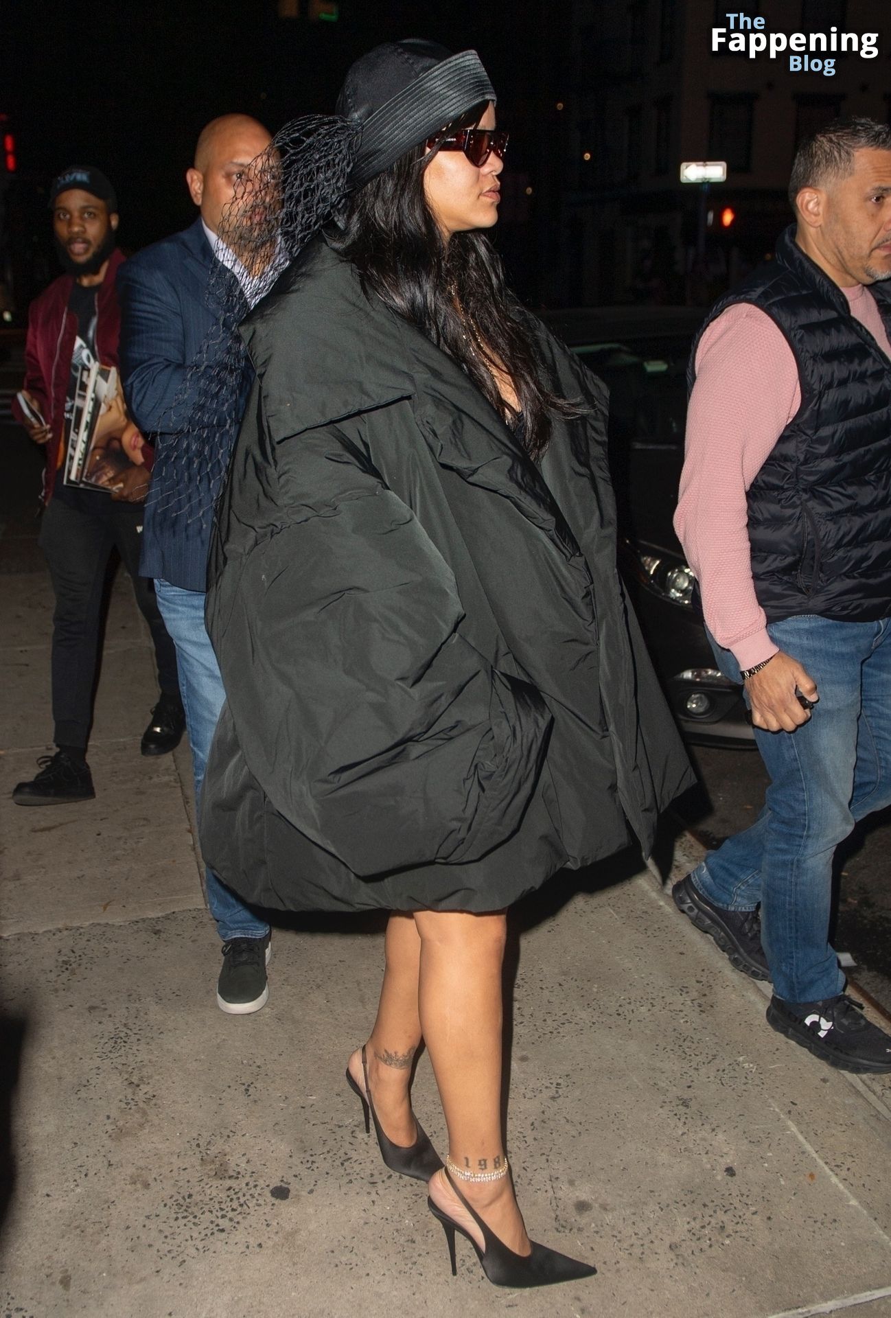 Singer Rihanna wears an undergarment and a coat as she and A$AP Rocky step out for date night in NYC as the duo celebrates his birthday.