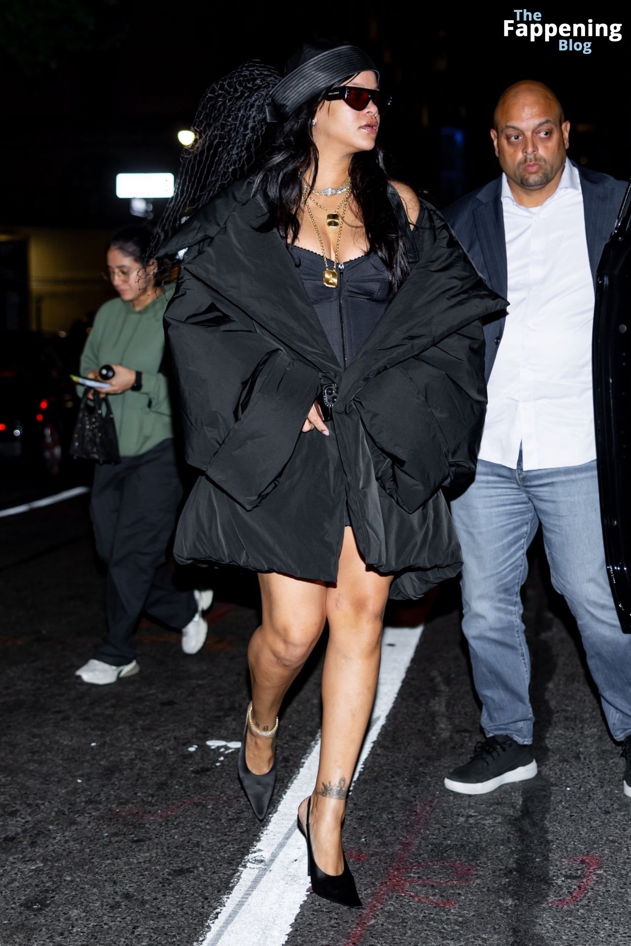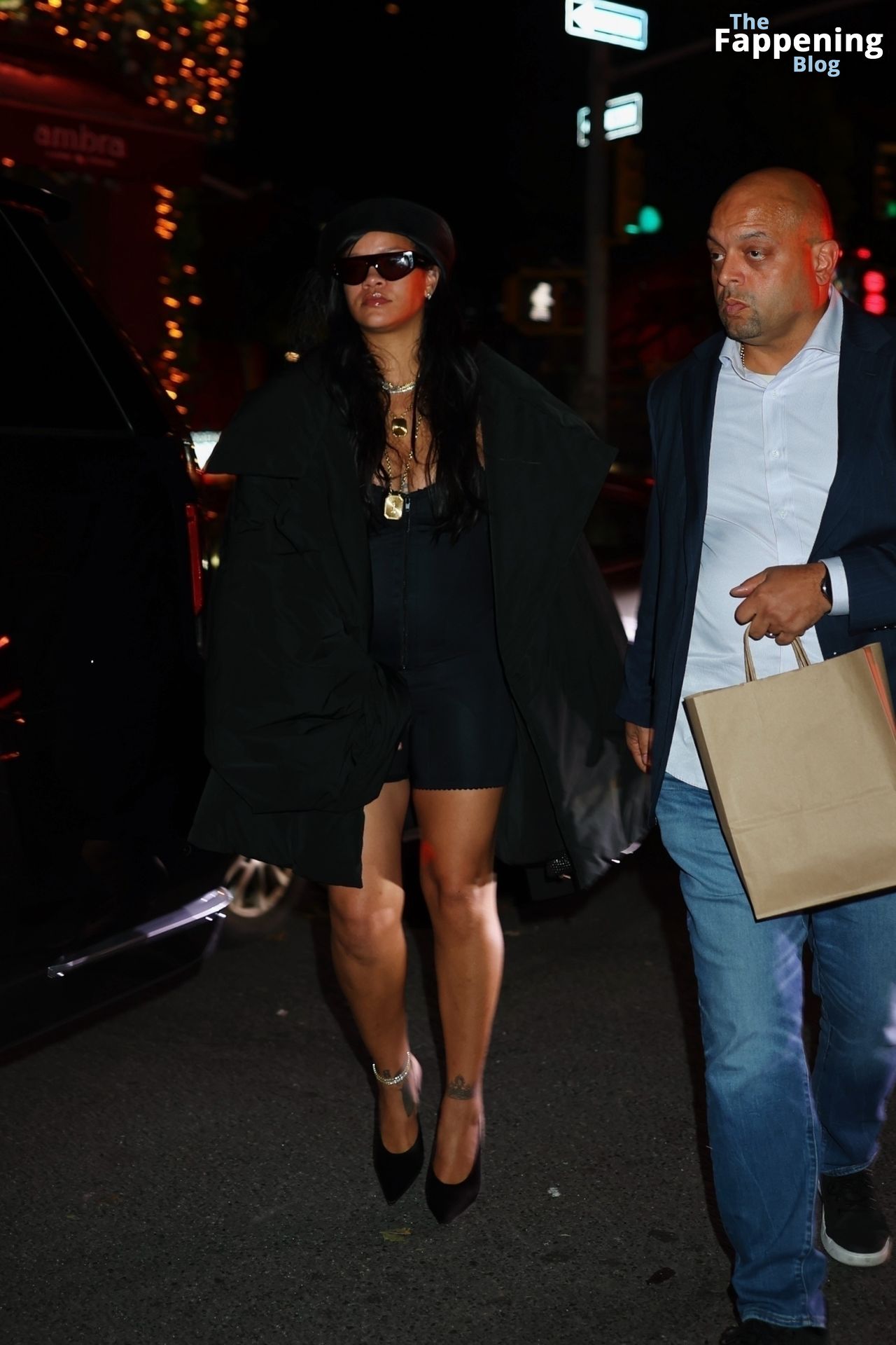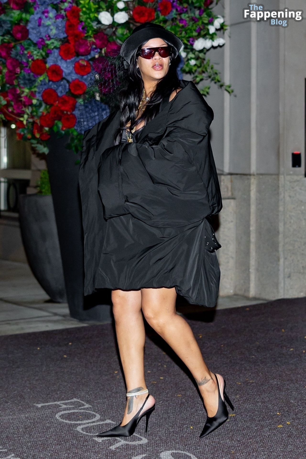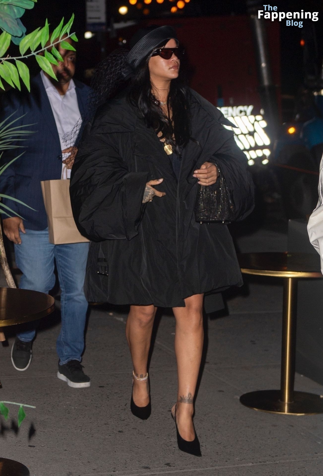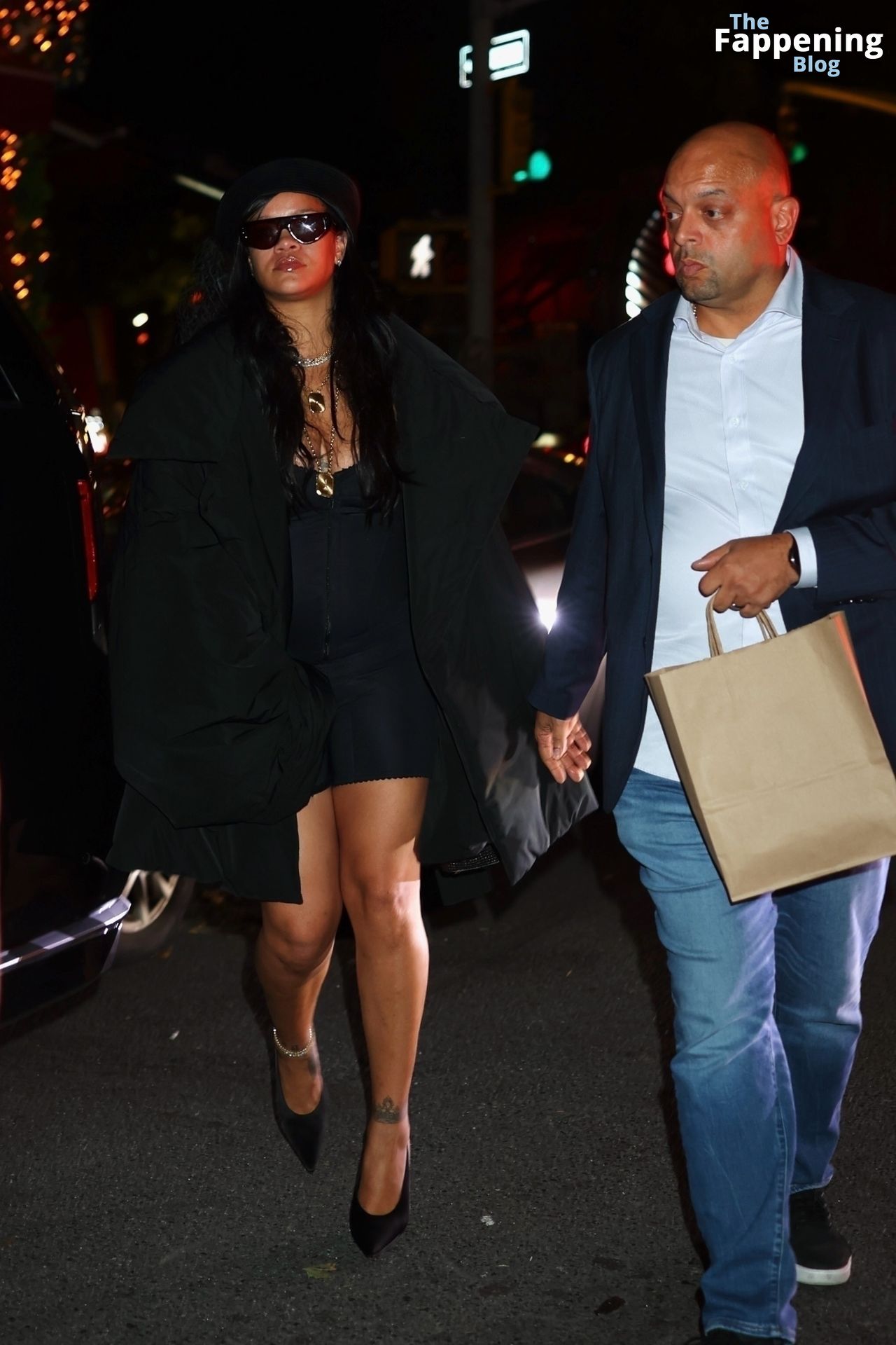 Singer Rihanna wears an undergarment and a coat as she and A$AP Rocky step out for date night in NYC as the duo celebrates his birthday.