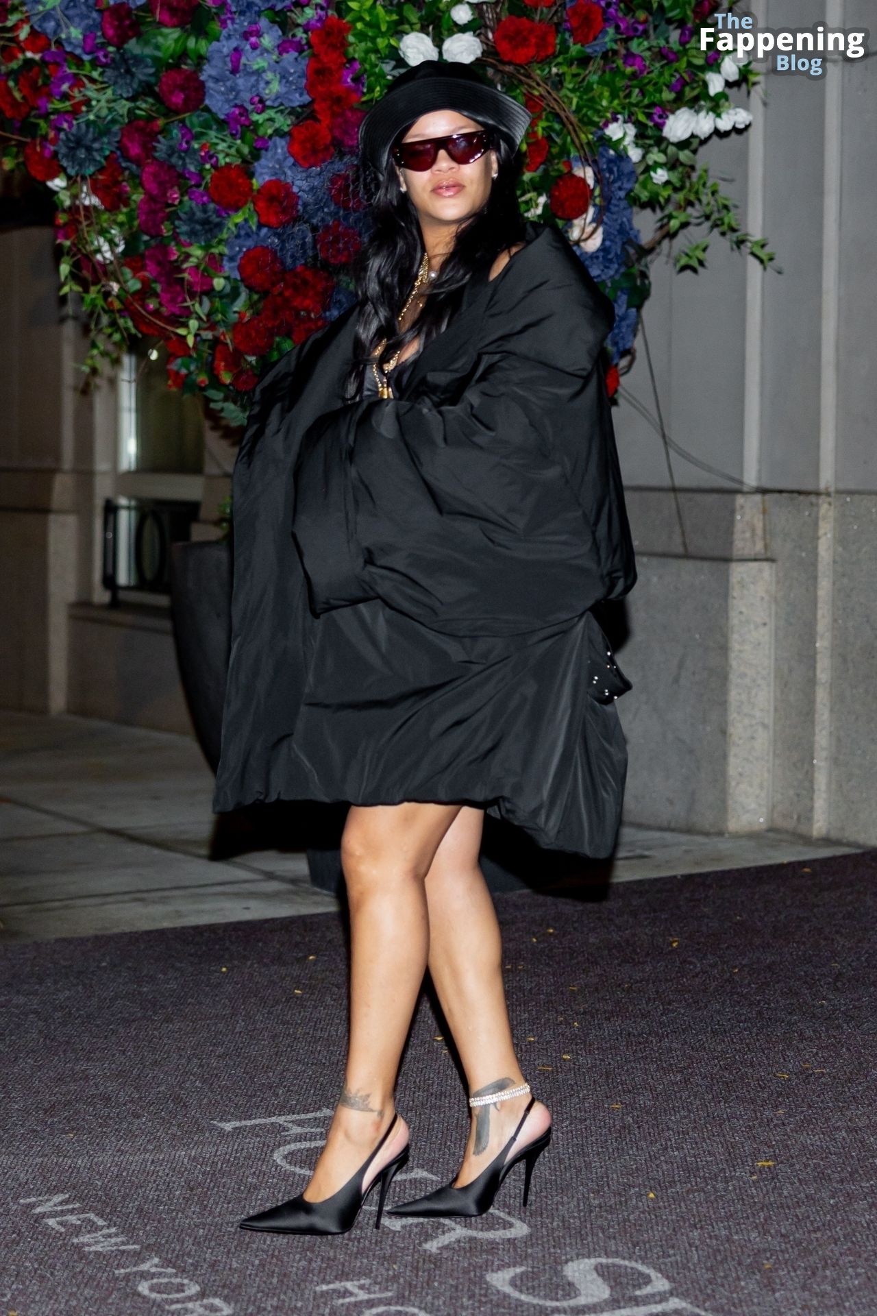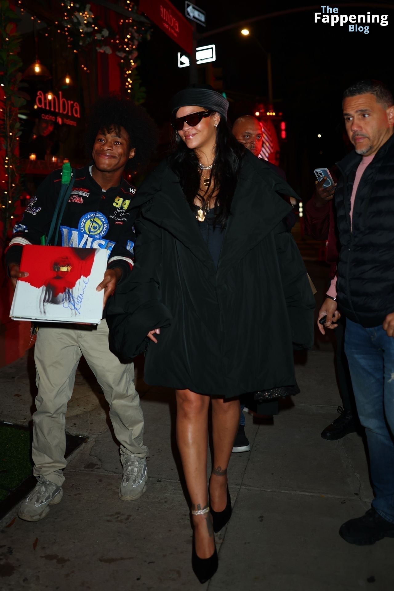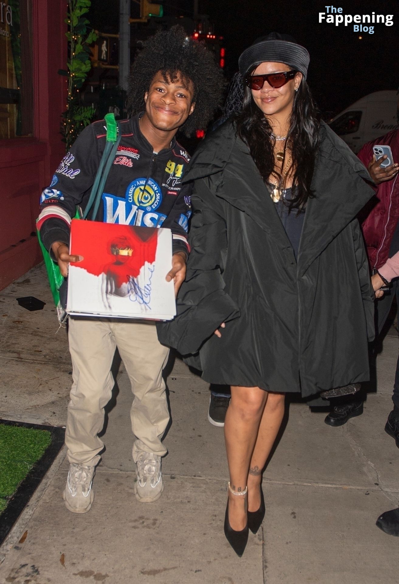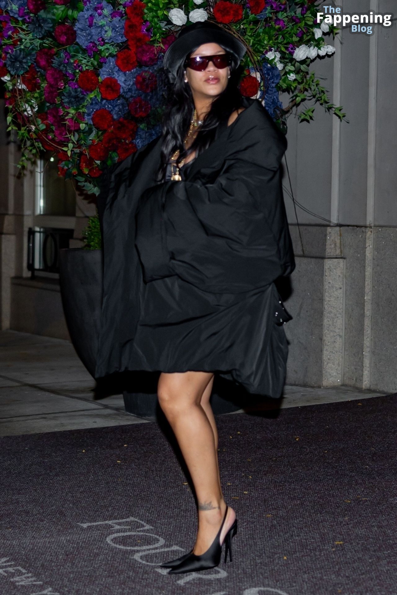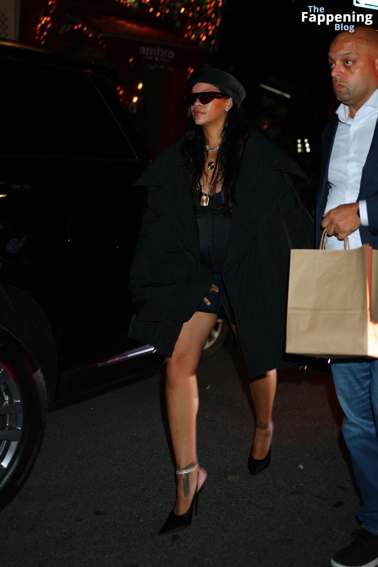 Singer Rihanna wears an undergarment and a coat as she and A$AP Rocky step out for date night in NYC as the duo celebrates his birthday.