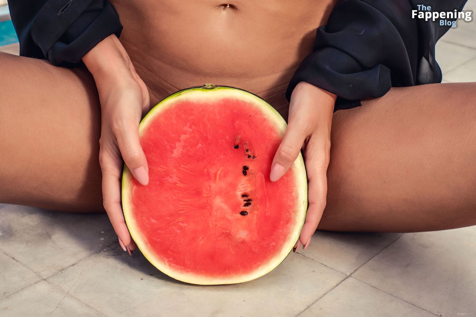 Model Laura Giraudi is gettin’ all up in the shoot with some sizzlin’ pics, rockin’ a watermelon as a cover for her wet spot. Check out the juicy shots below.