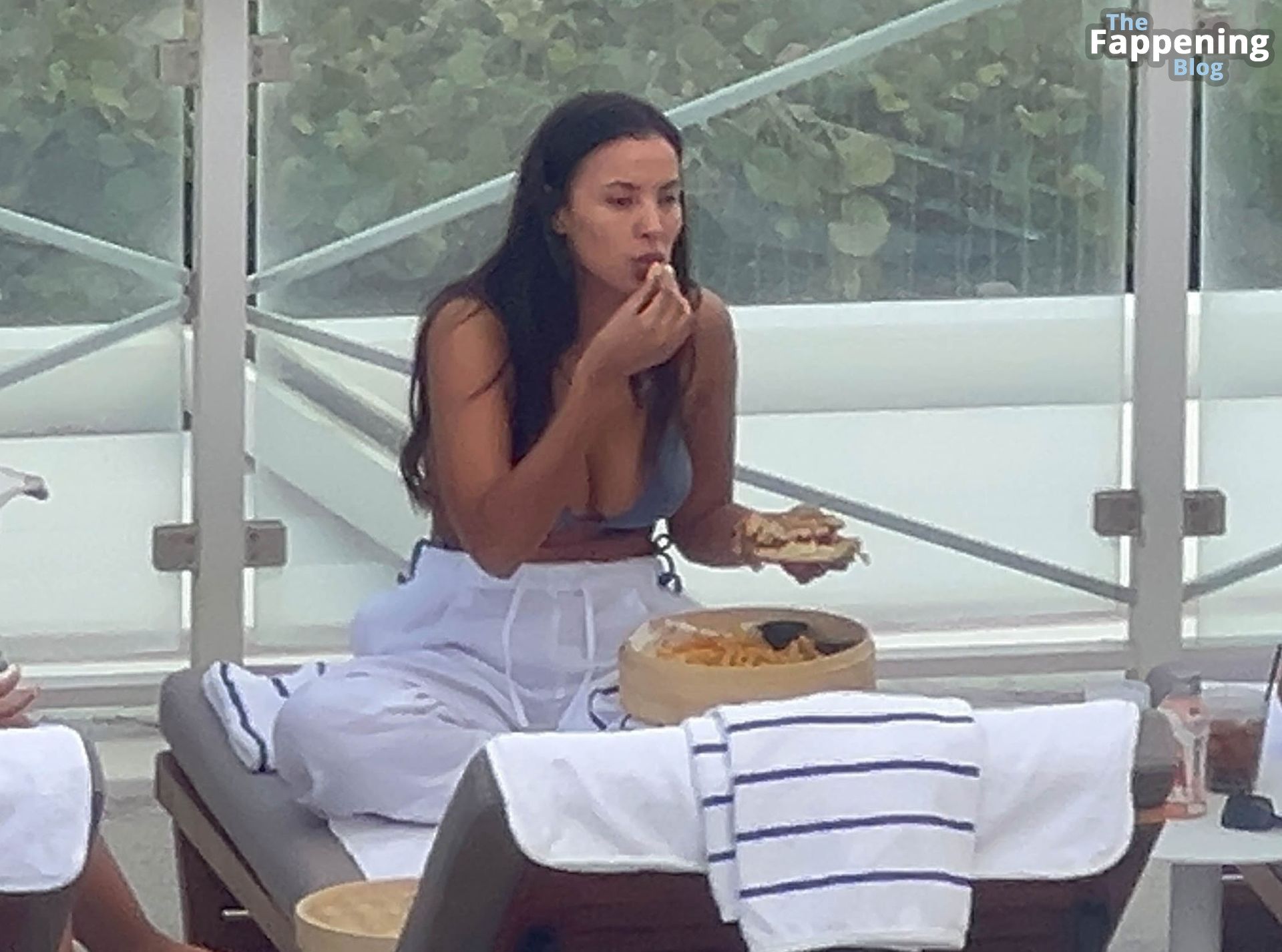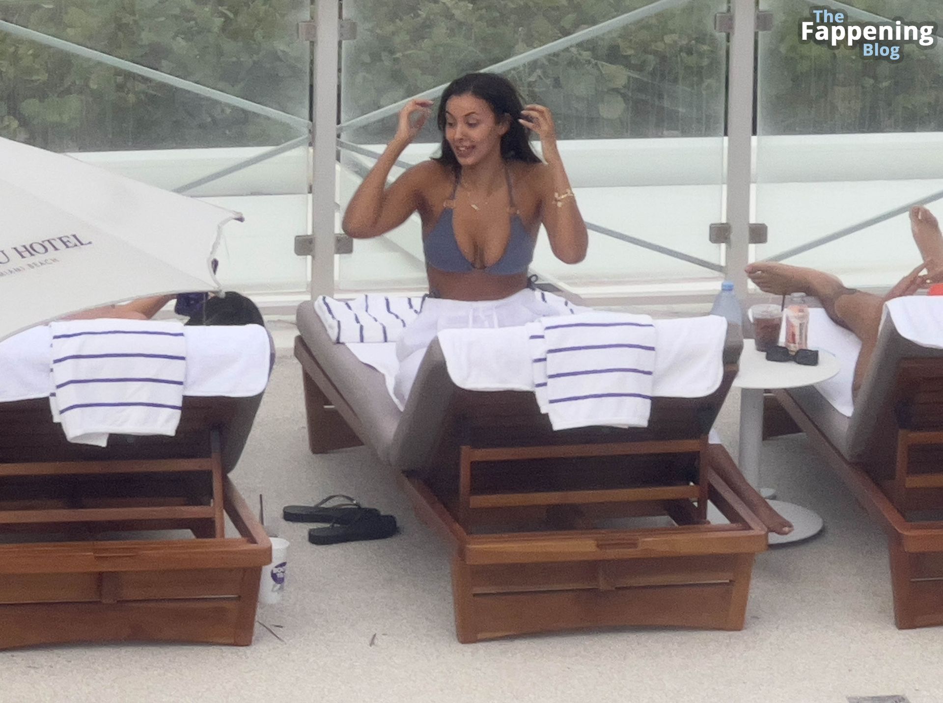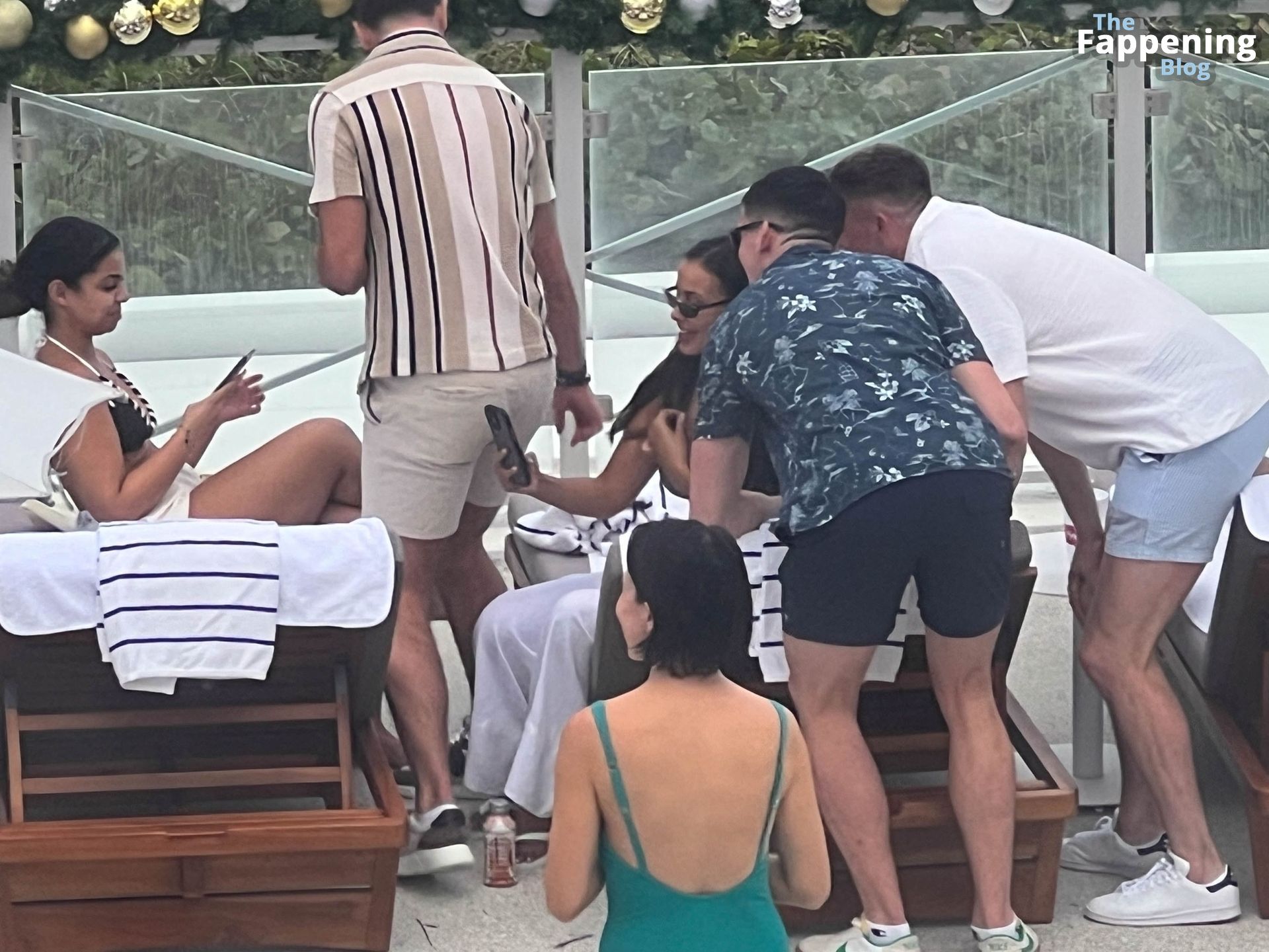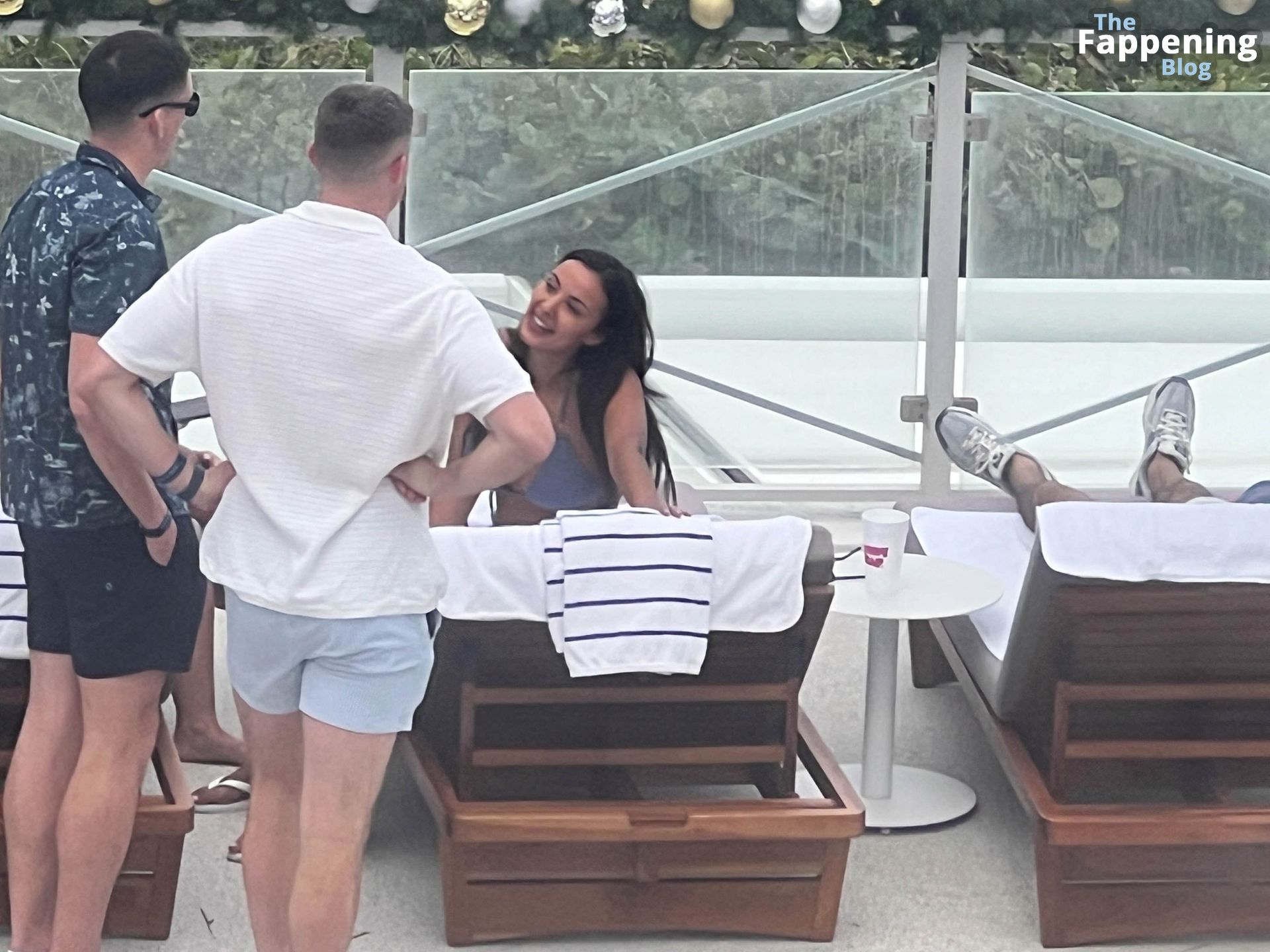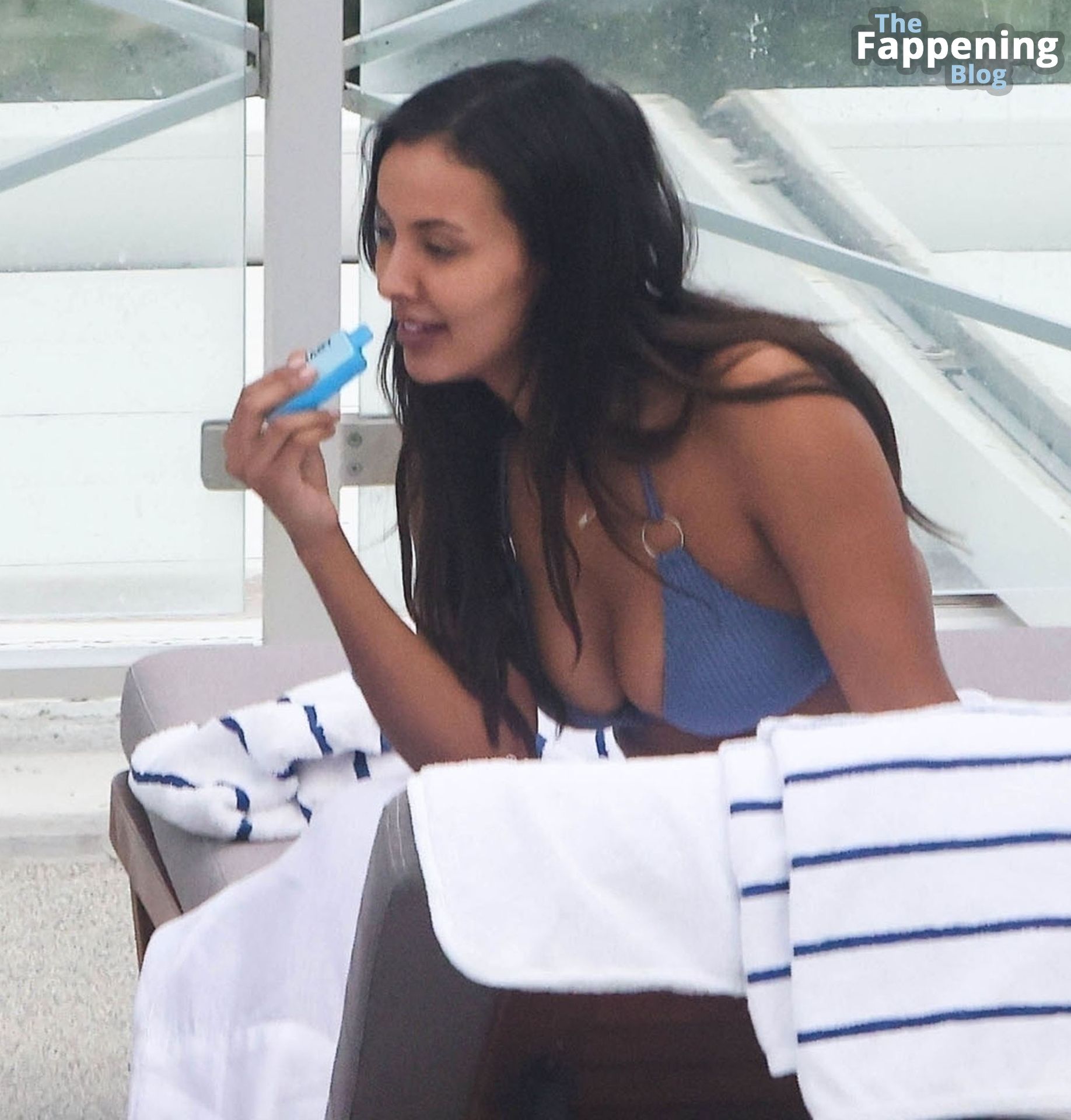 Ahead of the “Love Island All Stars” filming Maya kept it chic and looked incredible whilst enjoying a bite to eat on her sun lounger dressed in a blue bikini top and white wide-leg linen pants, complemented by her dark sunglasses and minimal jewellery as the newly single presenter seemed to be getting a lot of male attention from passers by who recognized the star and gleefully posed for selfies with her fans.