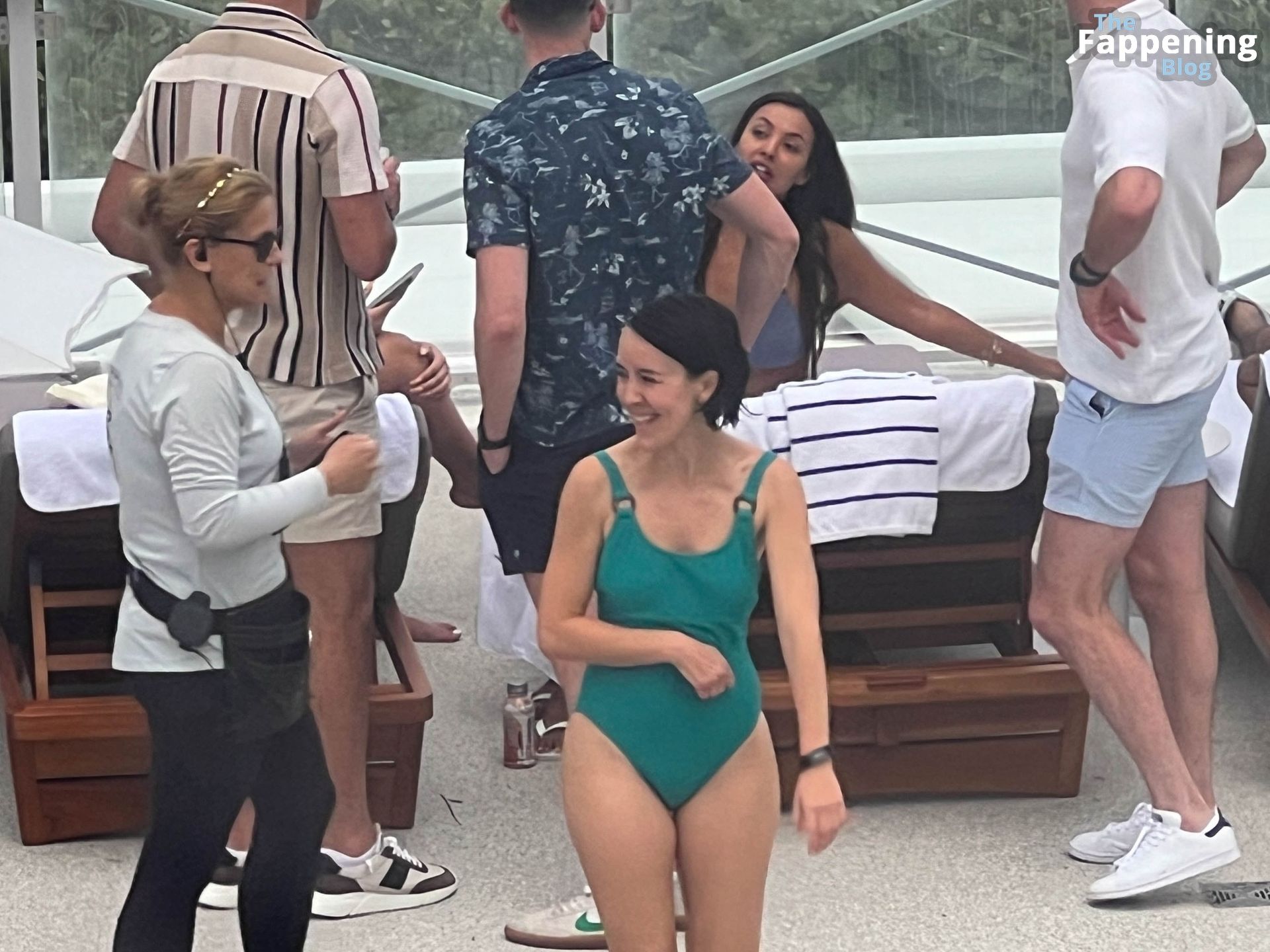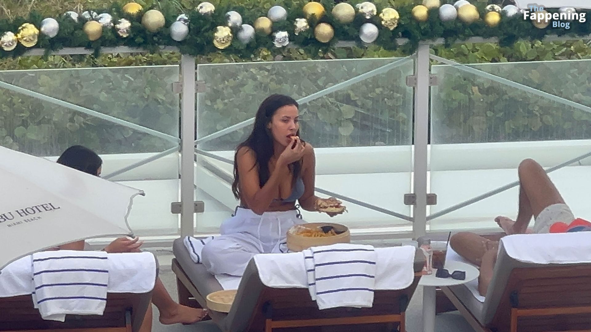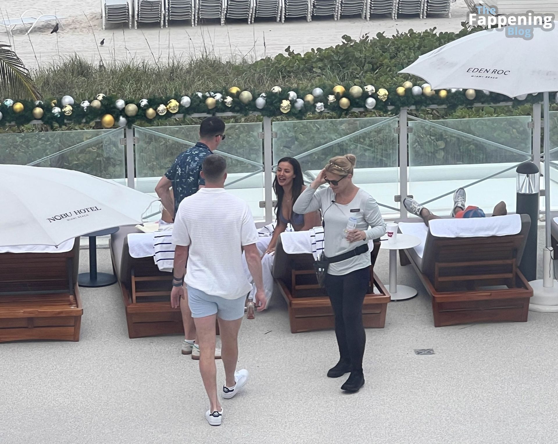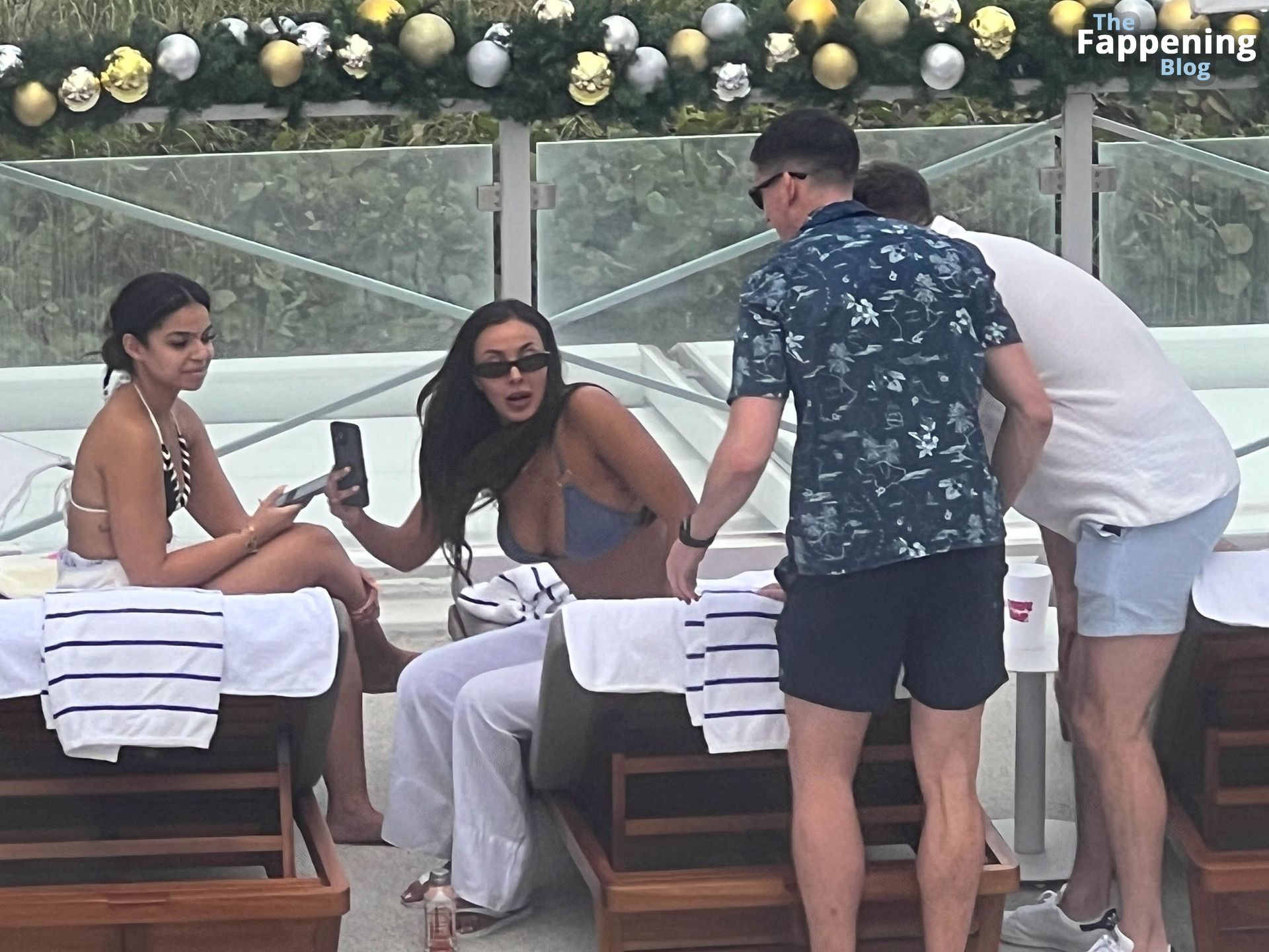 Ahead of the “Love Island All Stars” filming Maya kept it chic and looked incredible whilst enjoying a bite to eat on her sun lounger dressed in a blue bikini top and white wide-leg linen pants, complemented by her dark sunglasses and minimal jewellery as the newly single presenter seemed to be getting a lot of male attention from passers by who recognized the star and gleefully posed for selfies with her fans.