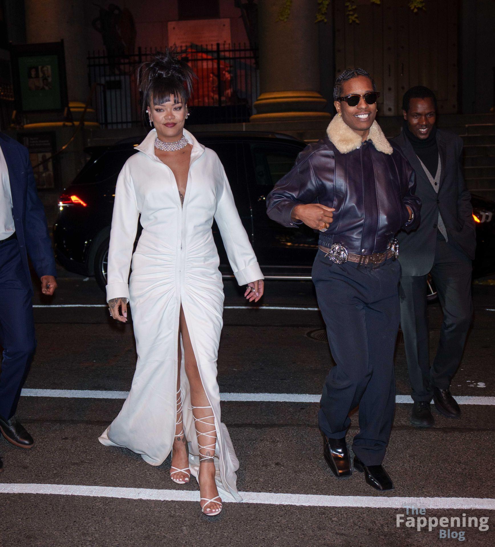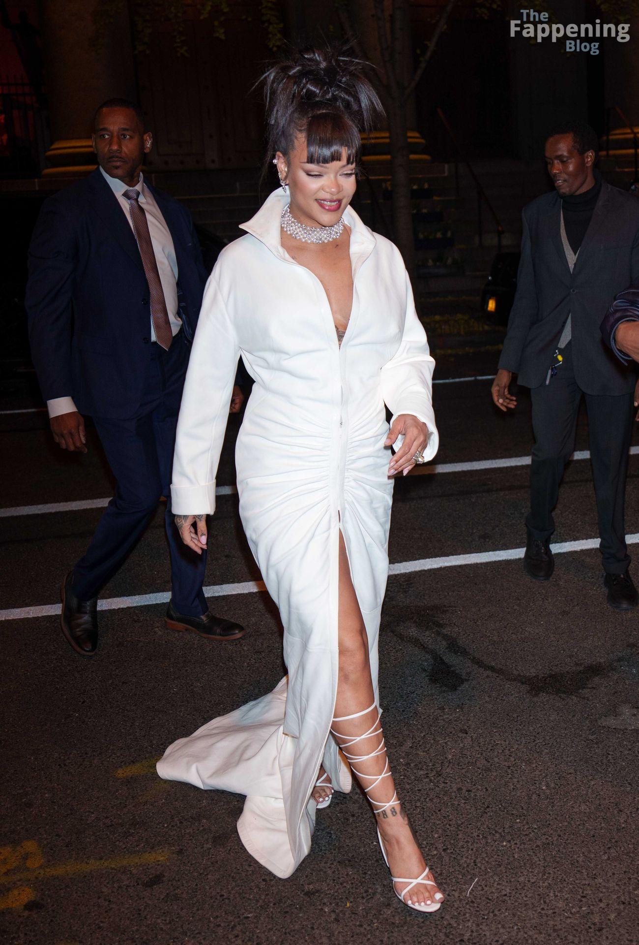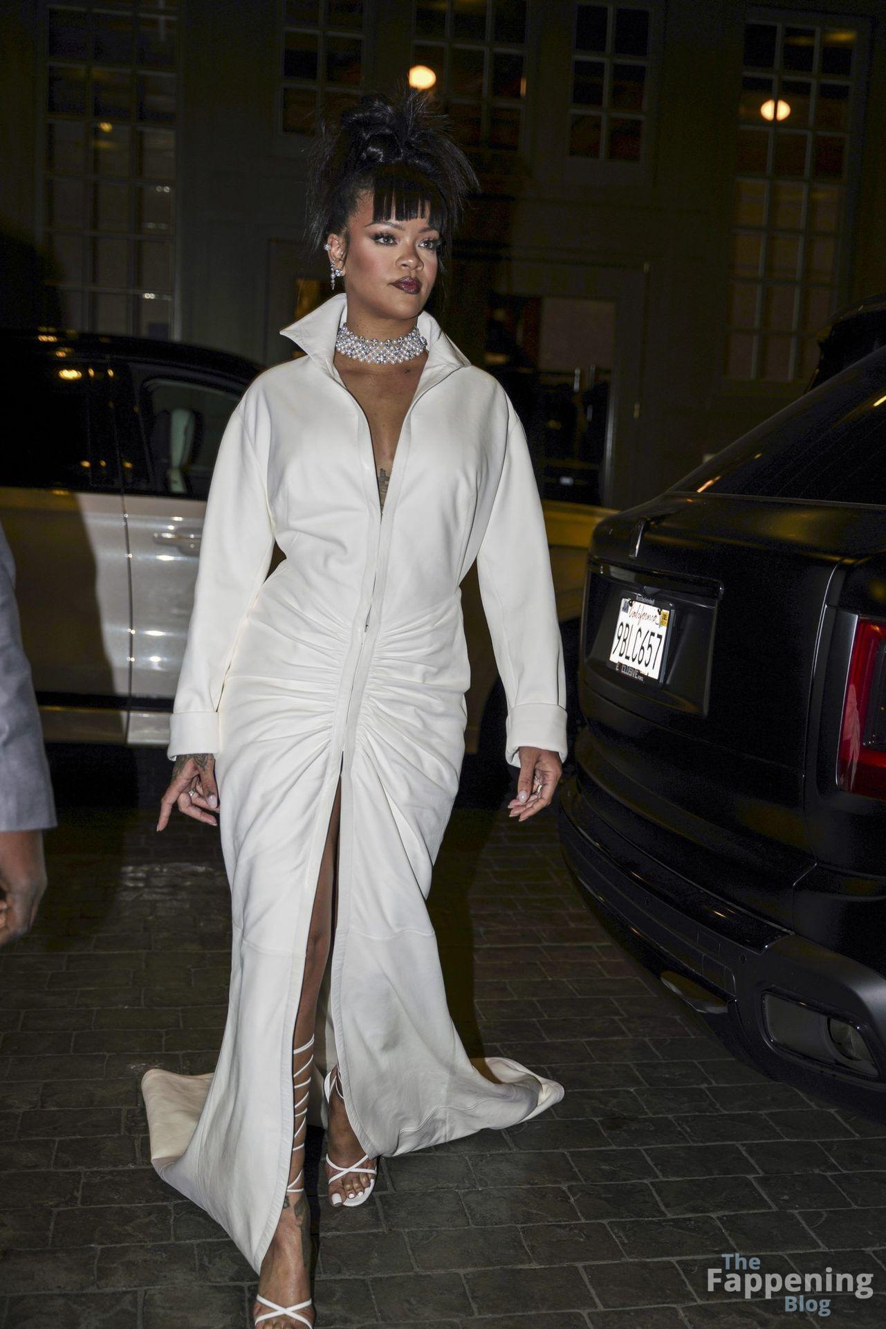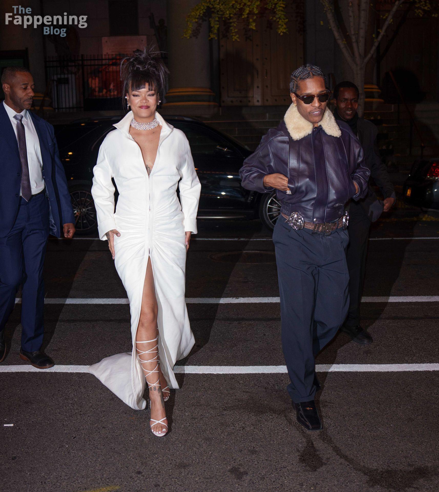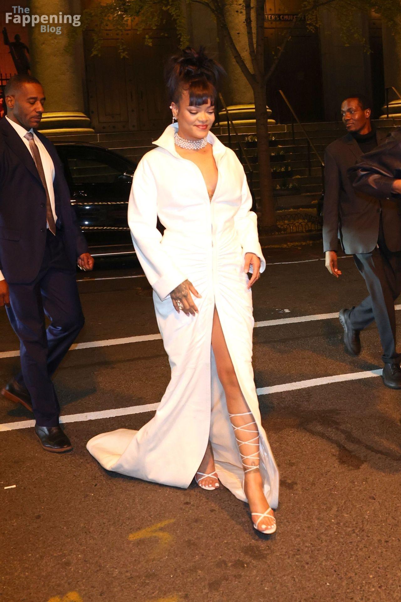 Rihanna stuns in a white dress at the 38th Annual Footwear News Achievement Awards at Cipriani South Street in New York City.
