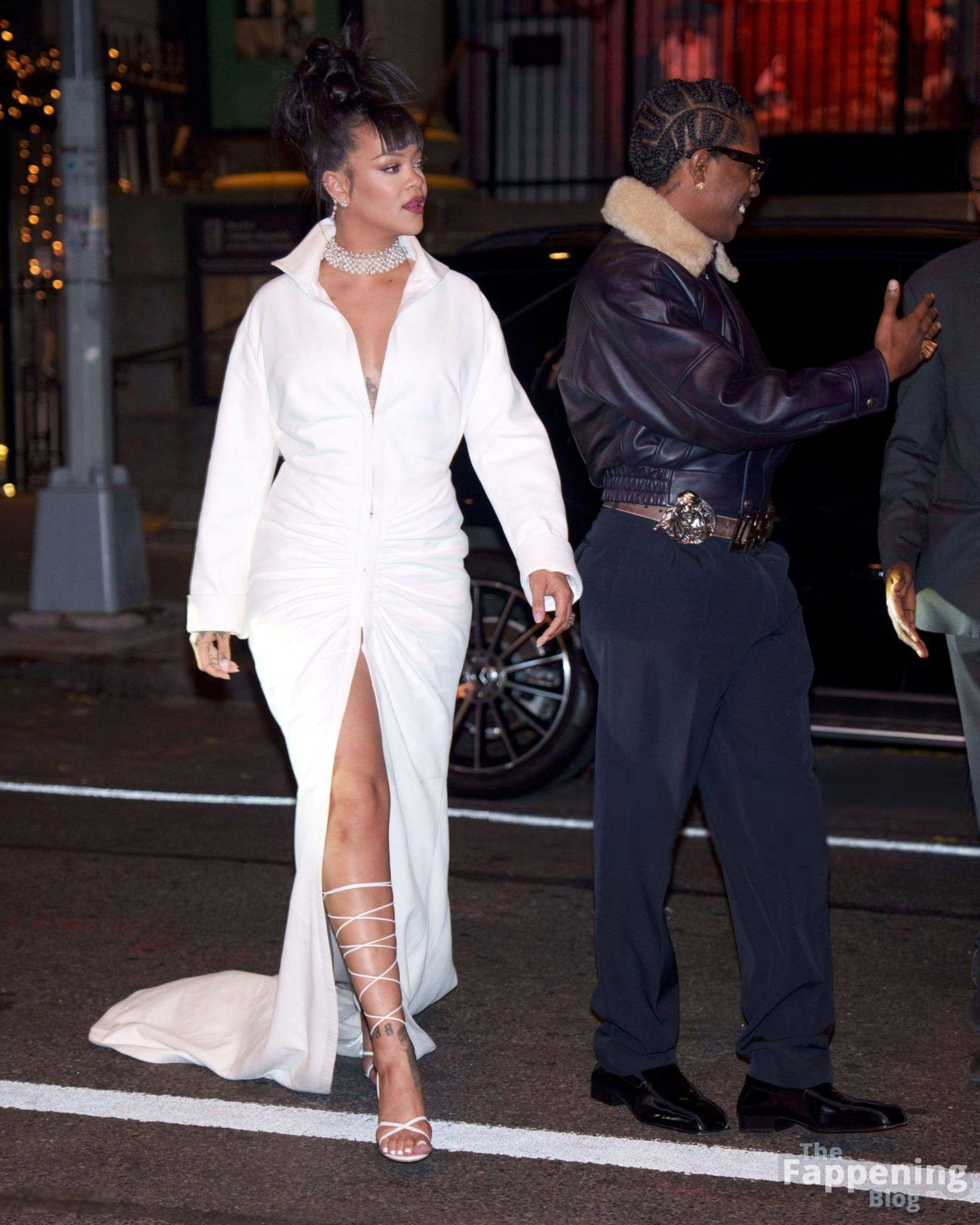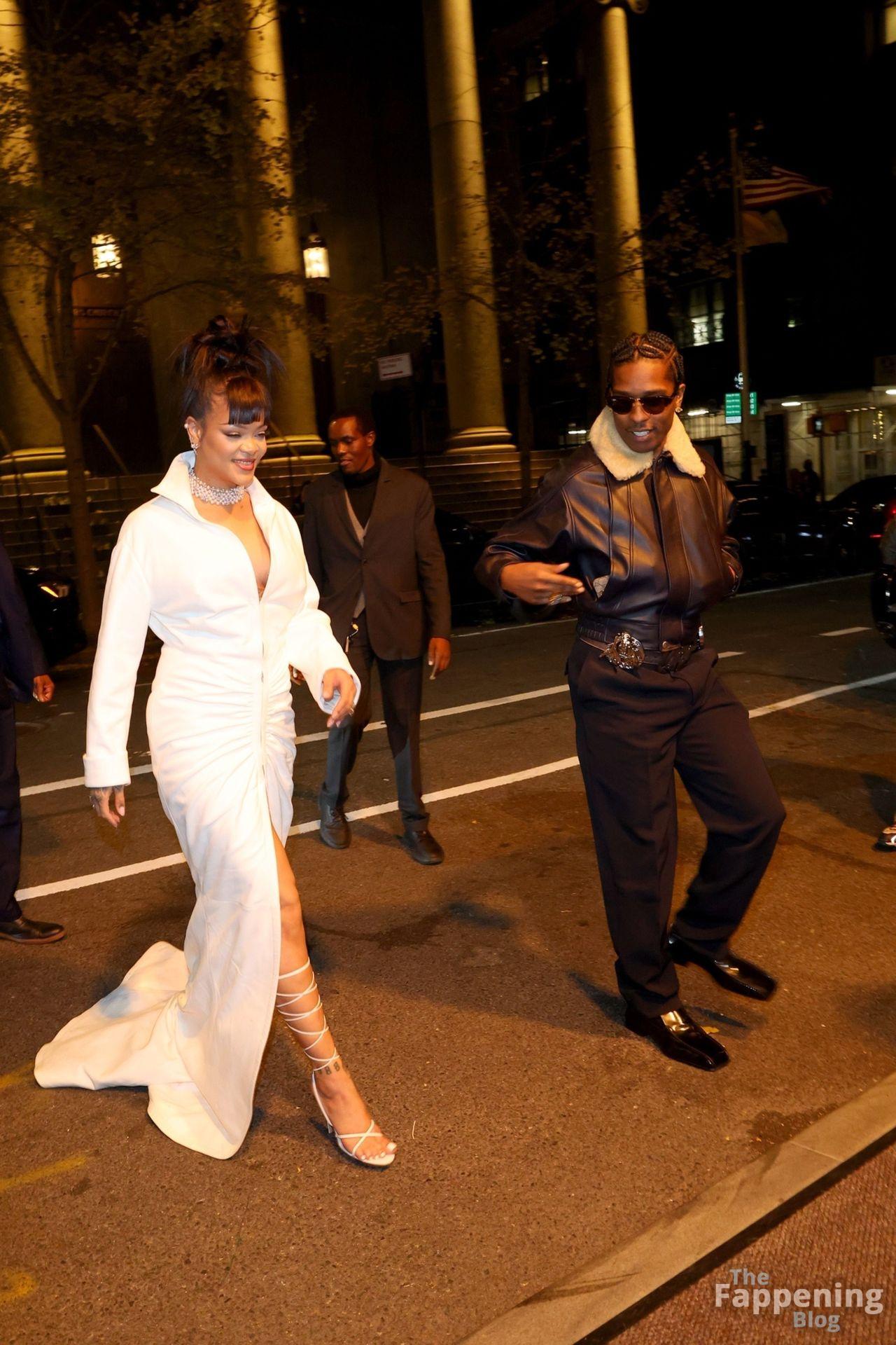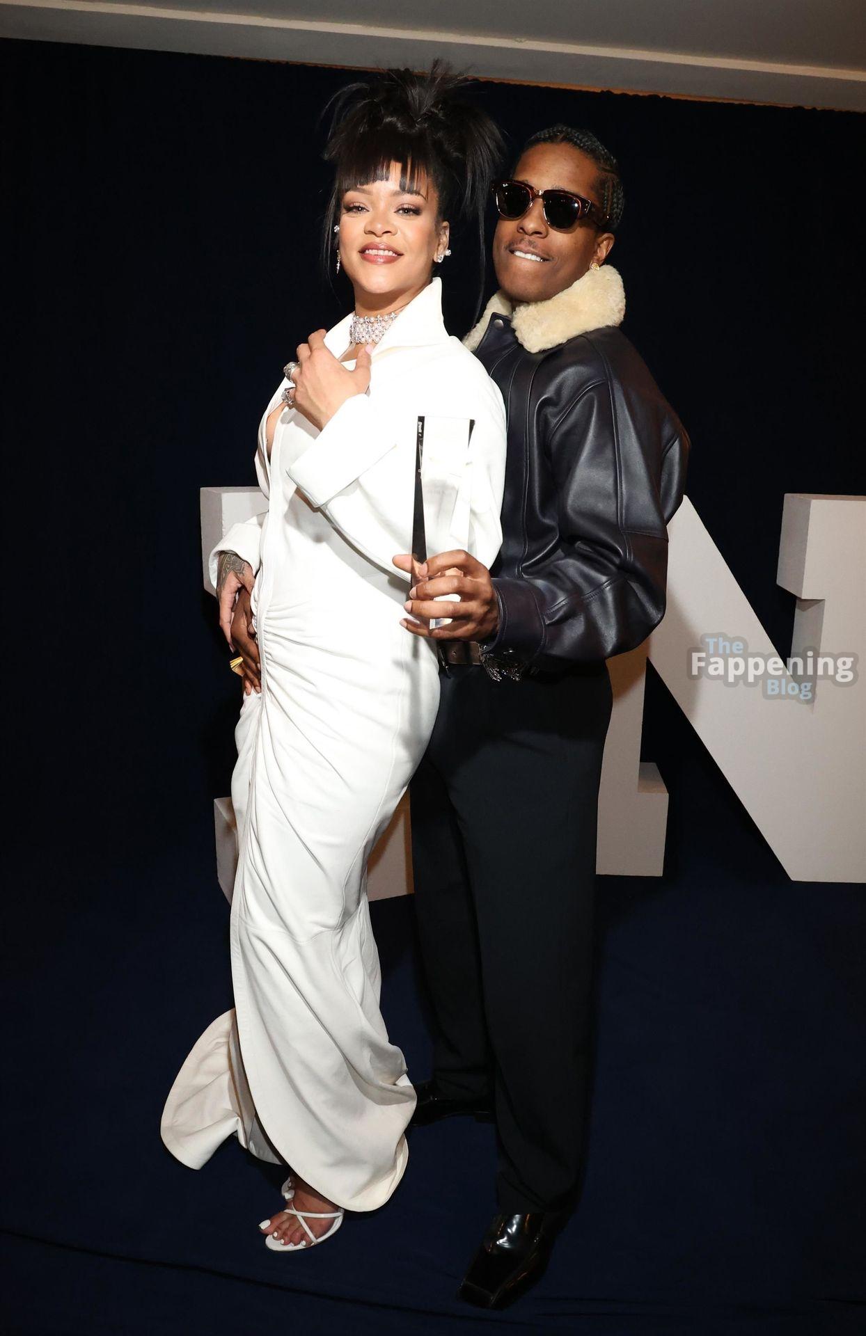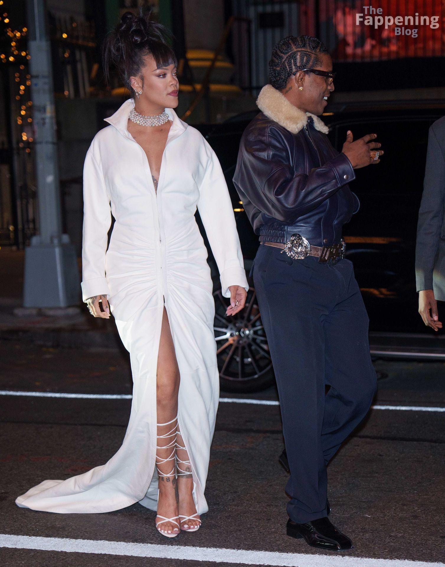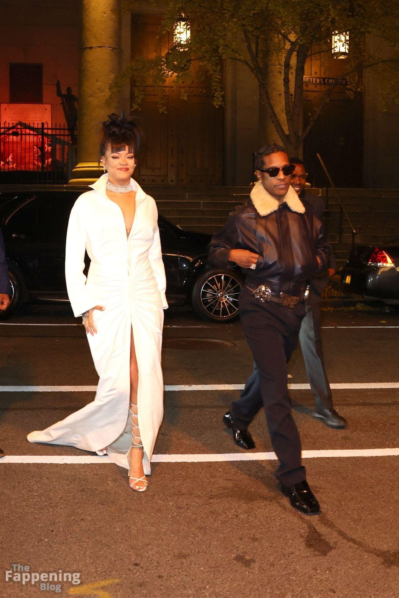 Rihanna stuns in a white dress at the 38th Annual Footwear News Achievement Awards at Cipriani South Street in New York City.
