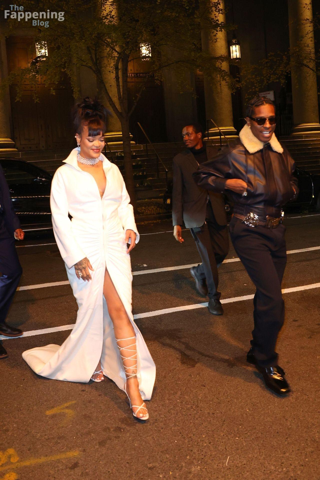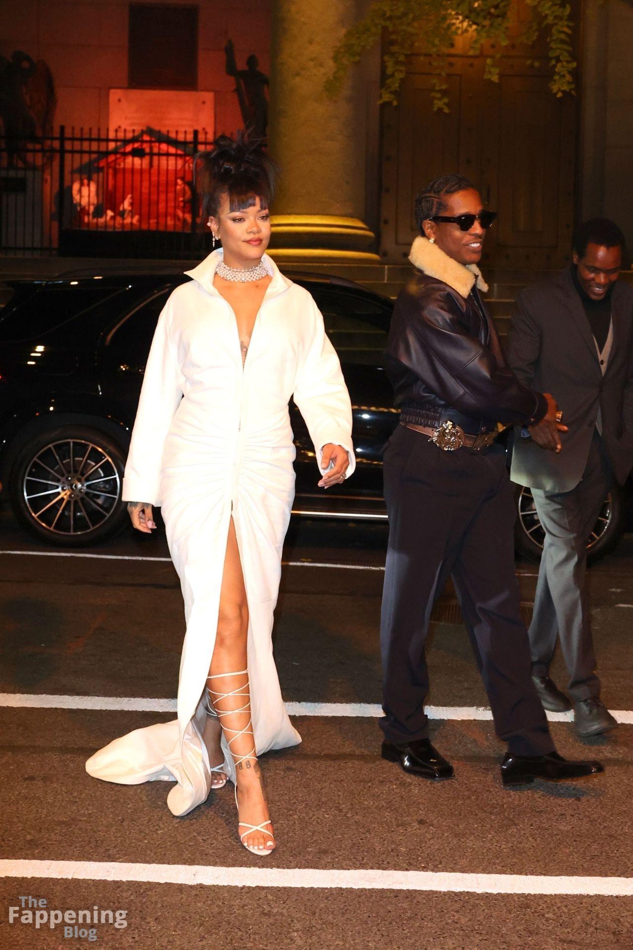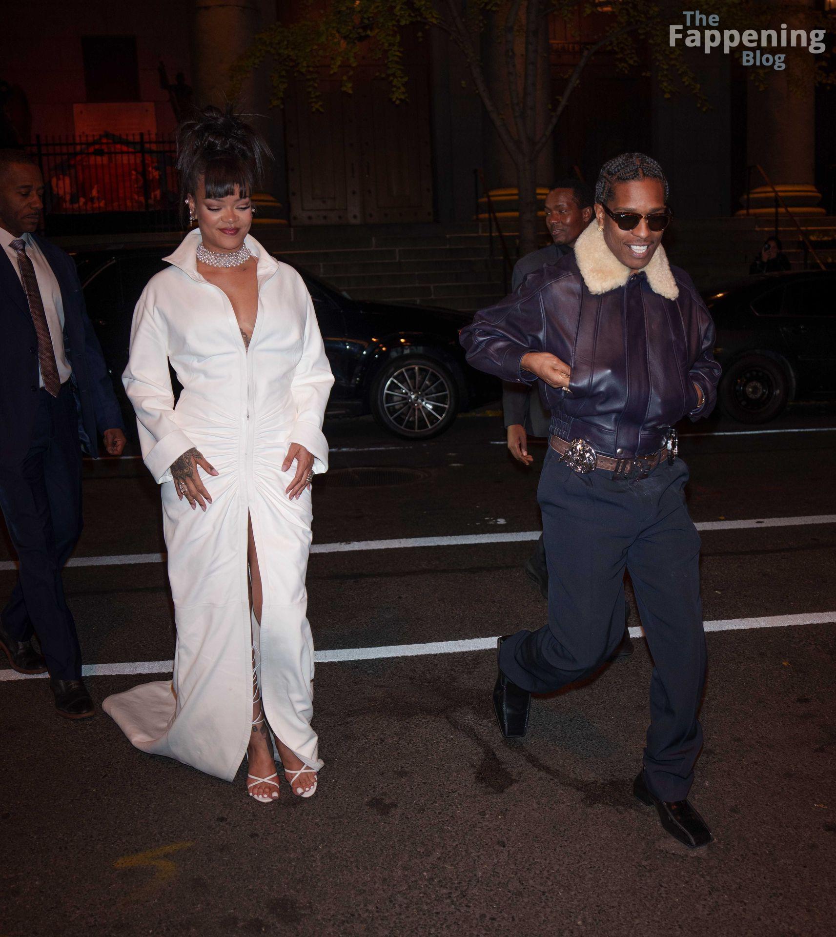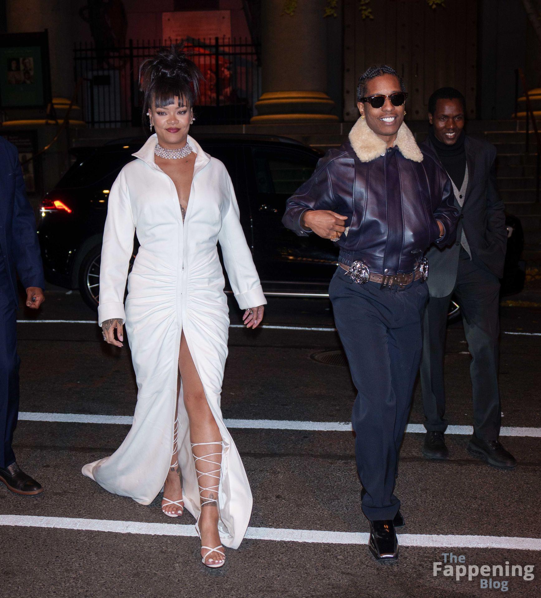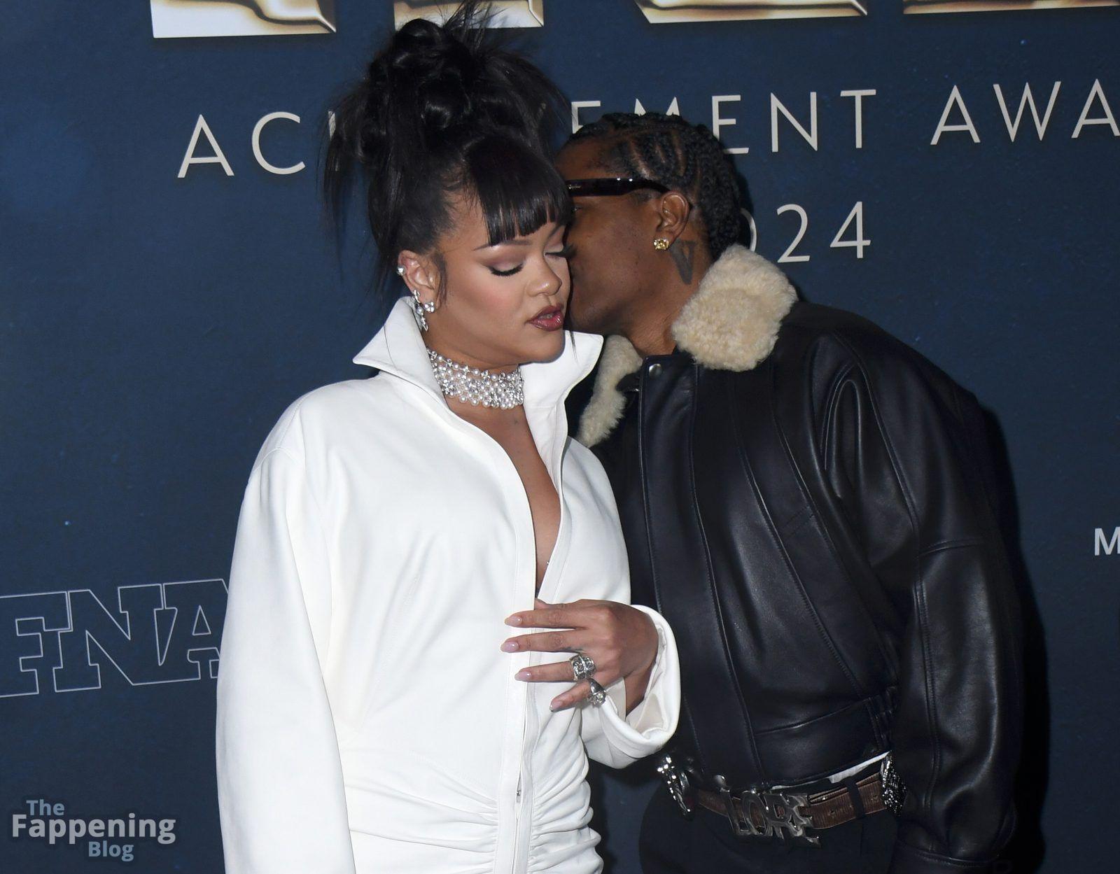 Rihanna stuns in a white dress at the 38th Annual Footwear News Achievement Awards at Cipriani South Street in New York City.