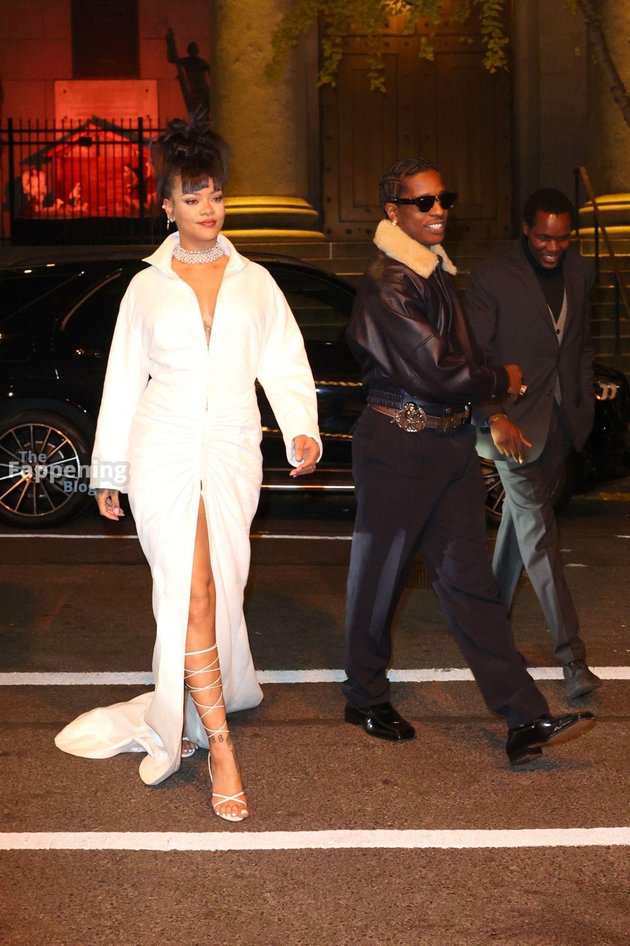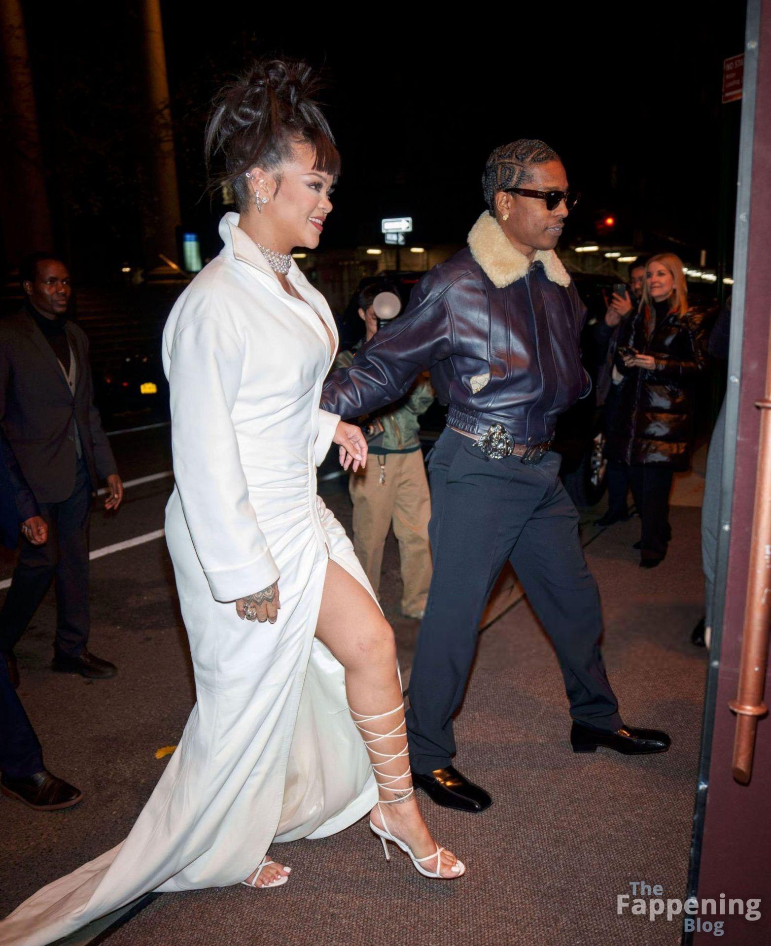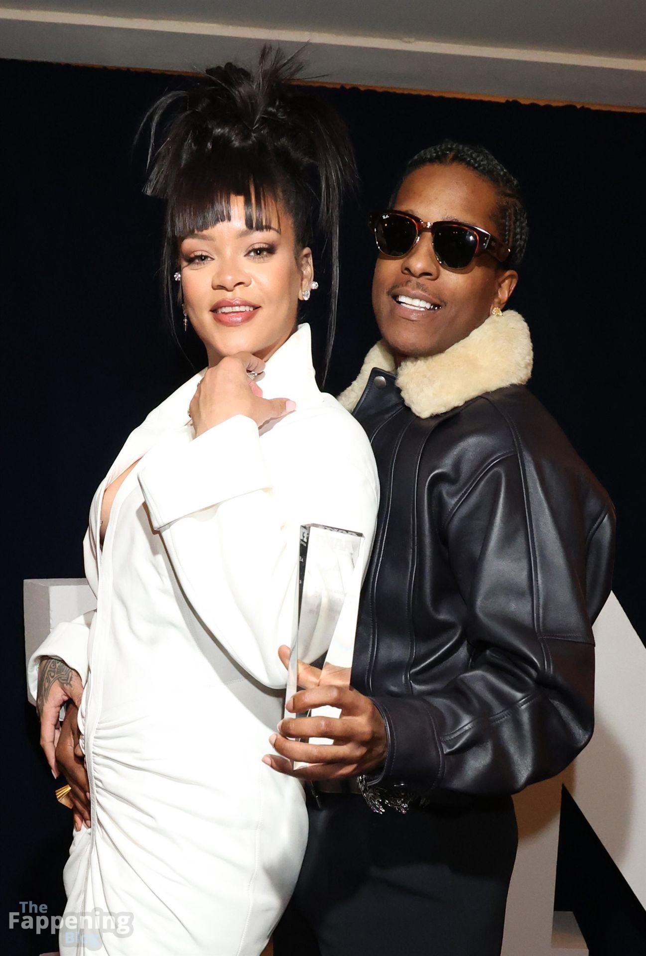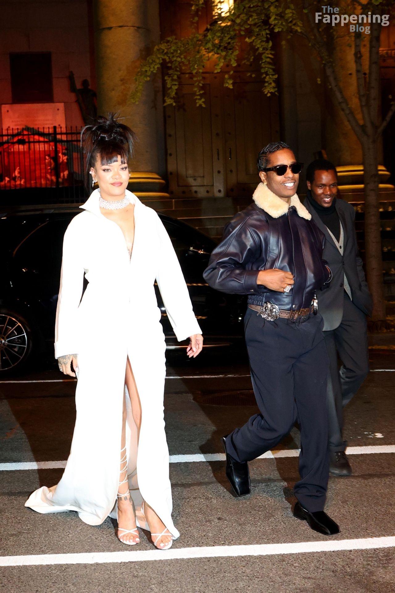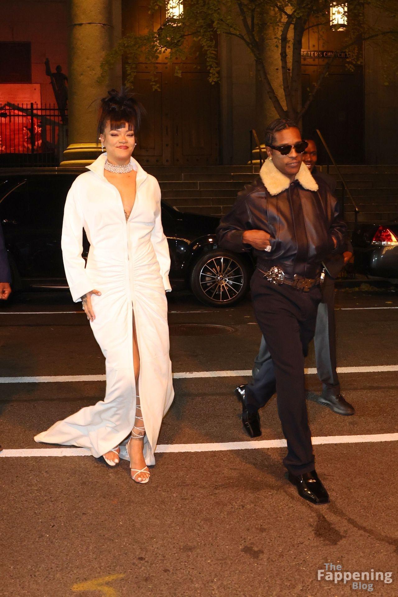 Rihanna stuns in a white dress at the 38th Annual Footwear News Achievement Awards at Cipriani South Street in New York City.
