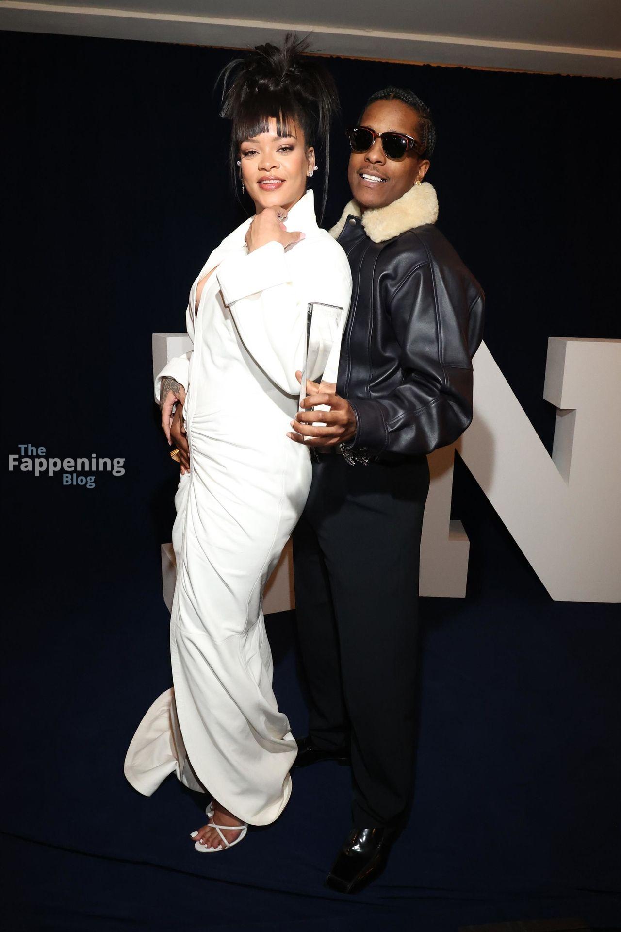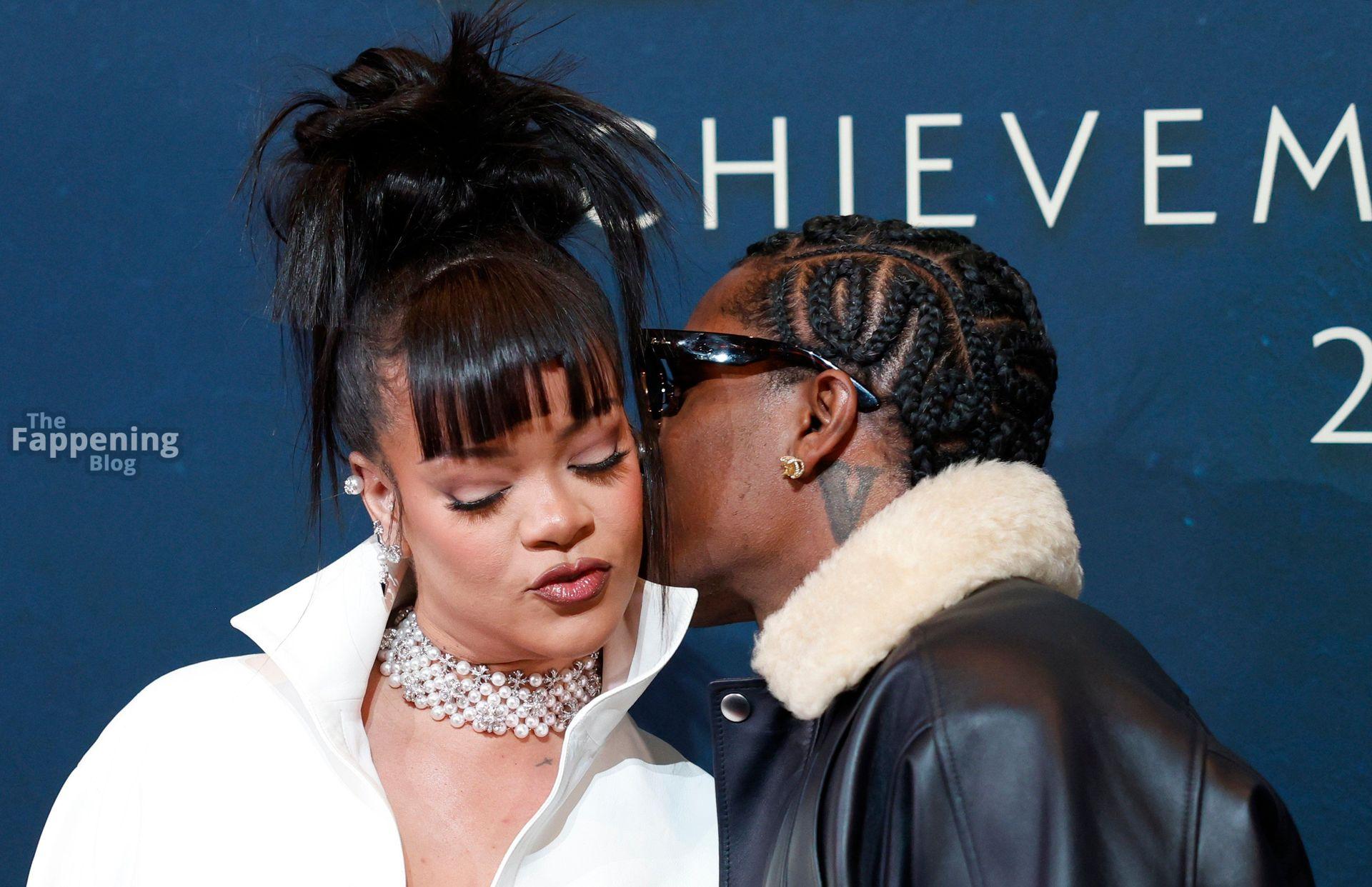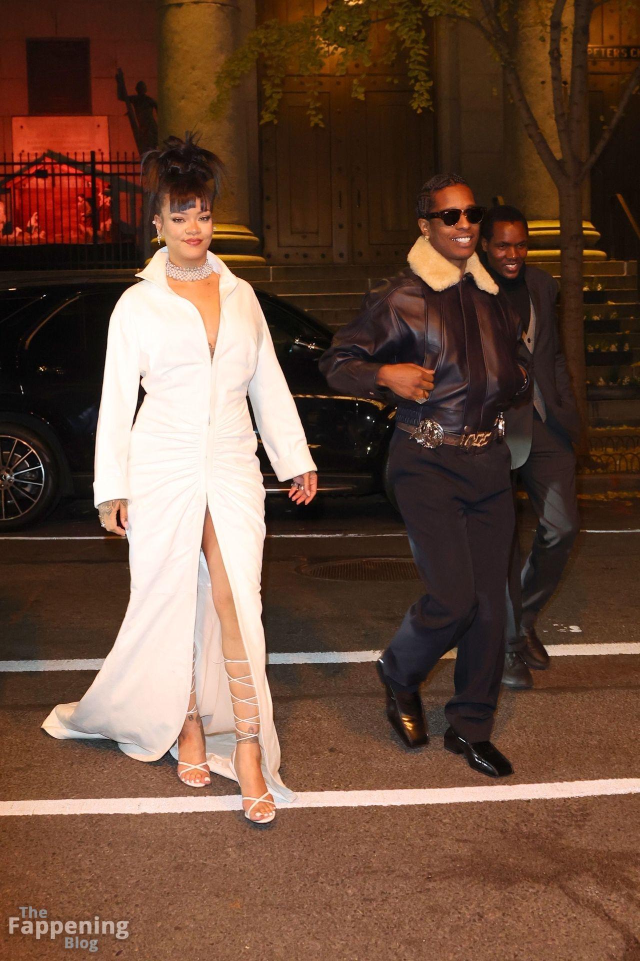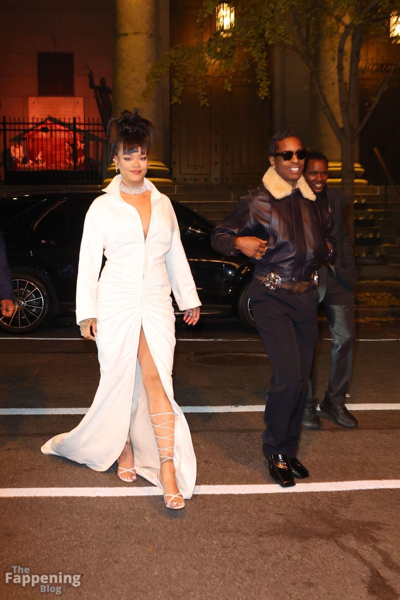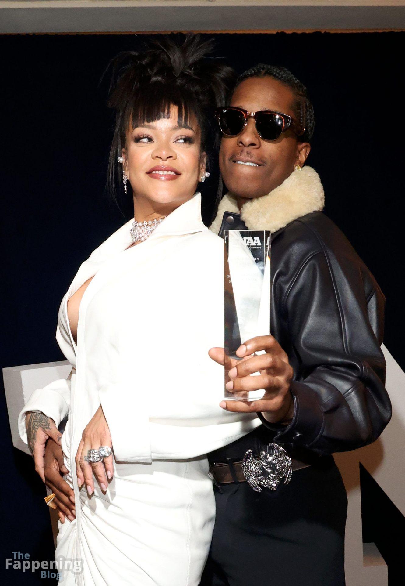 Rihanna stuns in a white dress at the 38th Annual Footwear News Achievement Awards at Cipriani South Street in New York City.