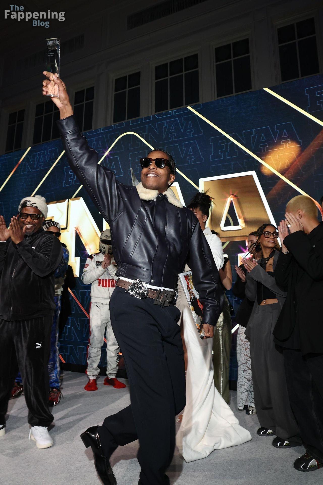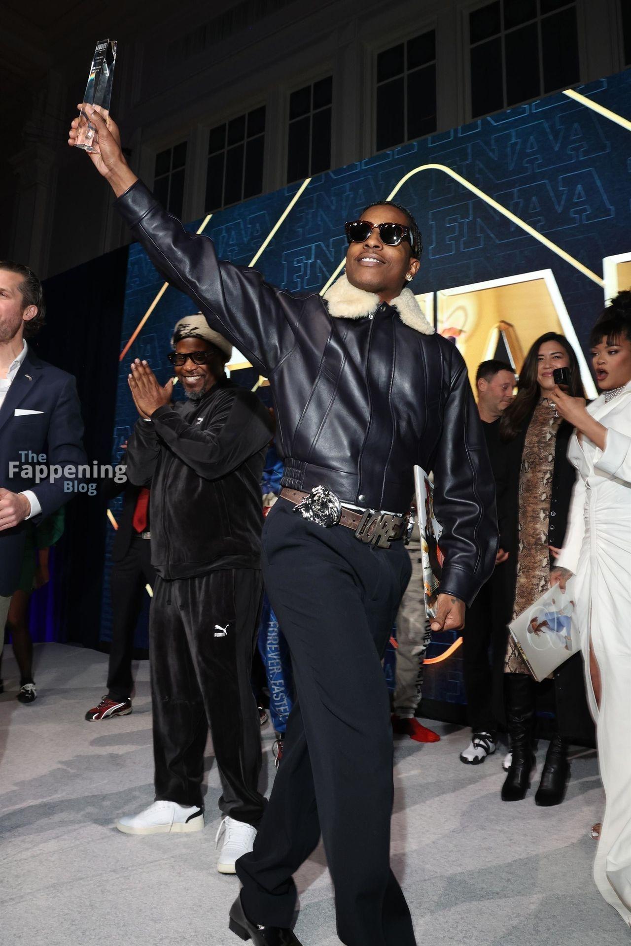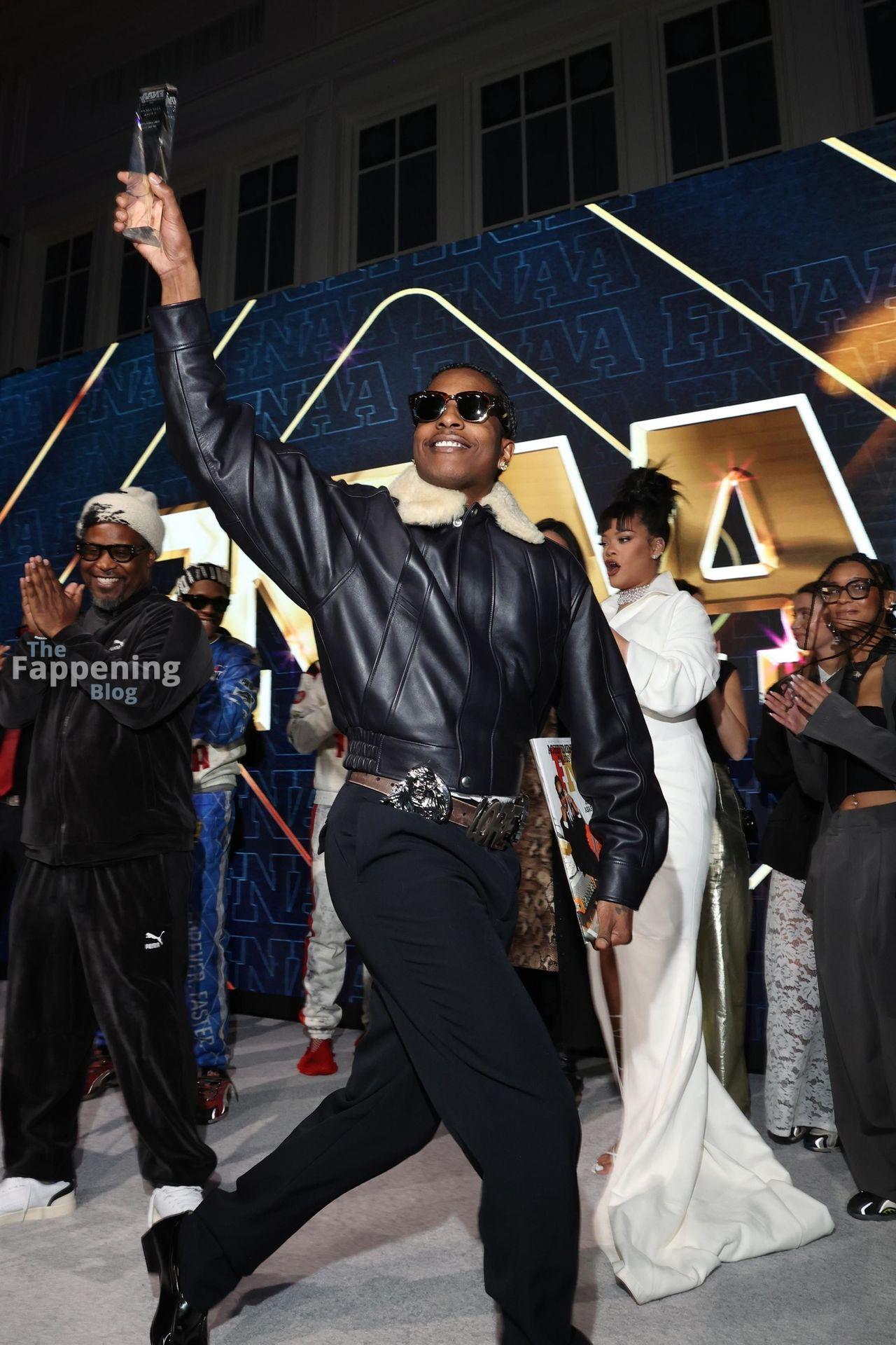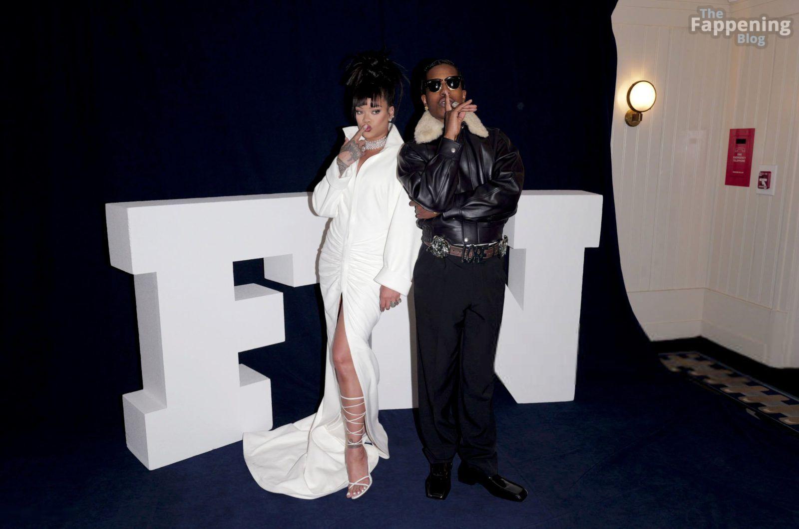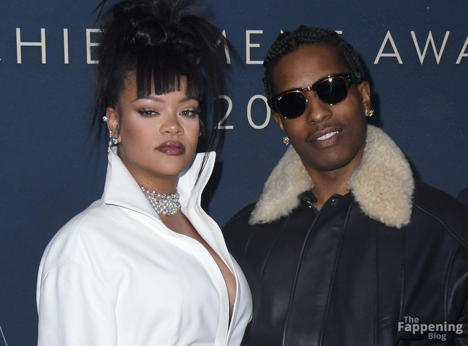 Rihanna stuns in a white dress at the 38th Annual Footwear News Achievement Awards at Cipriani South Street in New York City.