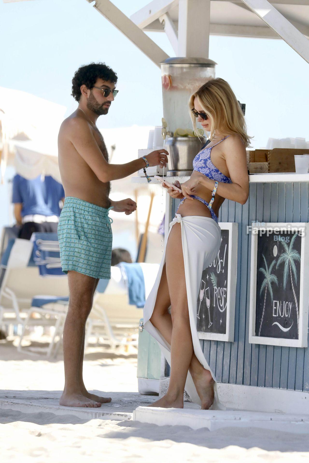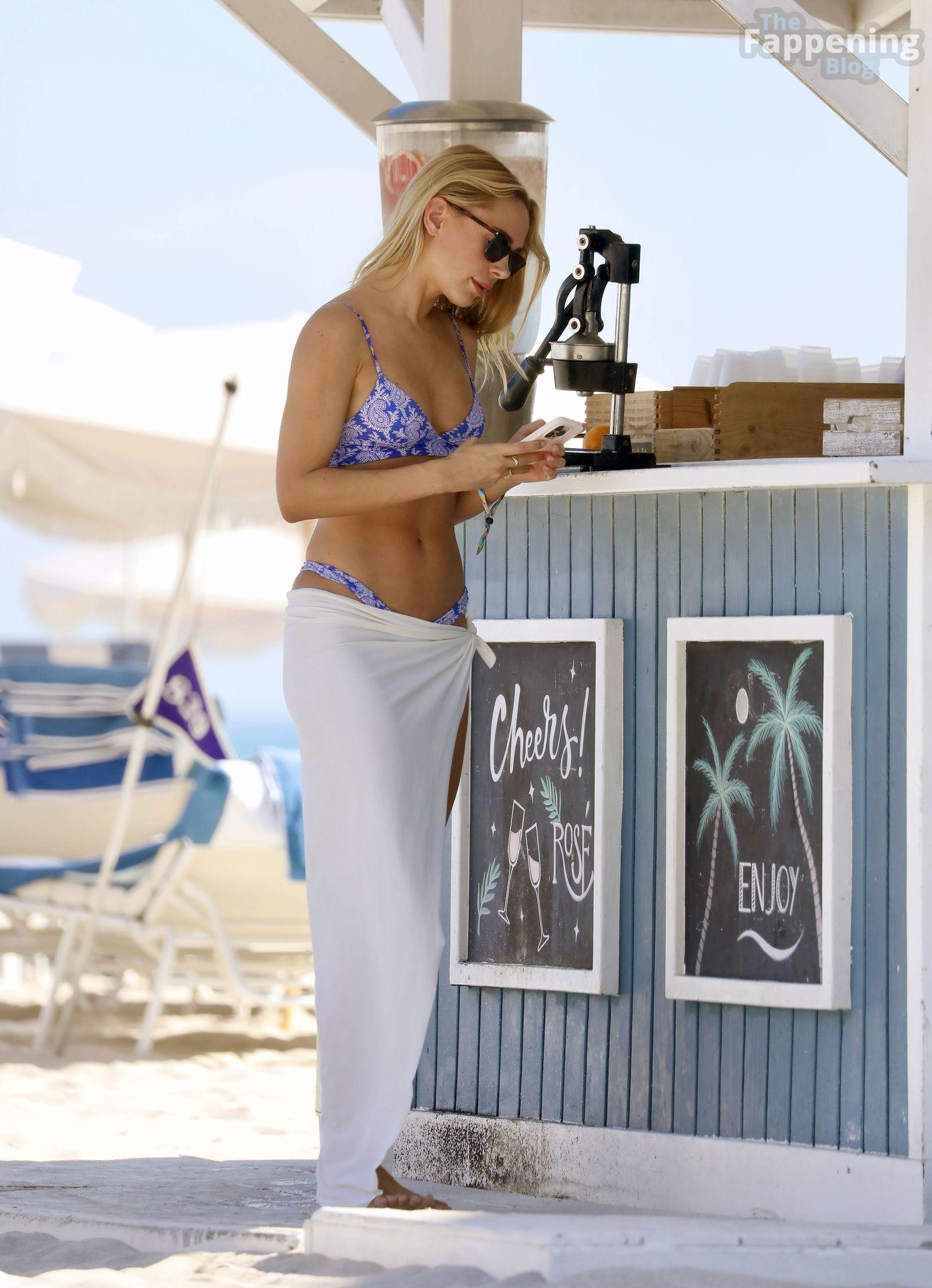 Kimberley Garner shows off her toned figure as she hits the beach with family in Miami, Florida. The Made in Chelsea star wore a tiny two-piece blue bikini as she enjoyed a sunny day.