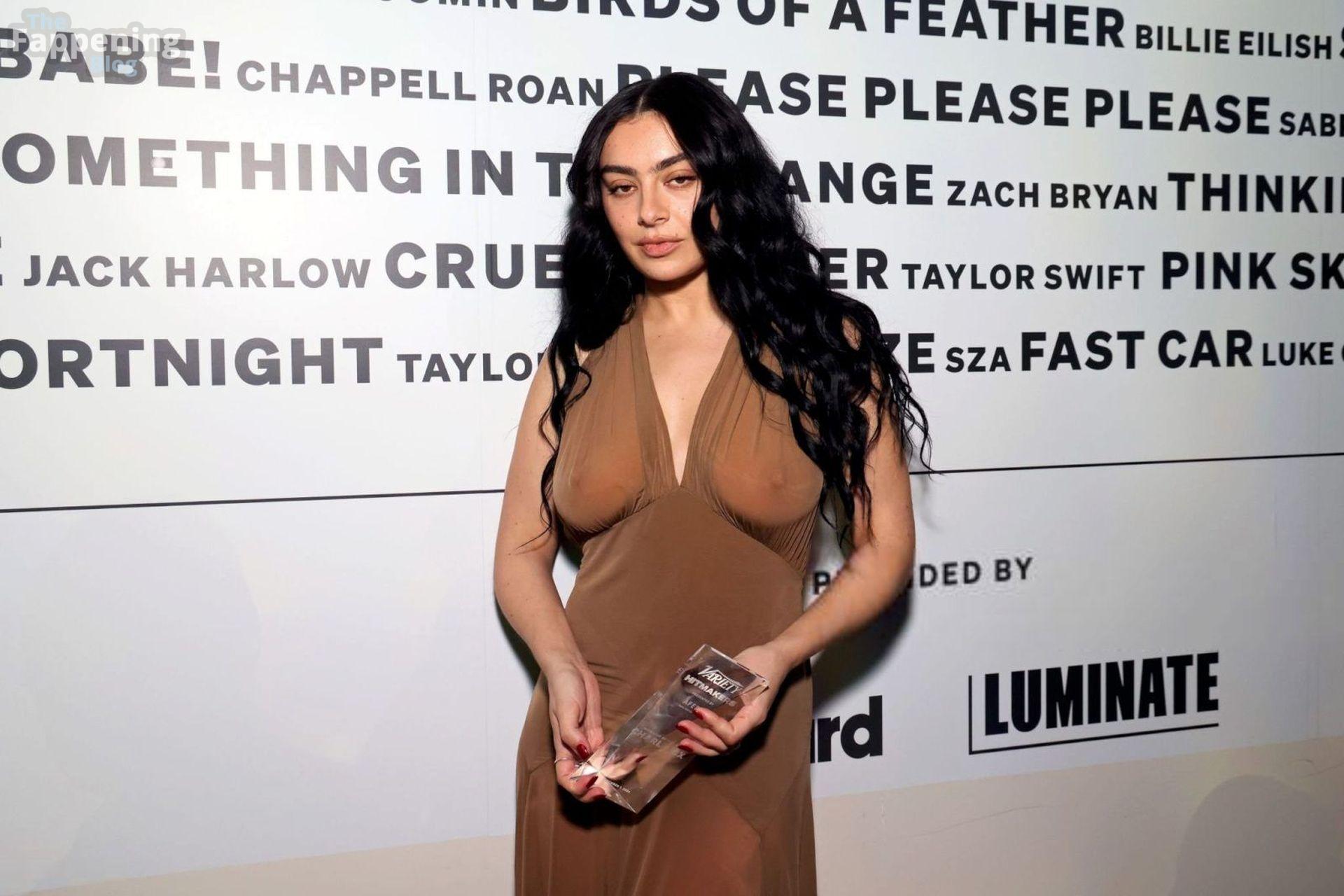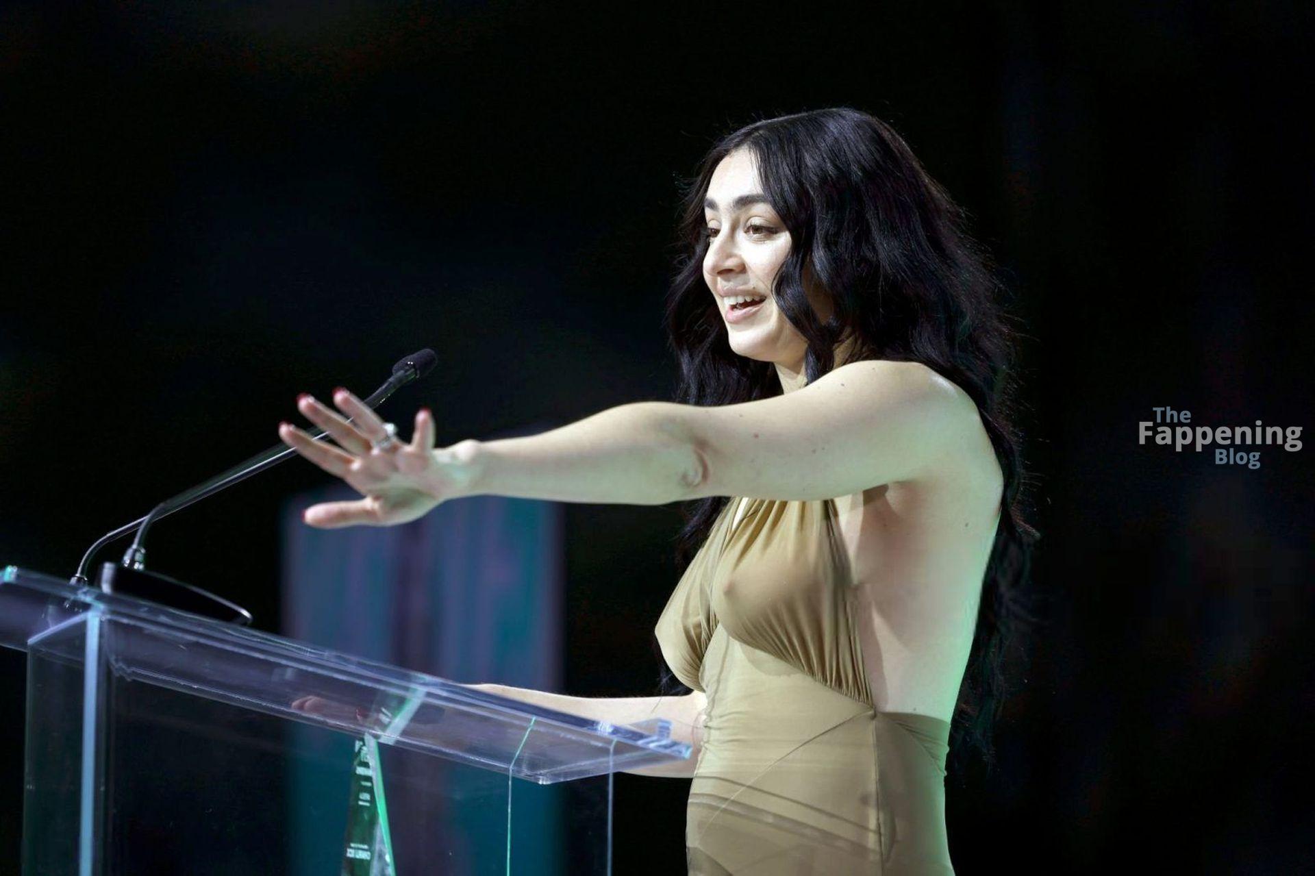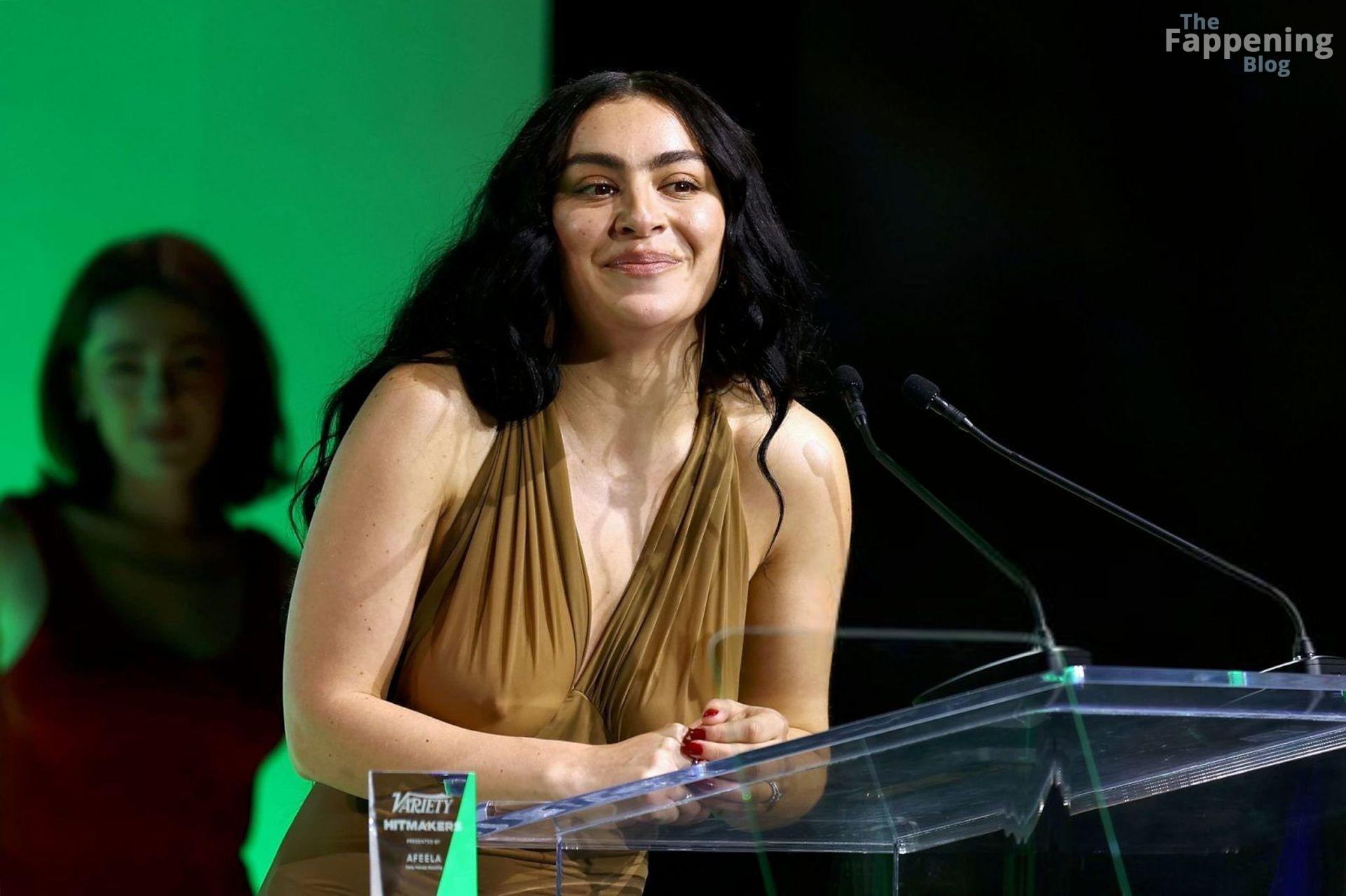 Charli XCX stuns without a bra at Variety Hitmakers Brunch, rocking a barely-there, see-through gown, flaunting those sexy boobs and nipples.