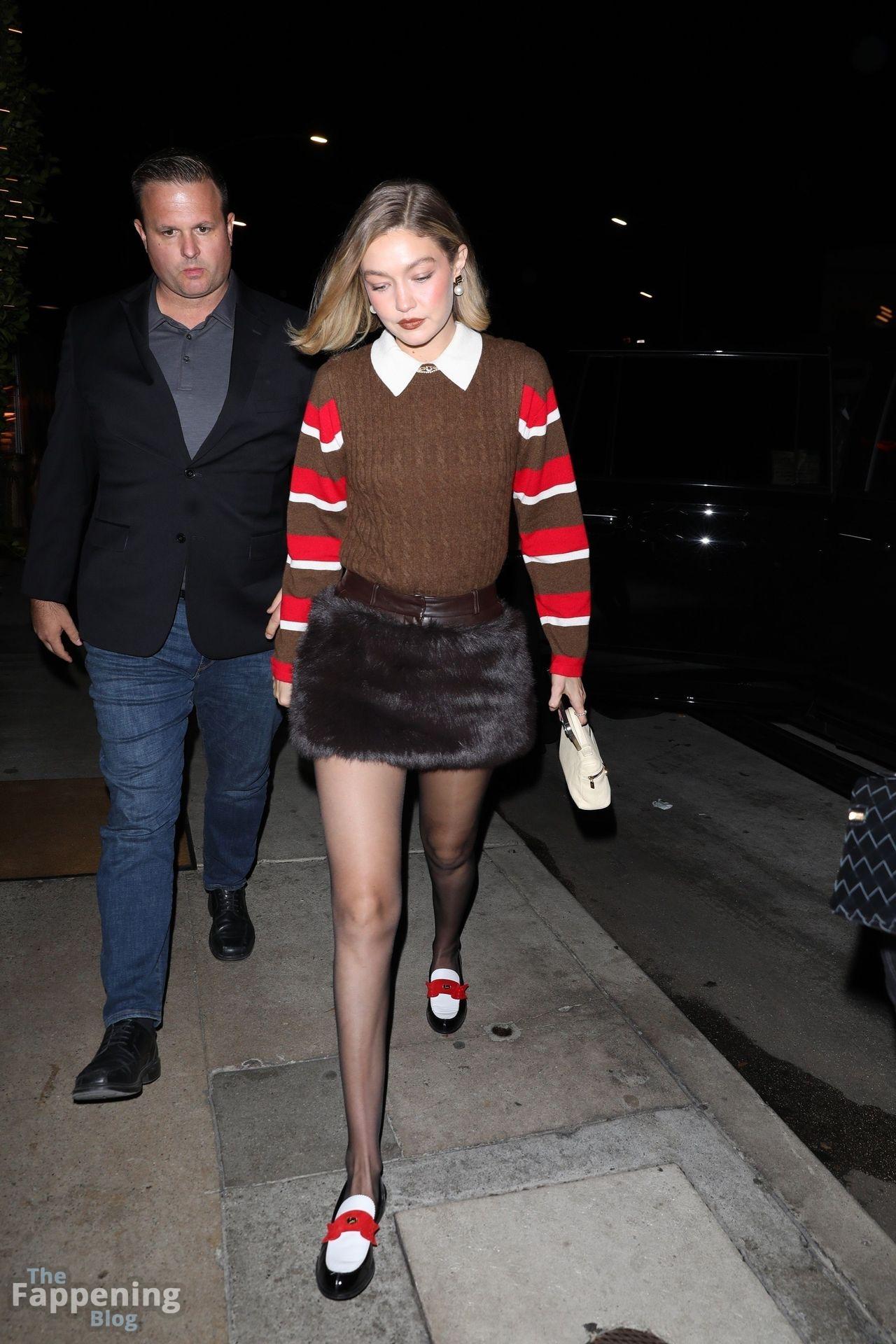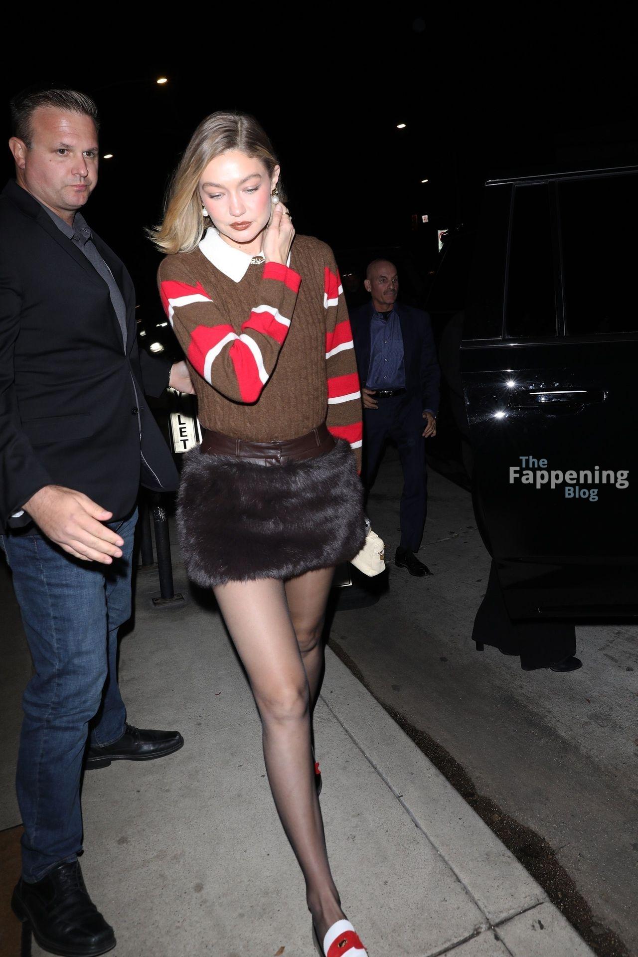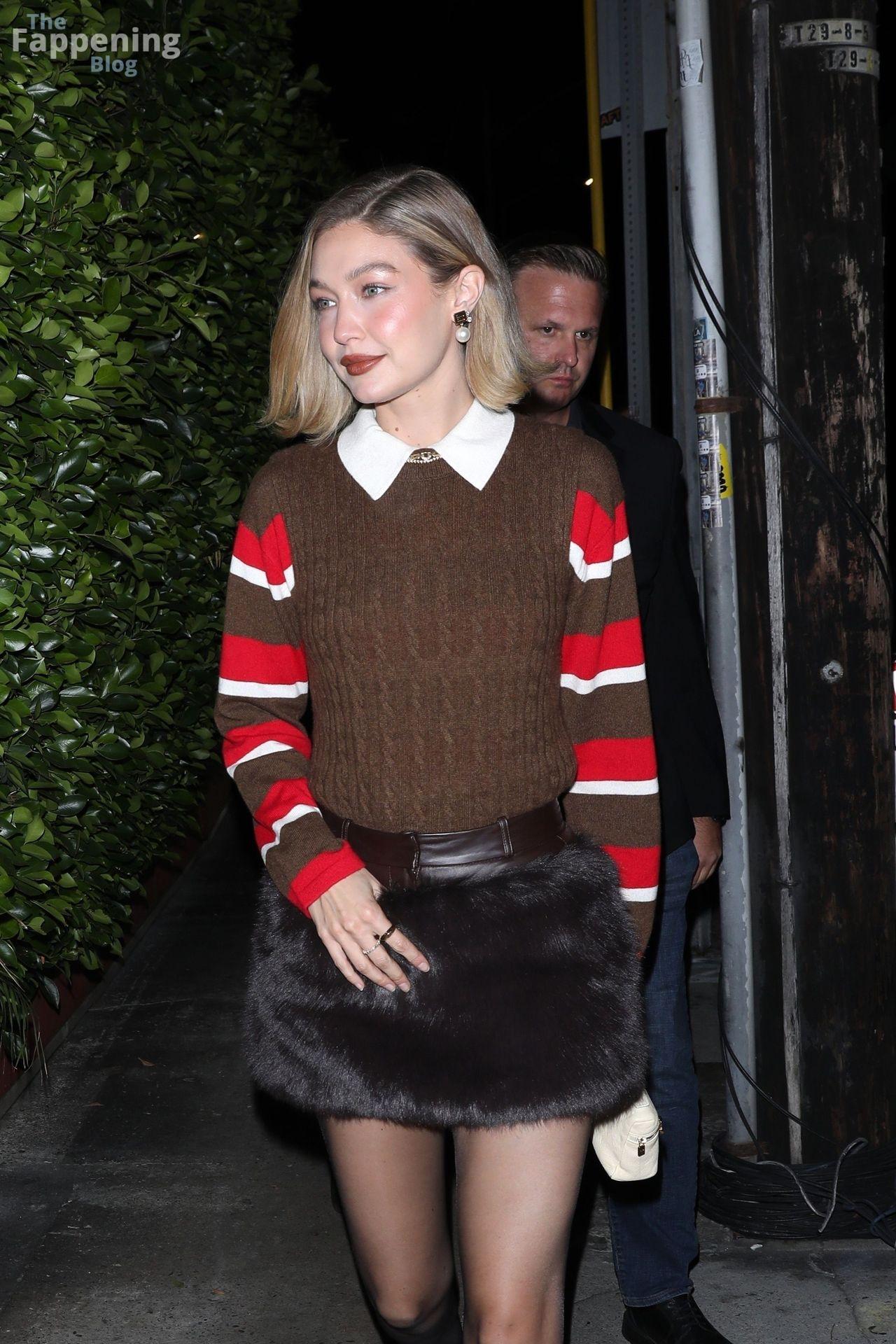 Stunning model Gigi Hadid strikes a pose while arriving to her sister store Guest in Residence grand opening in Beverly Hills.