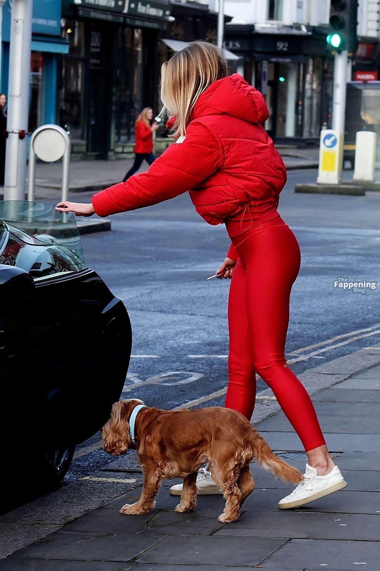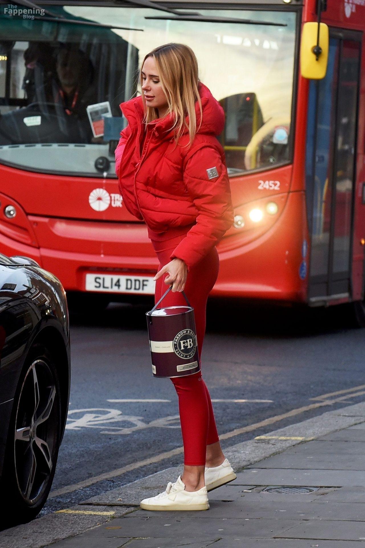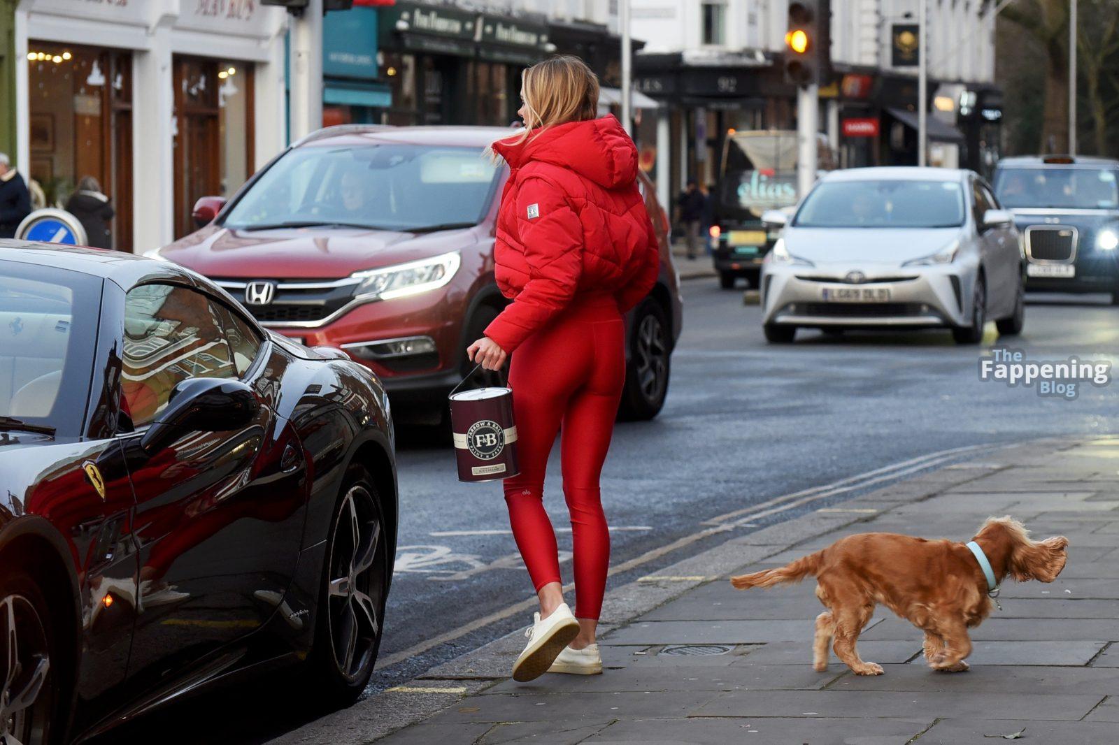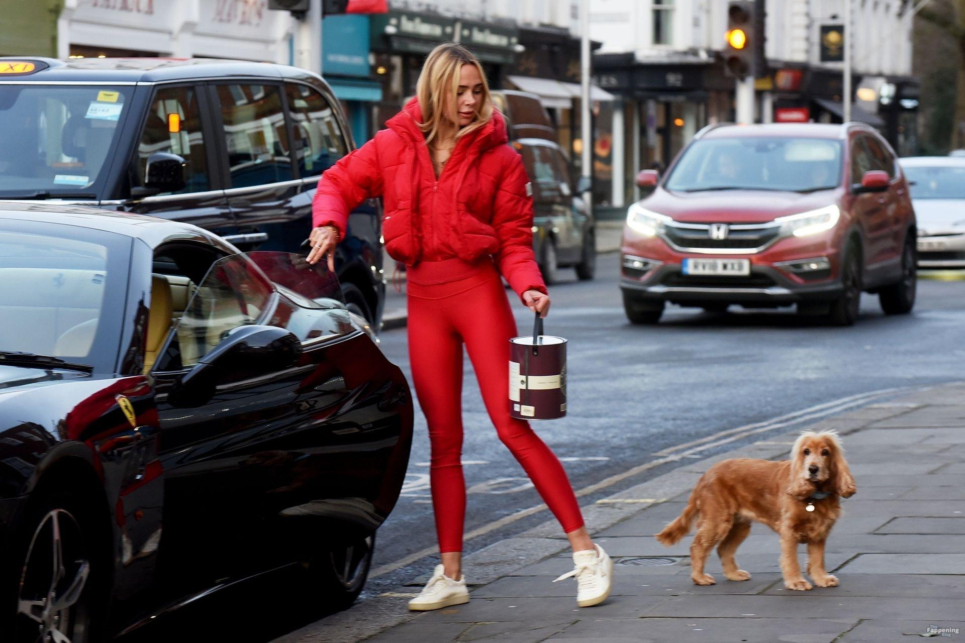Former “Made In Chelsea” and swimwear designer Kimberley Garner seen entering a shop and loading the booth of her Ferrari California with buckets of paint. The former TV star turned property developer runs errands in affluent Chelsea.